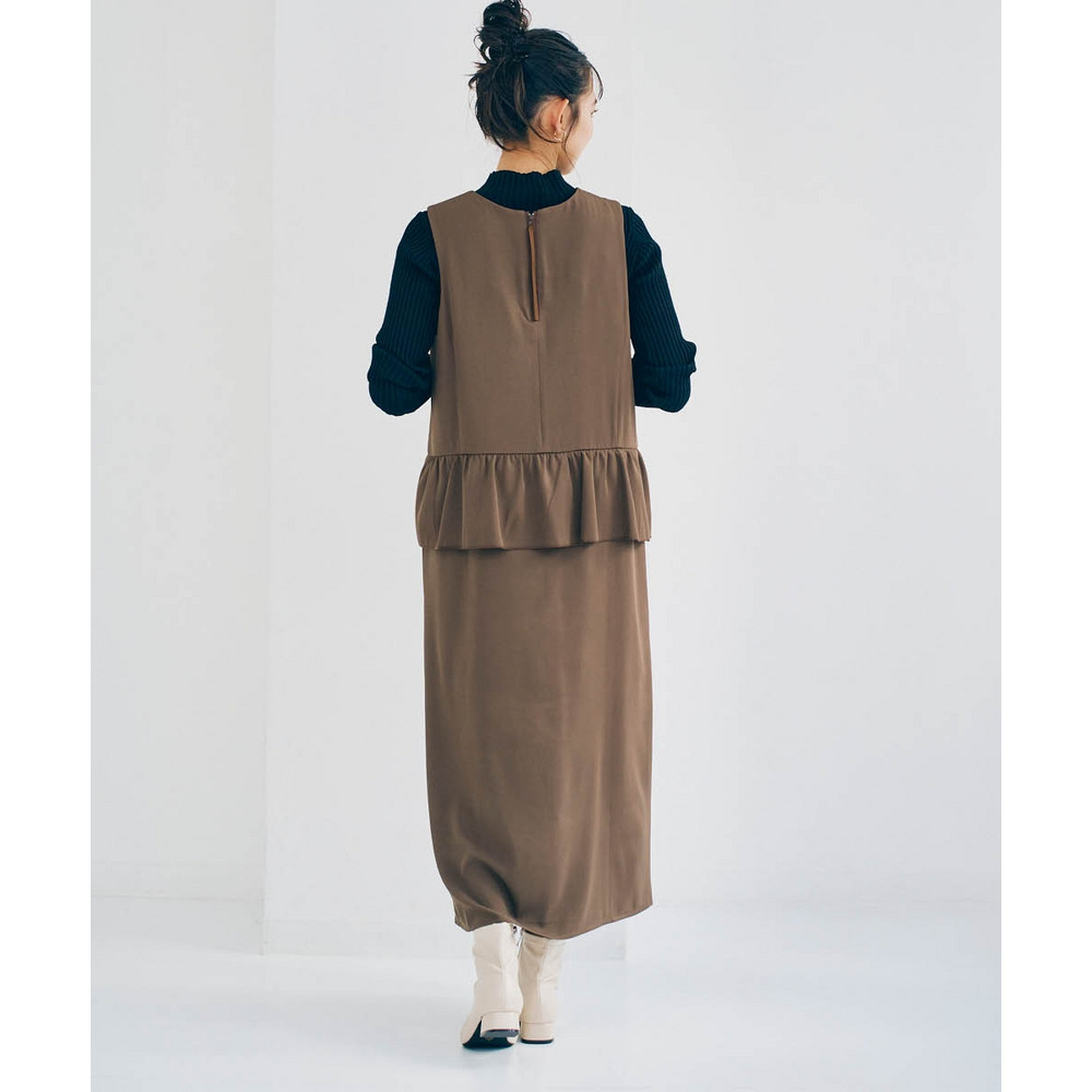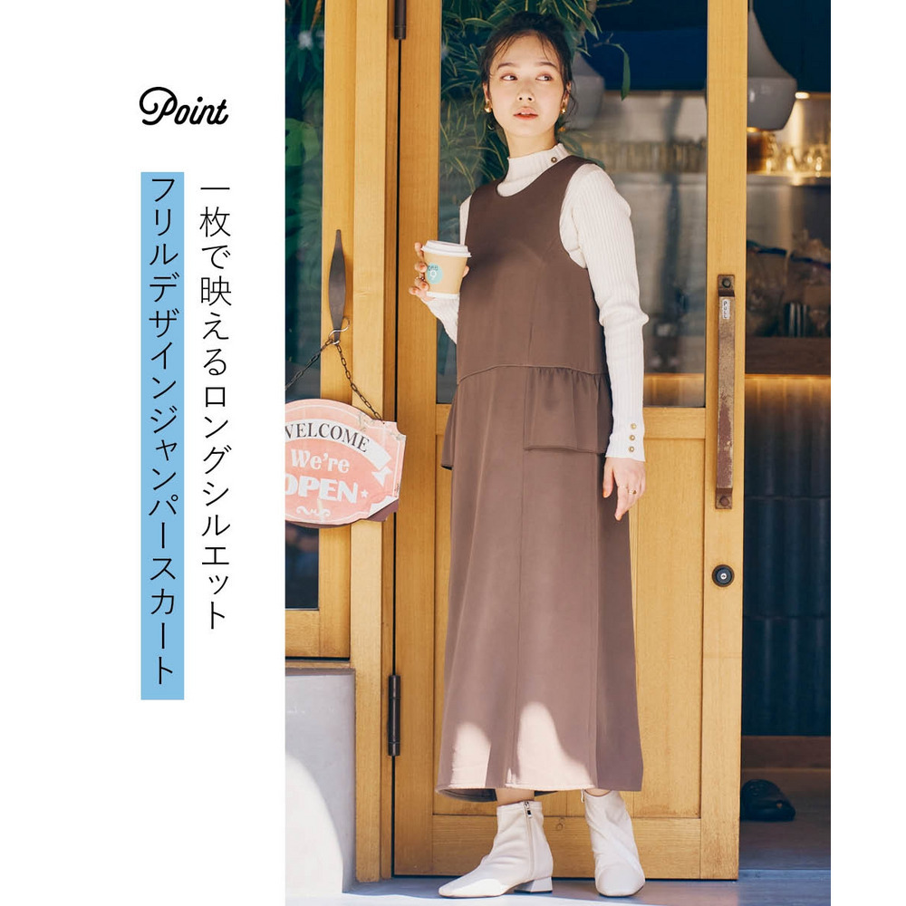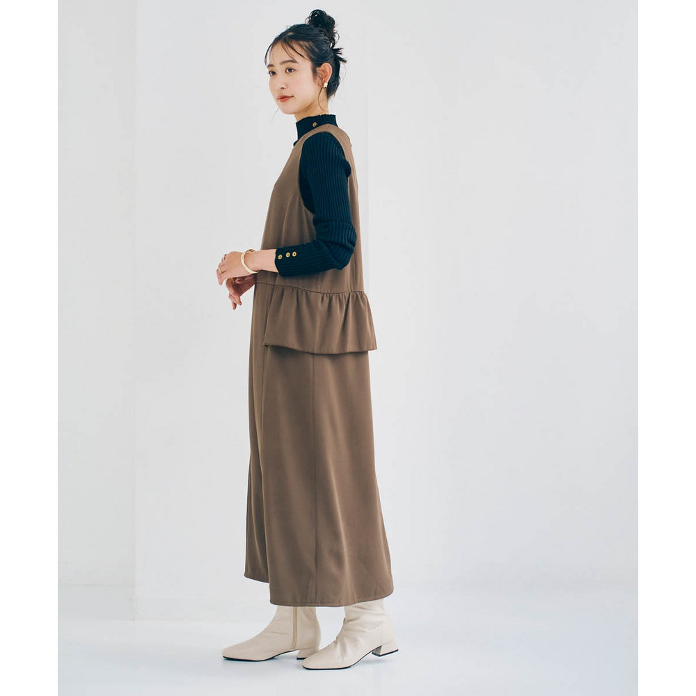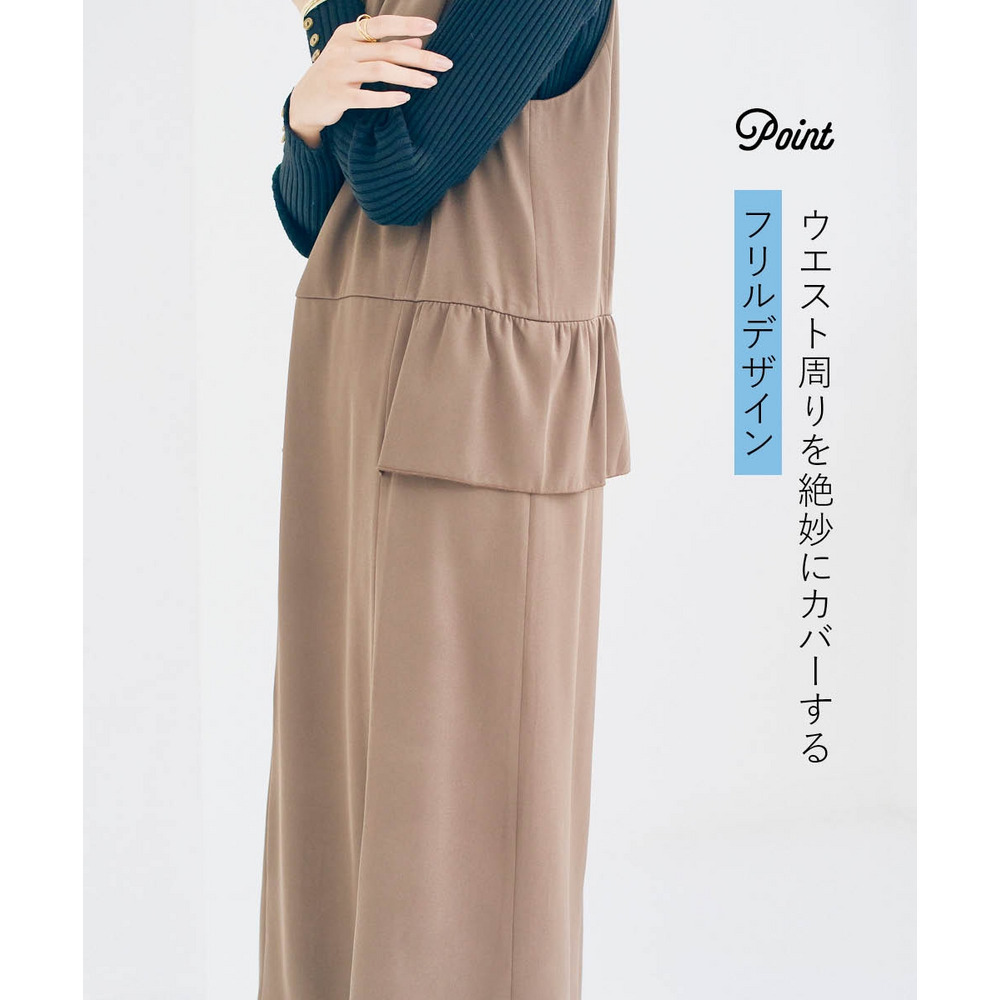 サイドから後ろに入ったフリルがかわいいジャンパースカート。