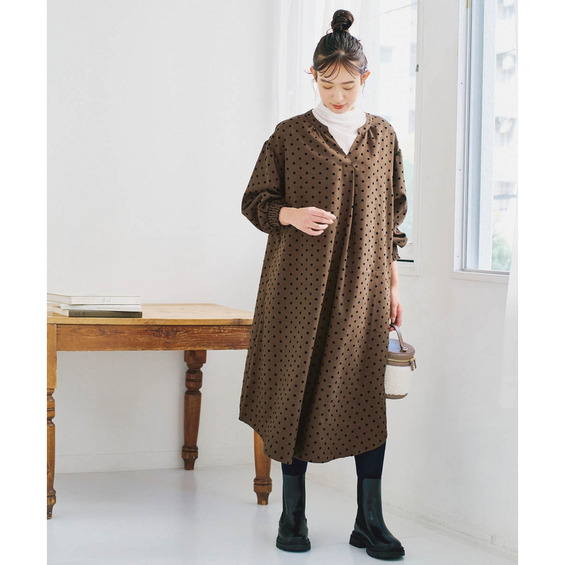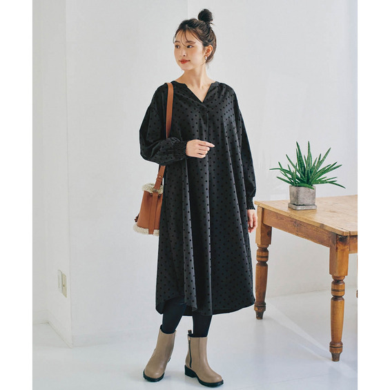 ゆるシルエットフロッキードットワンピース 大きいサイズ