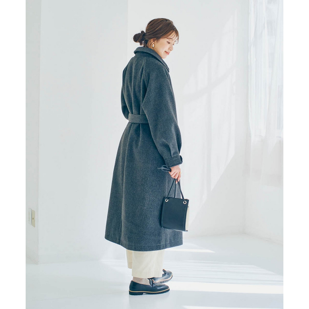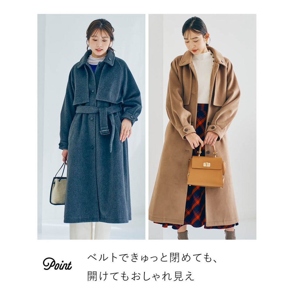 • ロングデザインコート(共布ベルト付) 大きいサイズ10