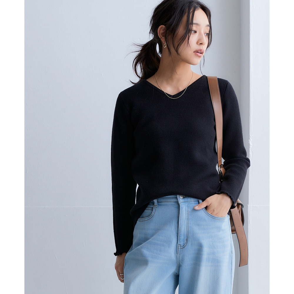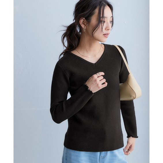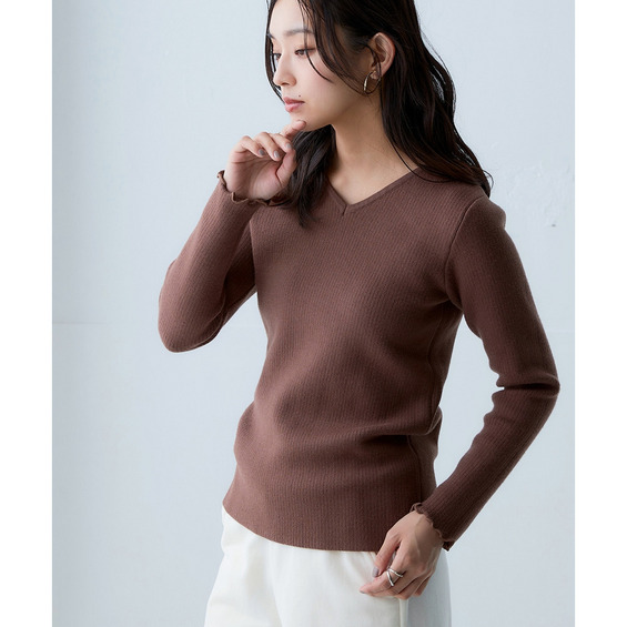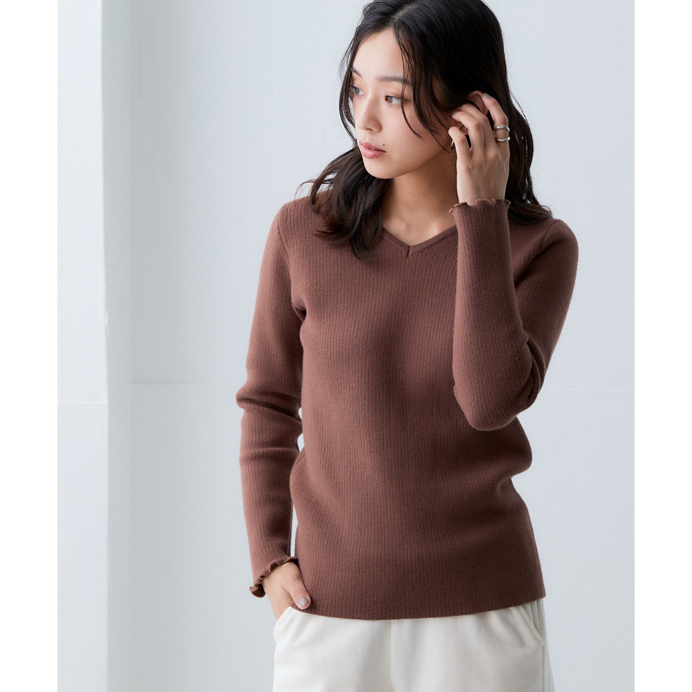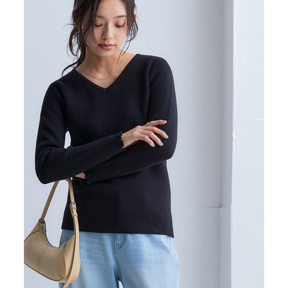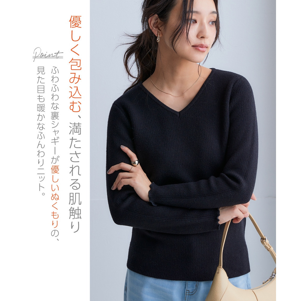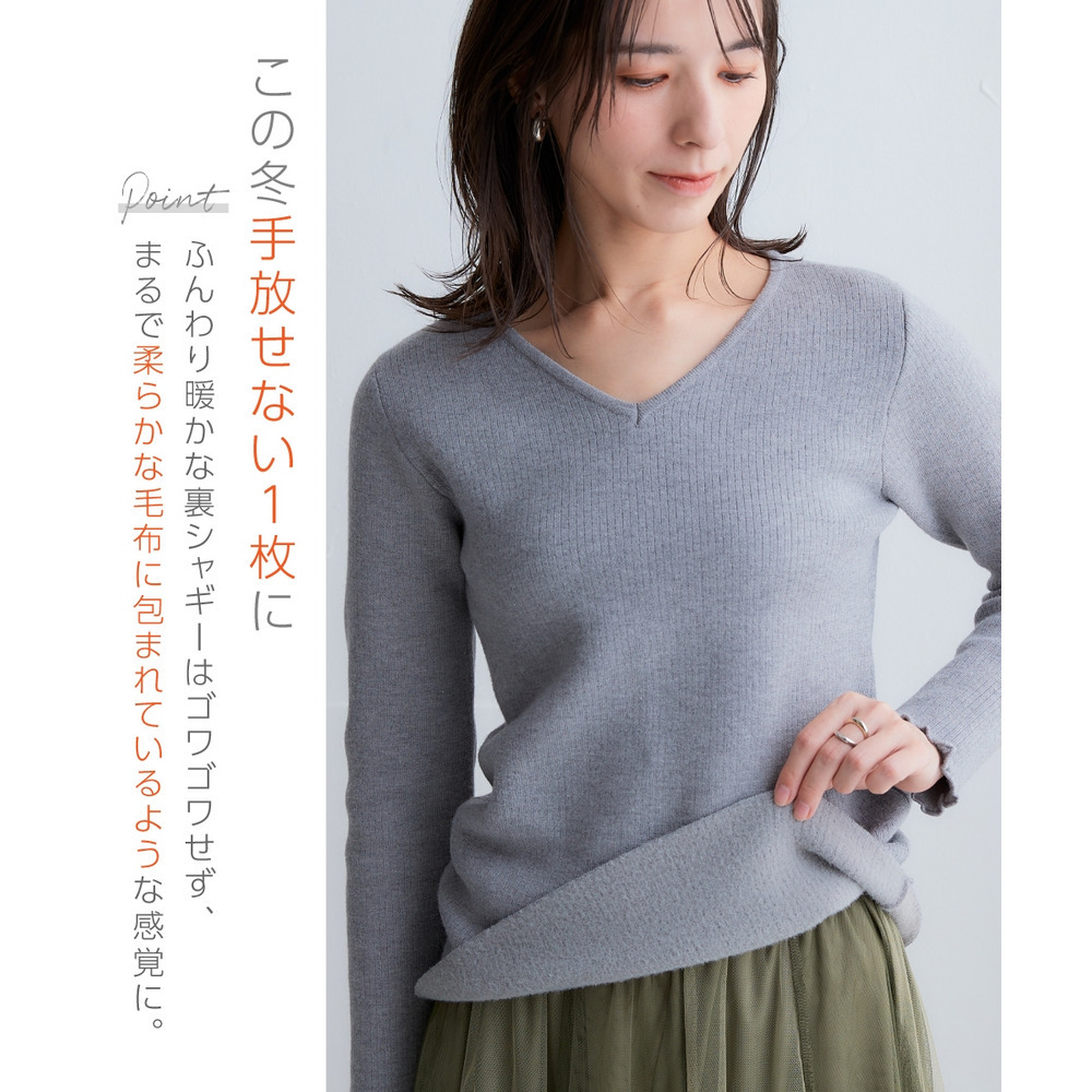 • あったか裏シャギーVネックリブニットトップス 大きいサイズ10