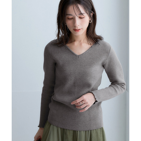 • あったか裏シャギーVネックリブニットトップス 大きいサイズ8