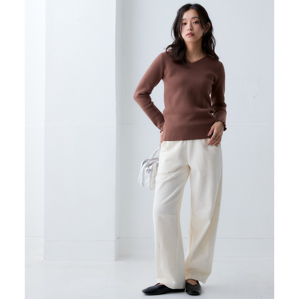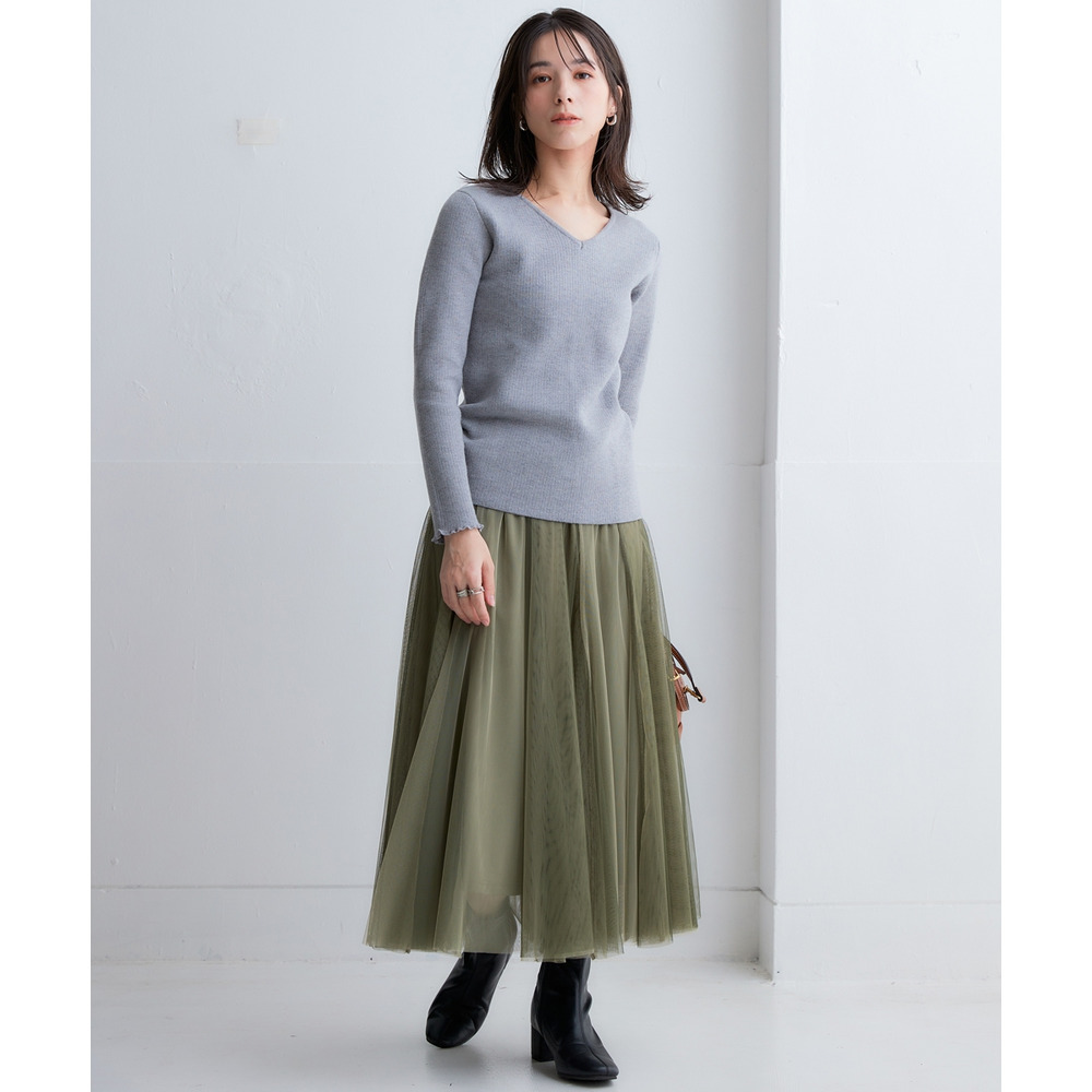 リブ編みが縦ラインを強調し、体のラインをきれいに見せてくれるのもポイント。