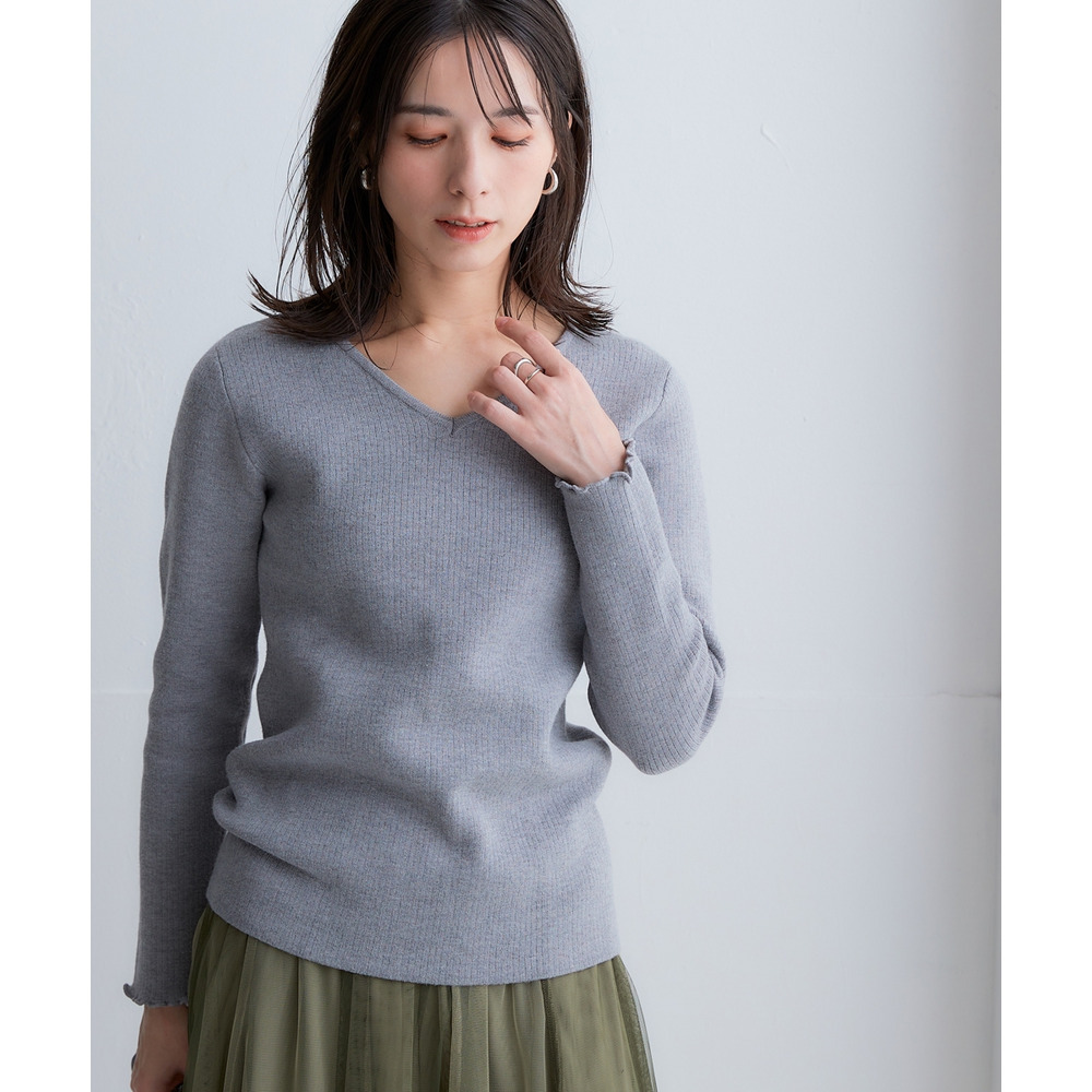 • あったか裏シャギーVネックリブニットトップス 大きいサイズ12