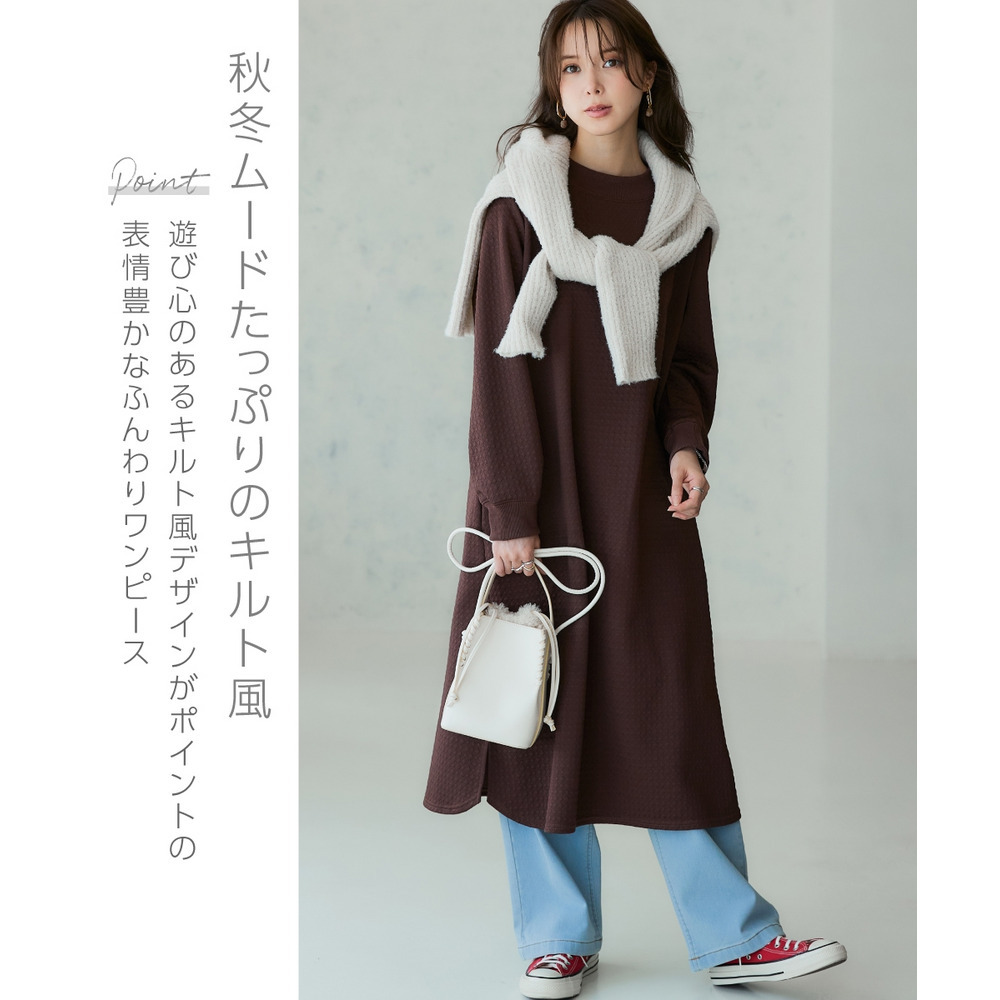 • キルト風ロング丈ワンピース 大きいサイズ18