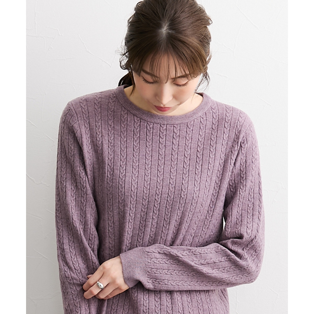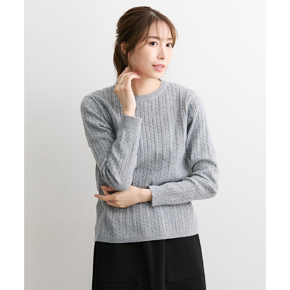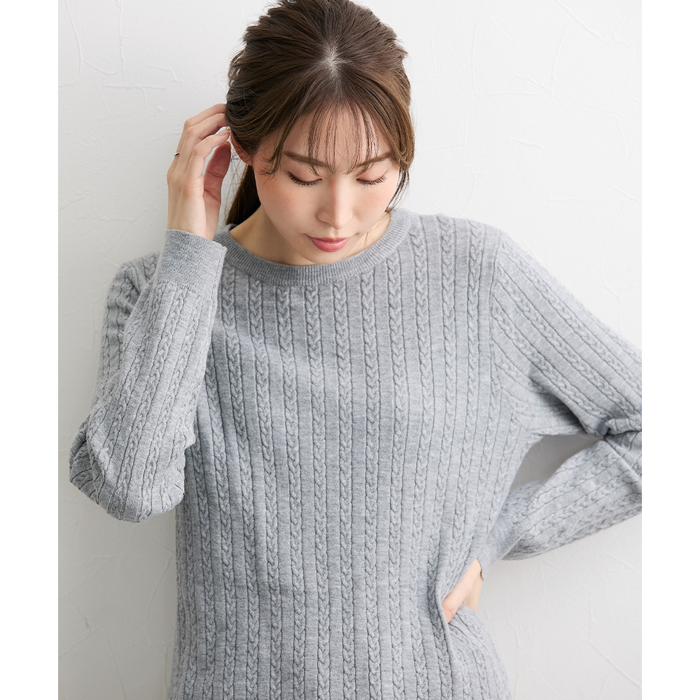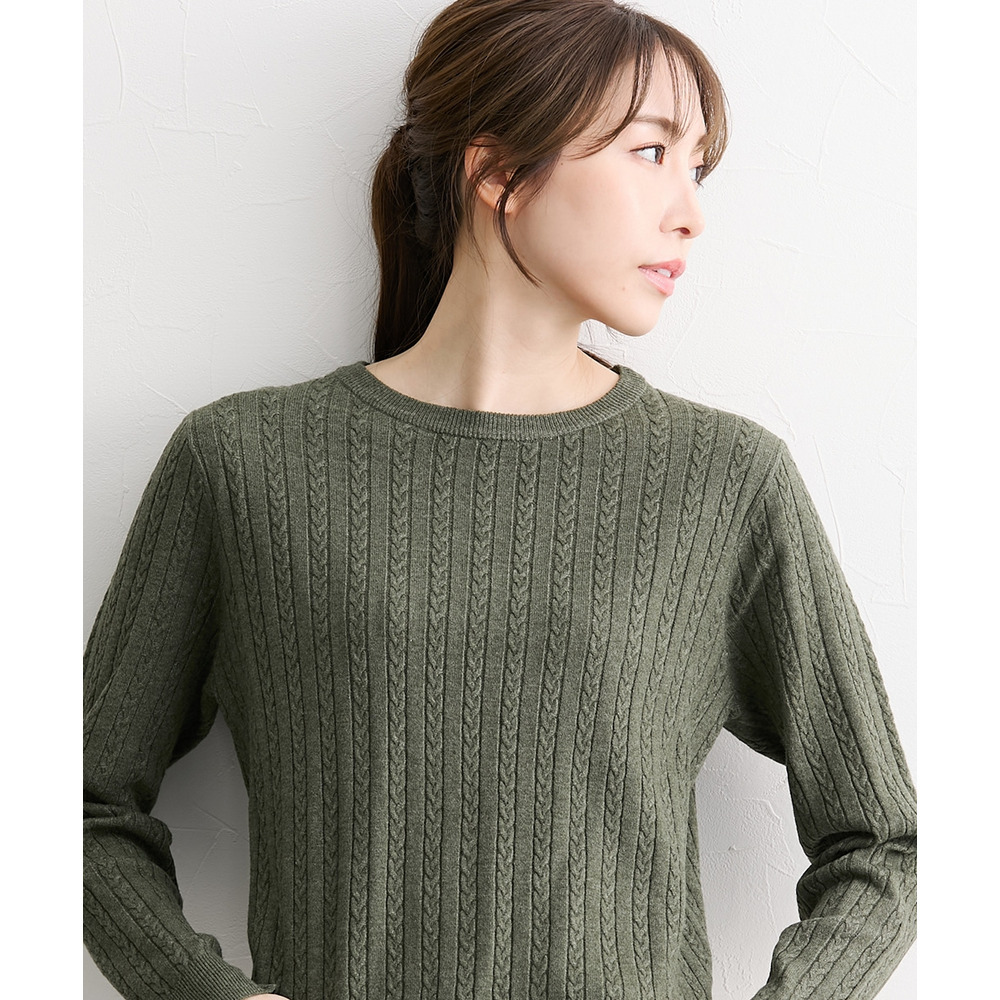 ミニケーブル柄クルーネックニットプルオーバー 大きいサイズ