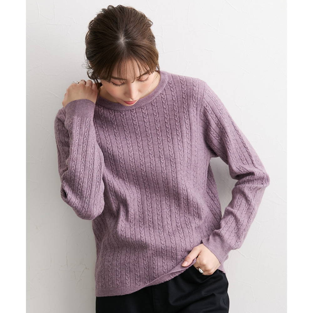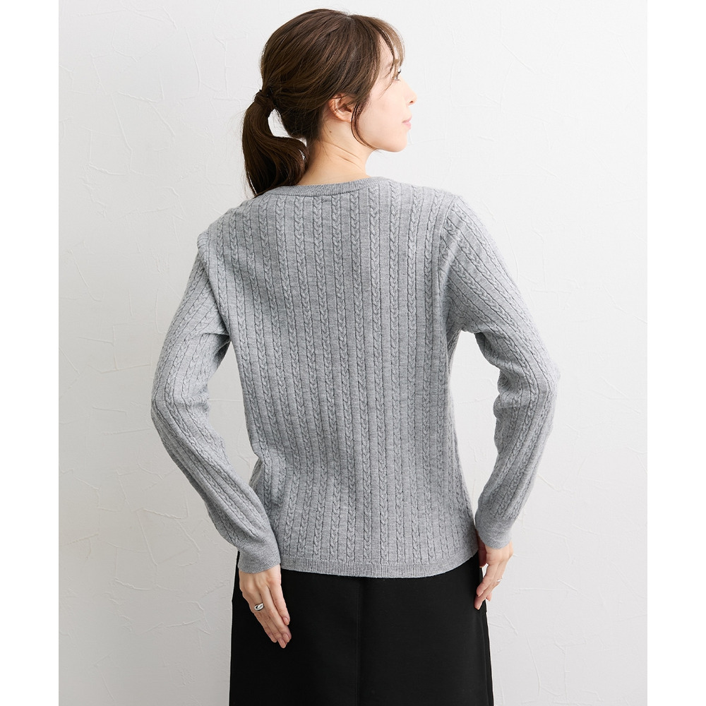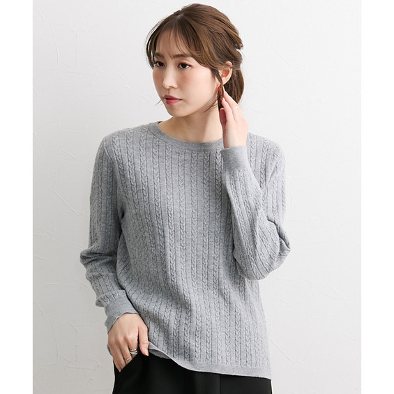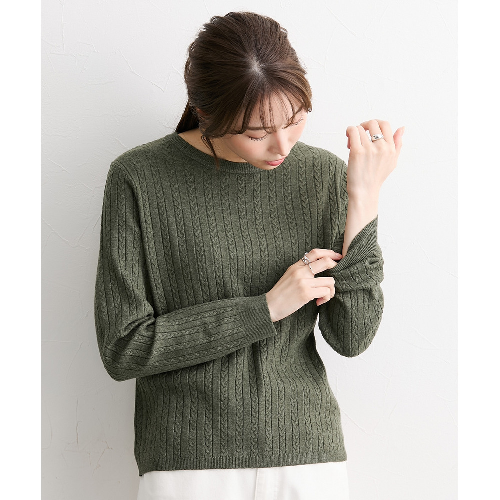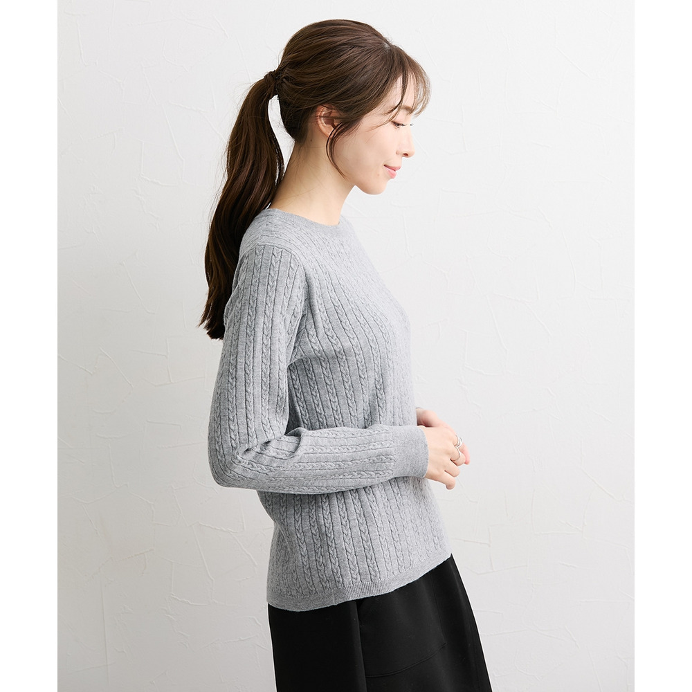ミニケーブル柄クルーネックニットプルオーバー 大きいサイズ