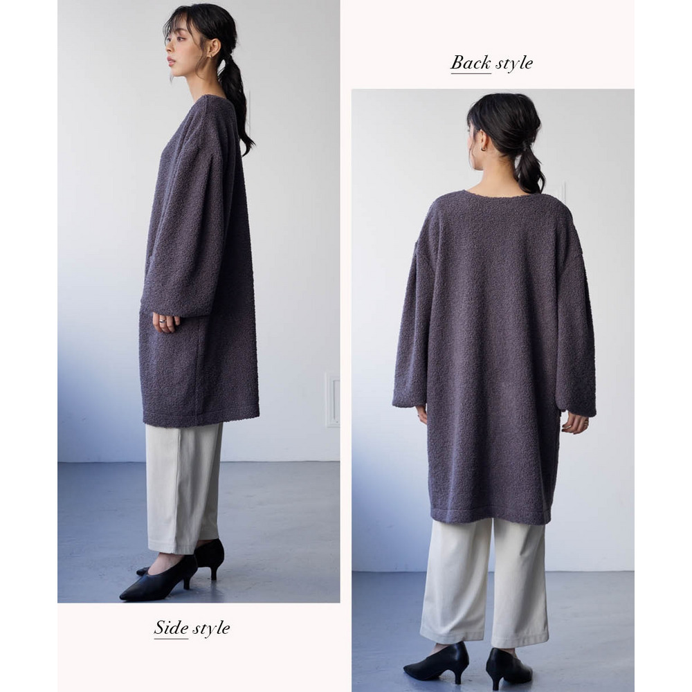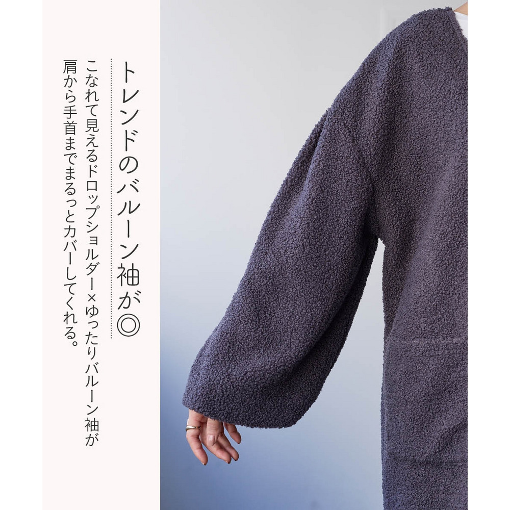 洗えるぬくぬくカットソーボアバルーンスリーブゆるシルエットコーディガン 大きいサイズ