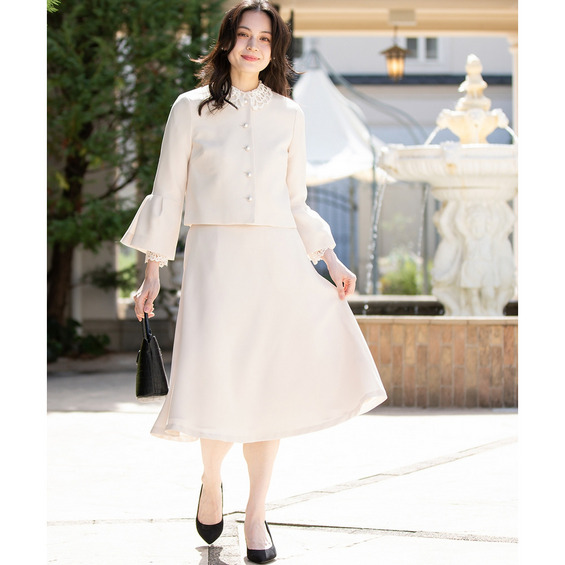 • 【入学式・卒業式・フォーマル】洗える パール釦使い袖タックデザインジャケット+フレアスカートセットアップ 大きいサイズ11