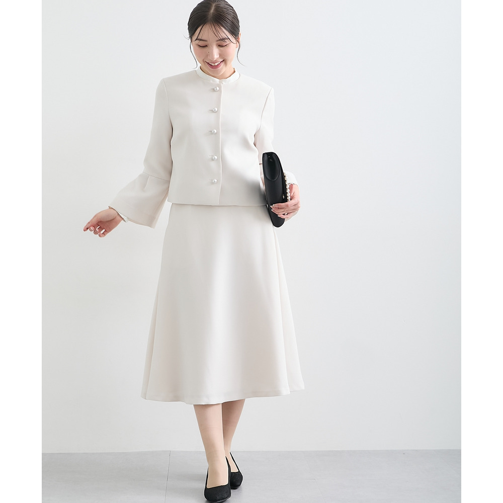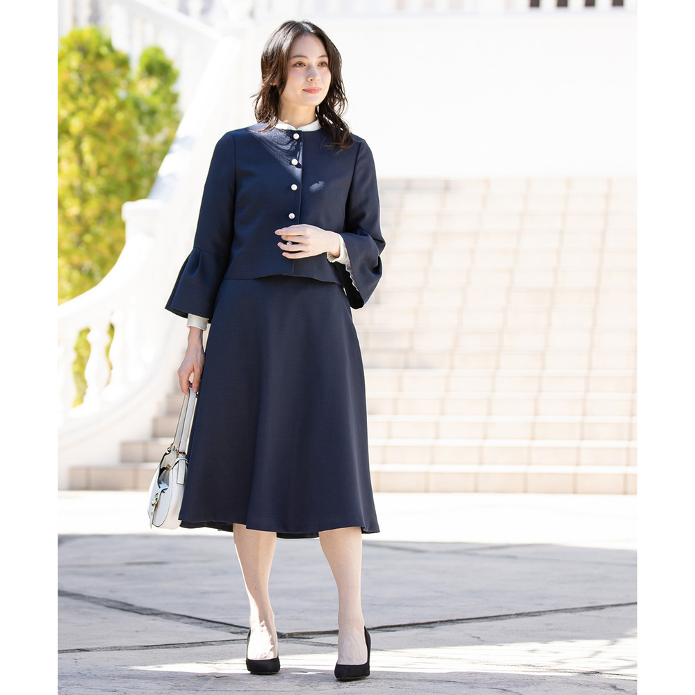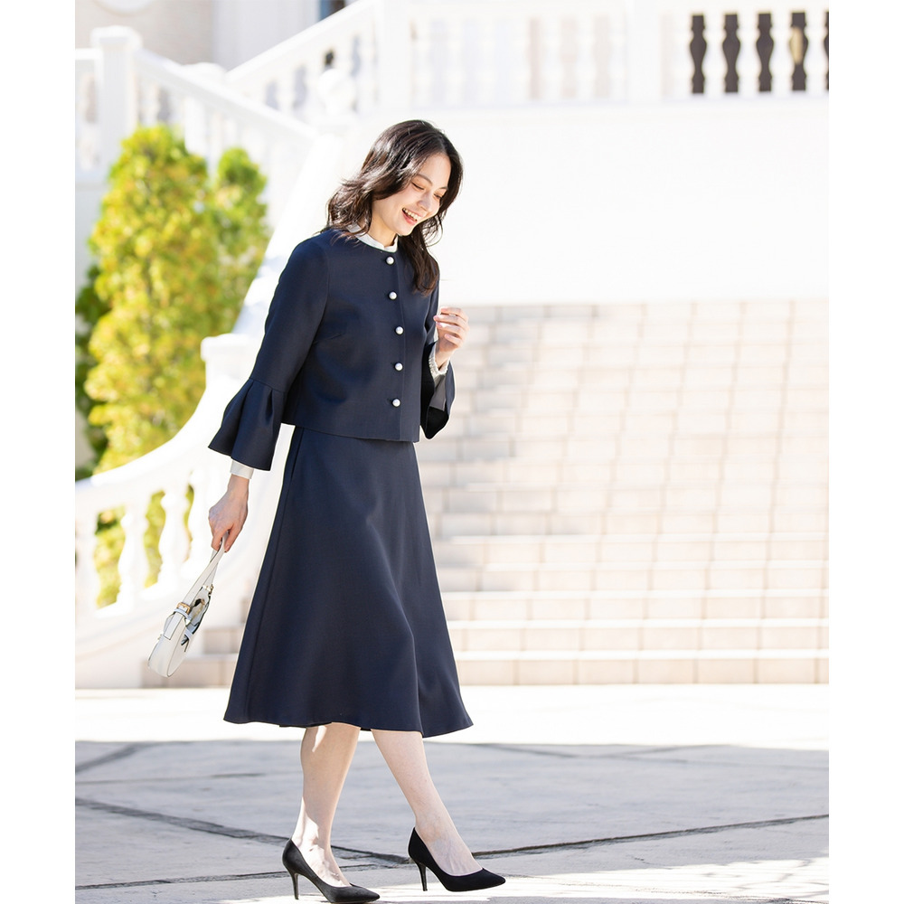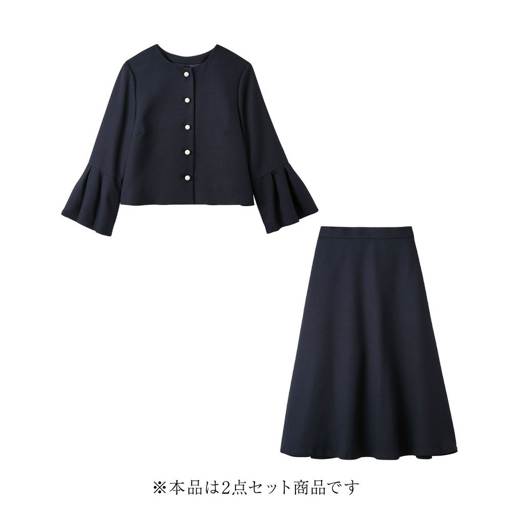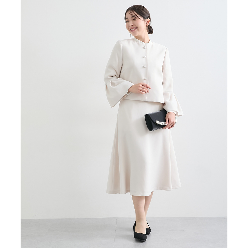 【入学式・卒業式・フォーマル】洗える パール釦使い袖タックデザインジャケット+フレアスカートセットアップ 大きいサイズ