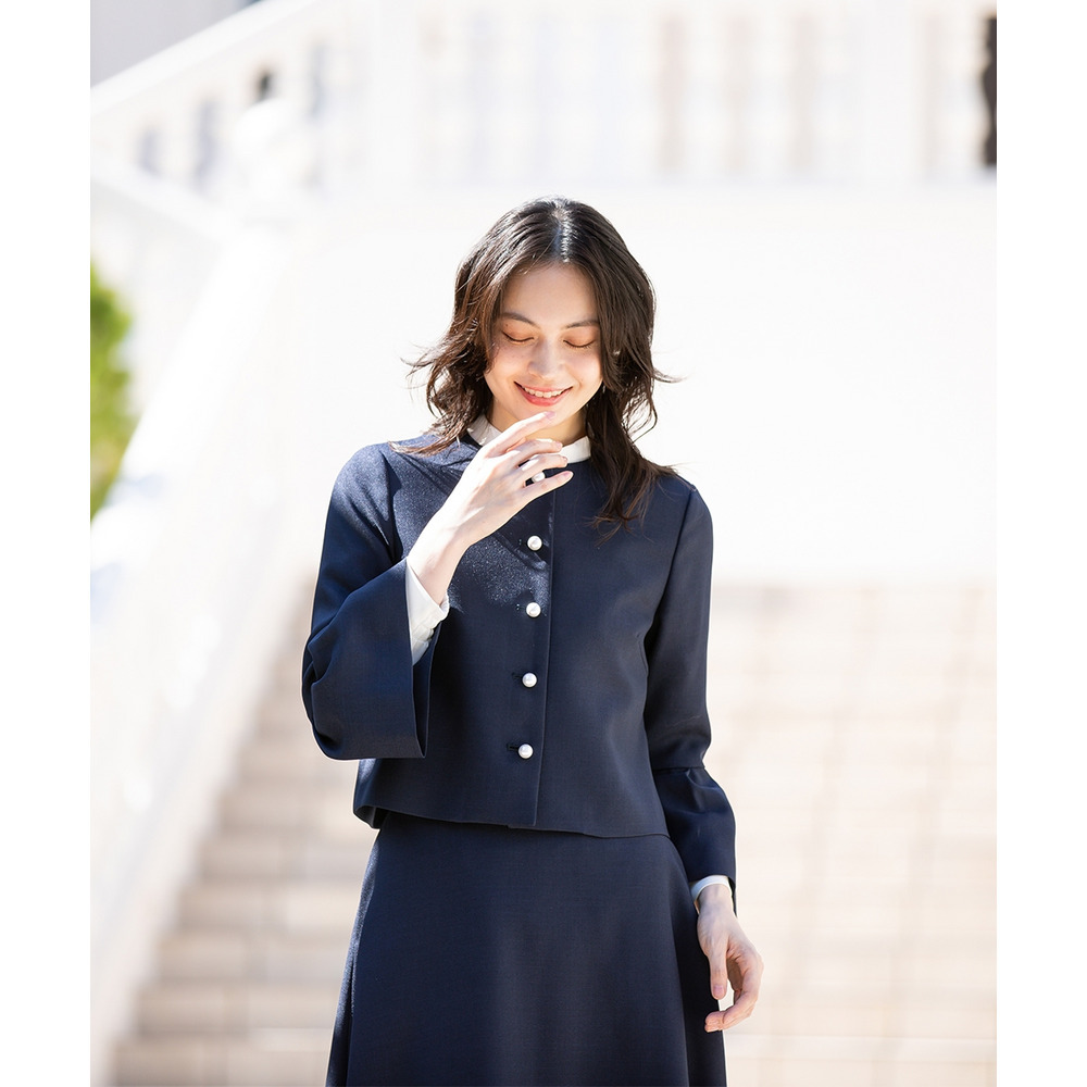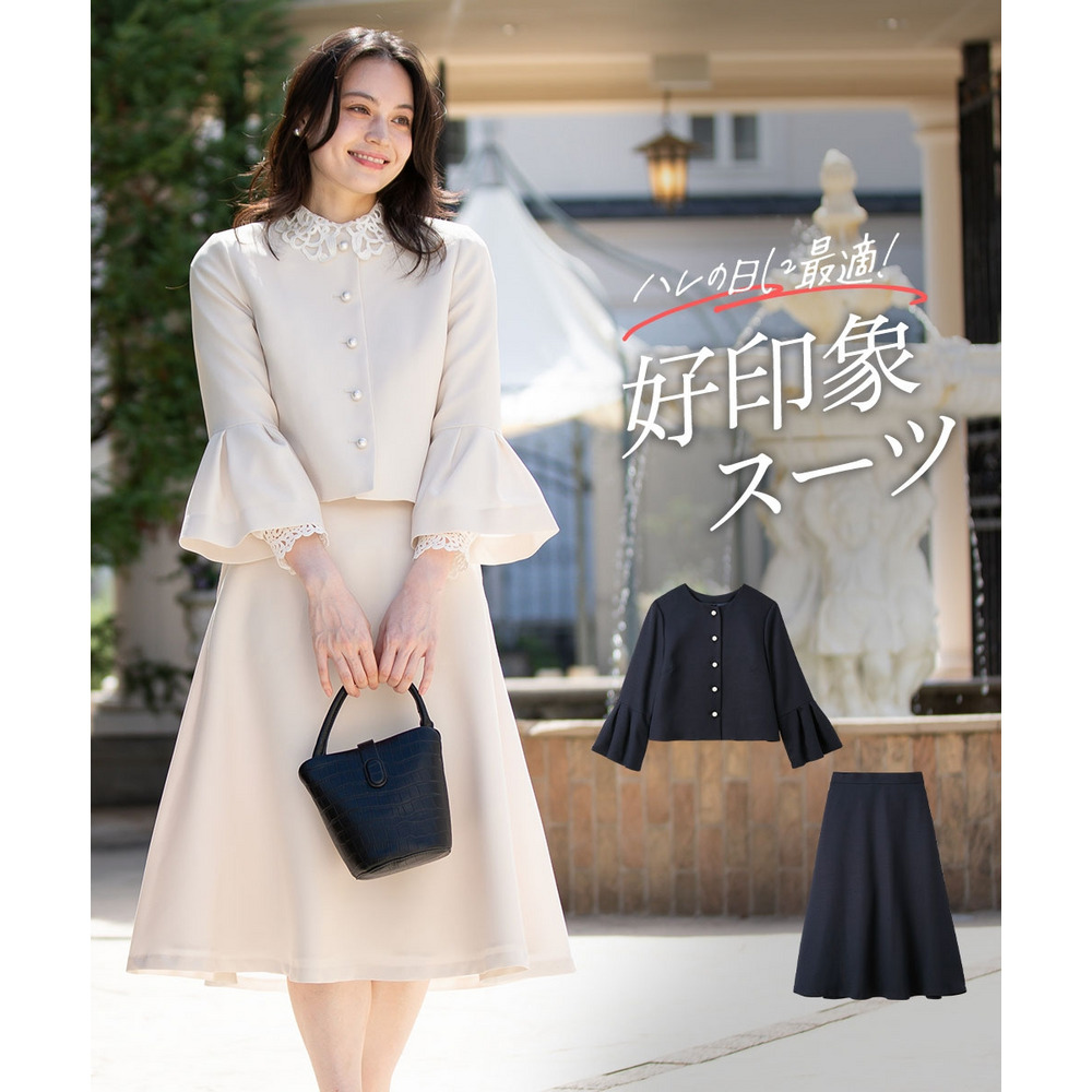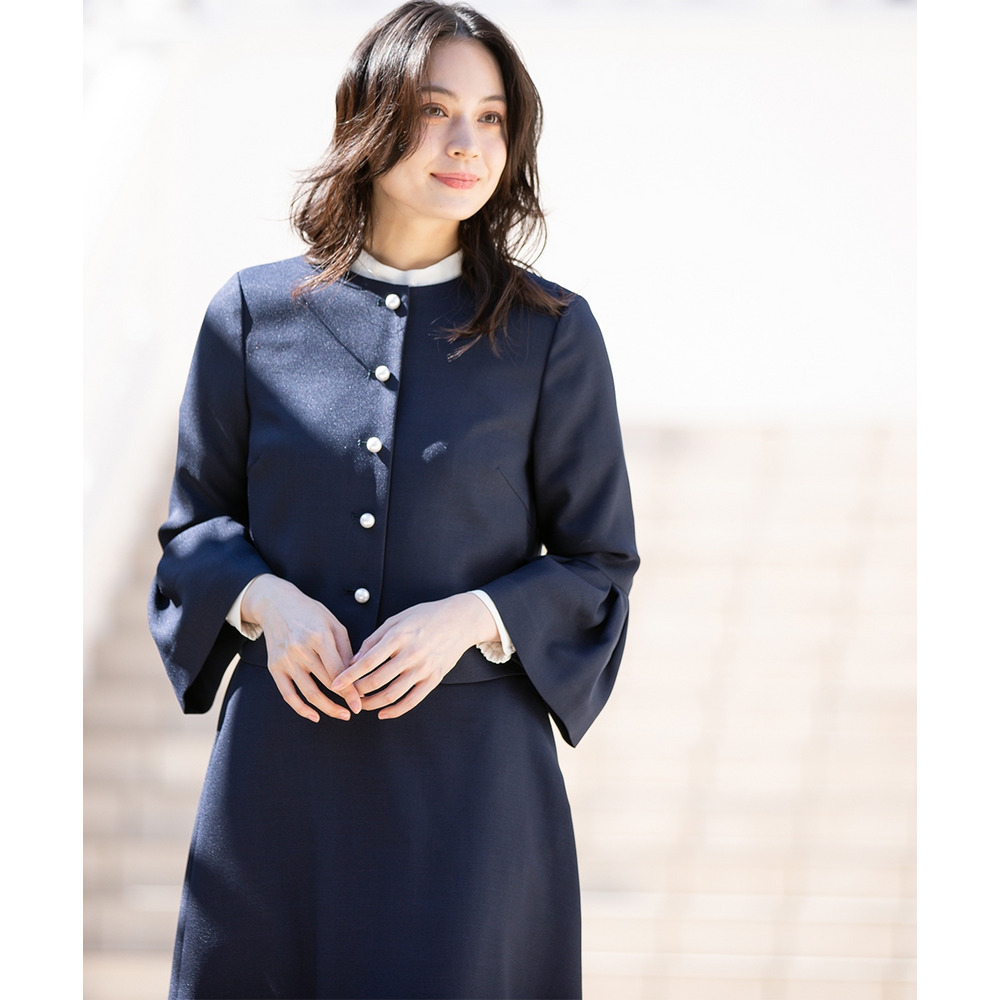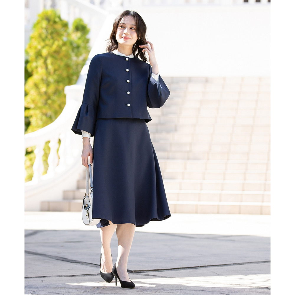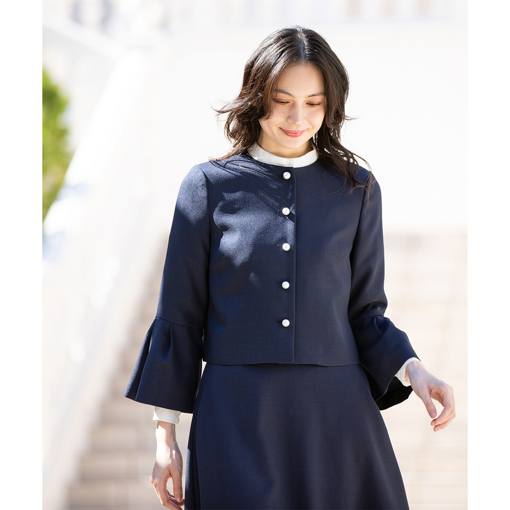 【入学式・卒業式・フォーマル】洗える パール釦使い袖タックデザインジャケット+フレアスカートセットアップ 大きいサイズ