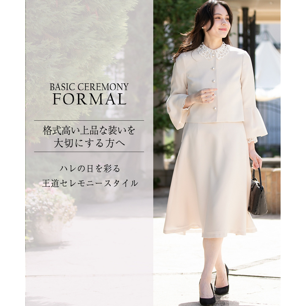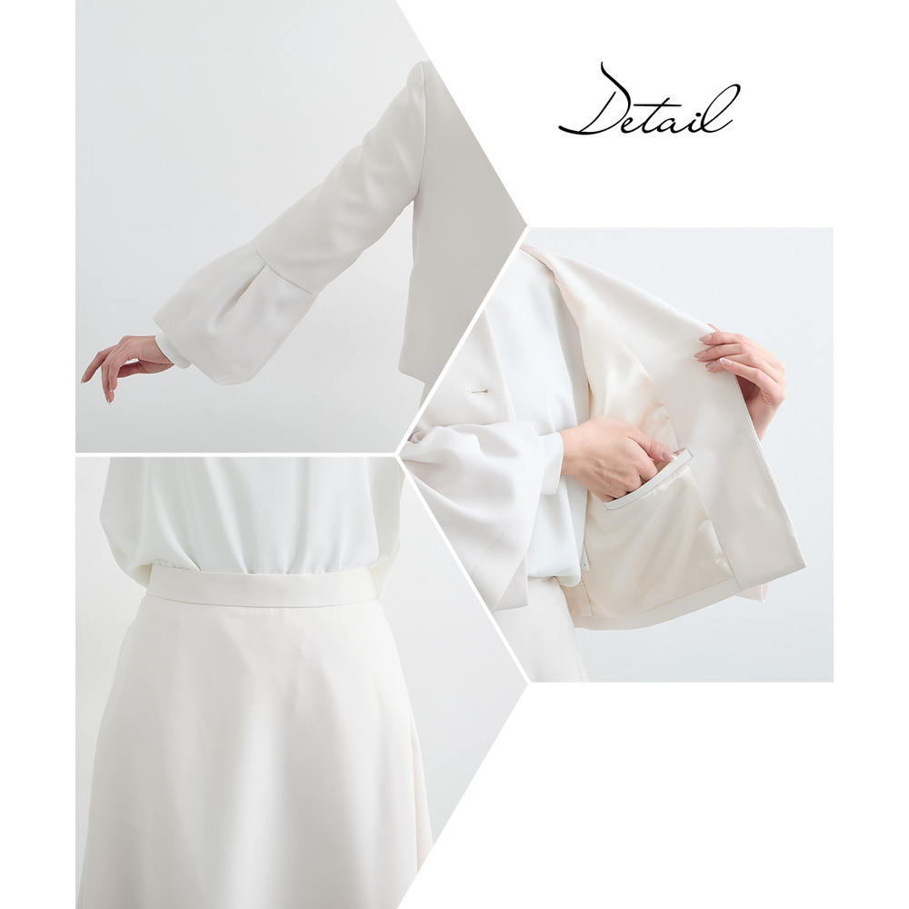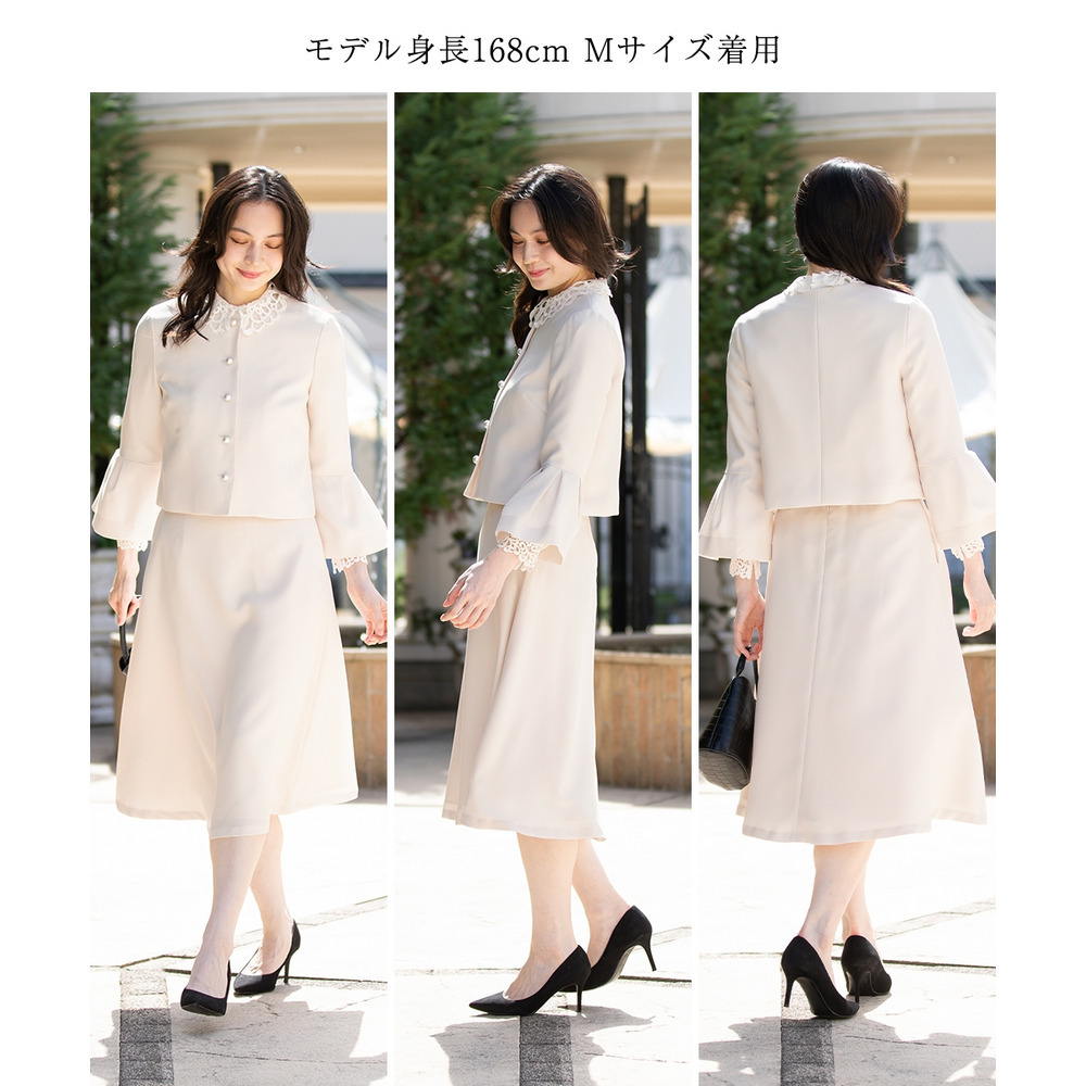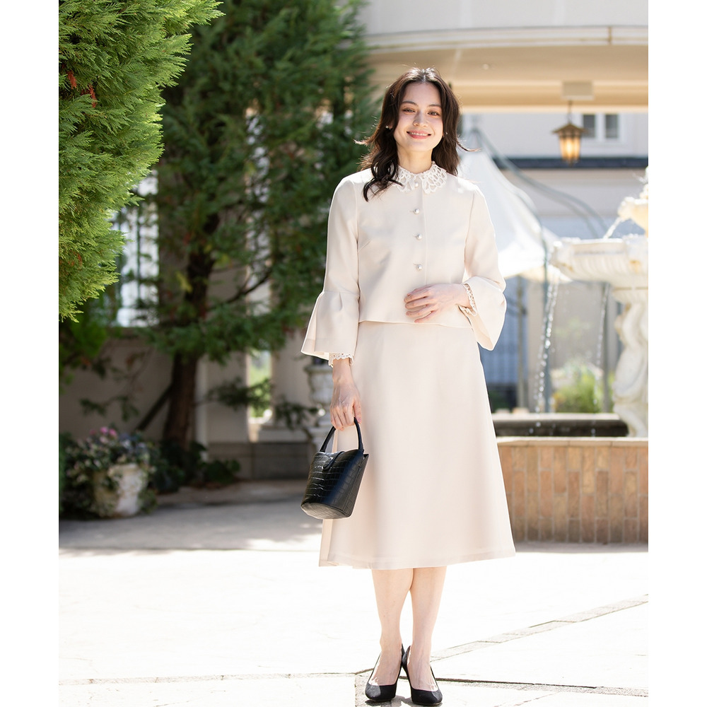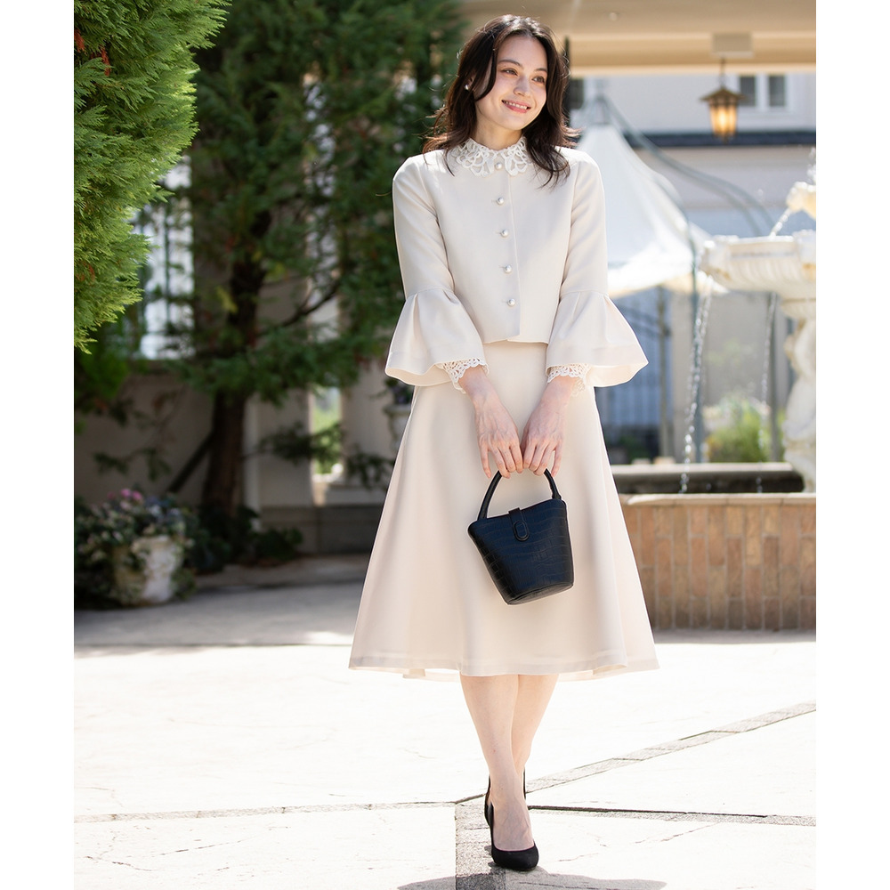 【入学式・卒業式・フォーマル】洗える パール釦使い袖タックデザインジャケット+フレアスカートセットアップ 大きいサイズ