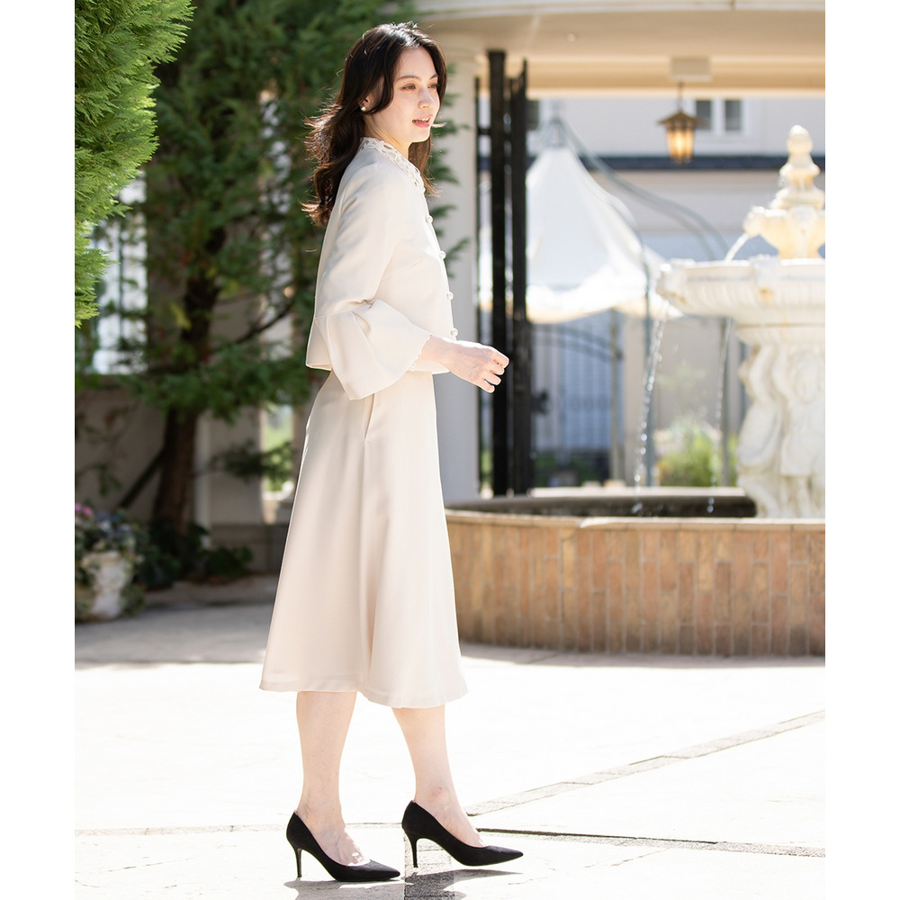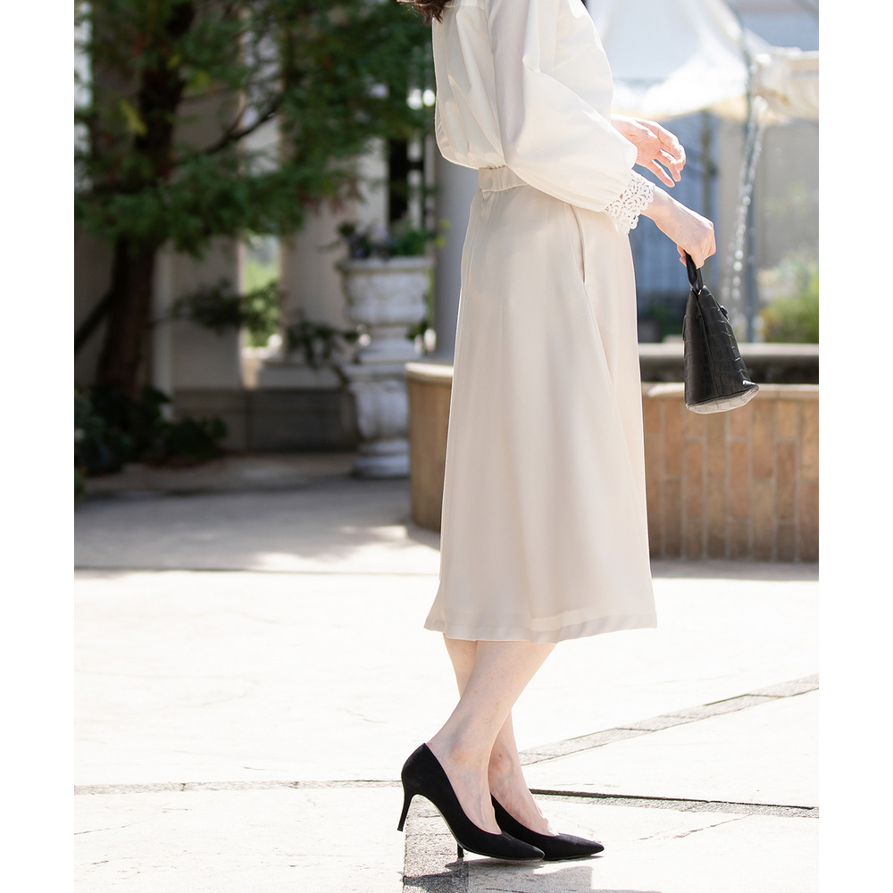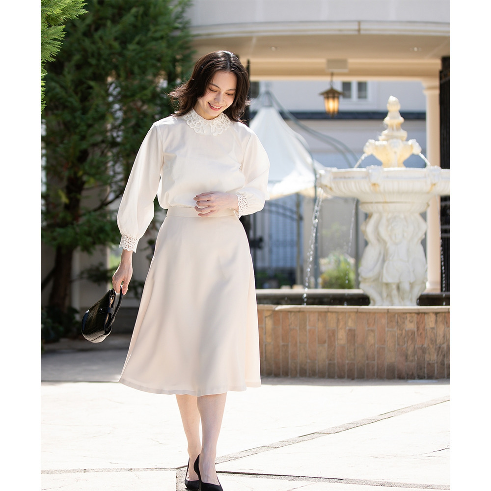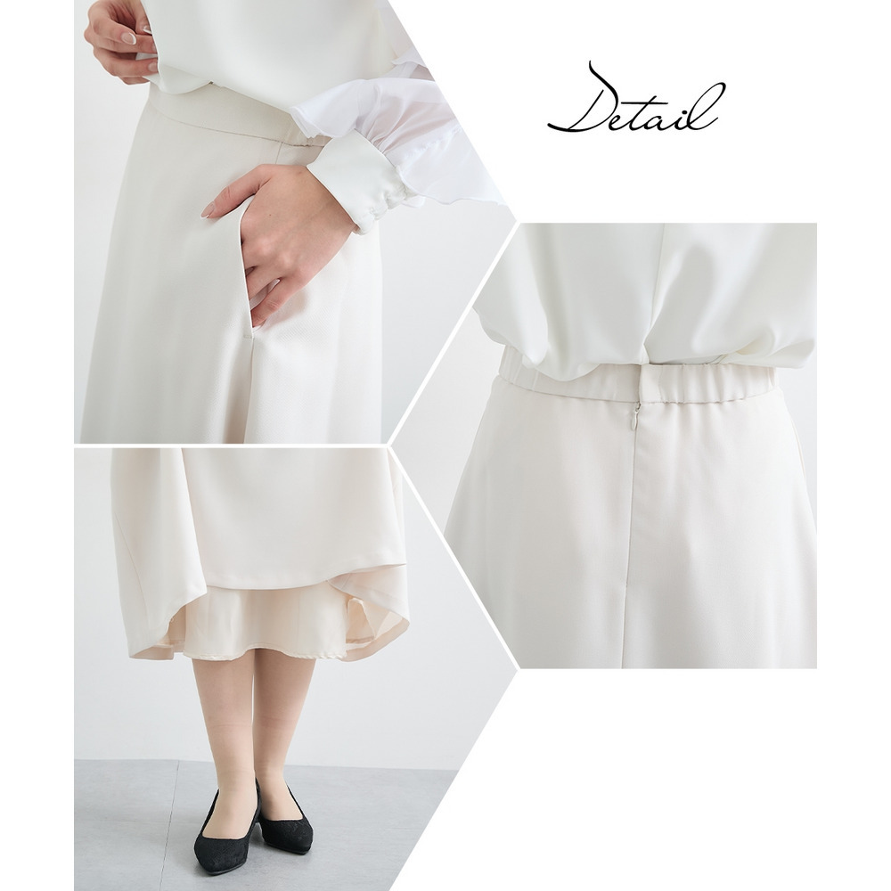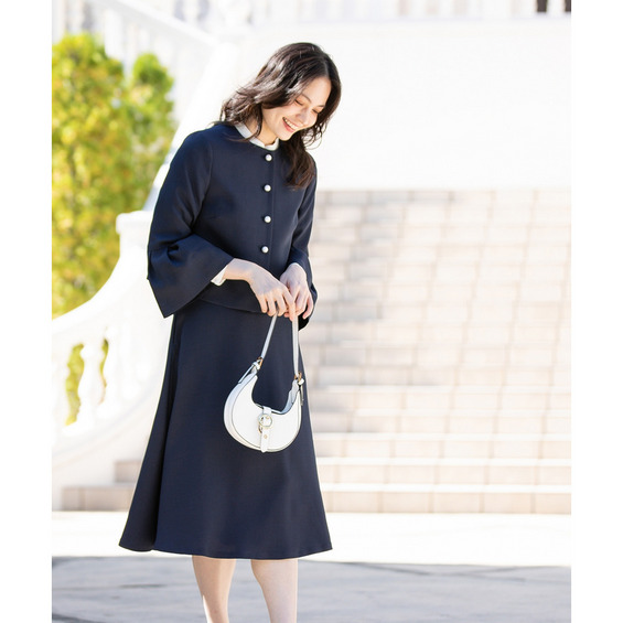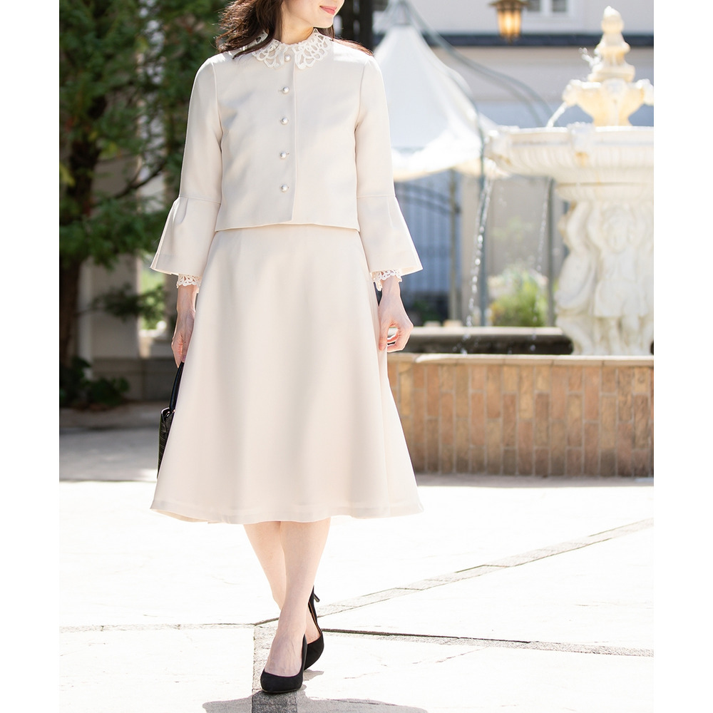 【入学式・卒業式・フォーマル】洗える パール釦使い袖タックデザインジャケット+フレアスカートセットアップ 大きいサイズ