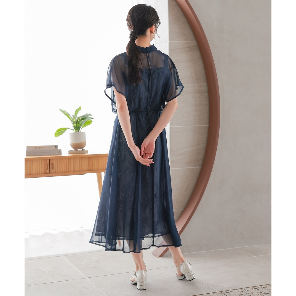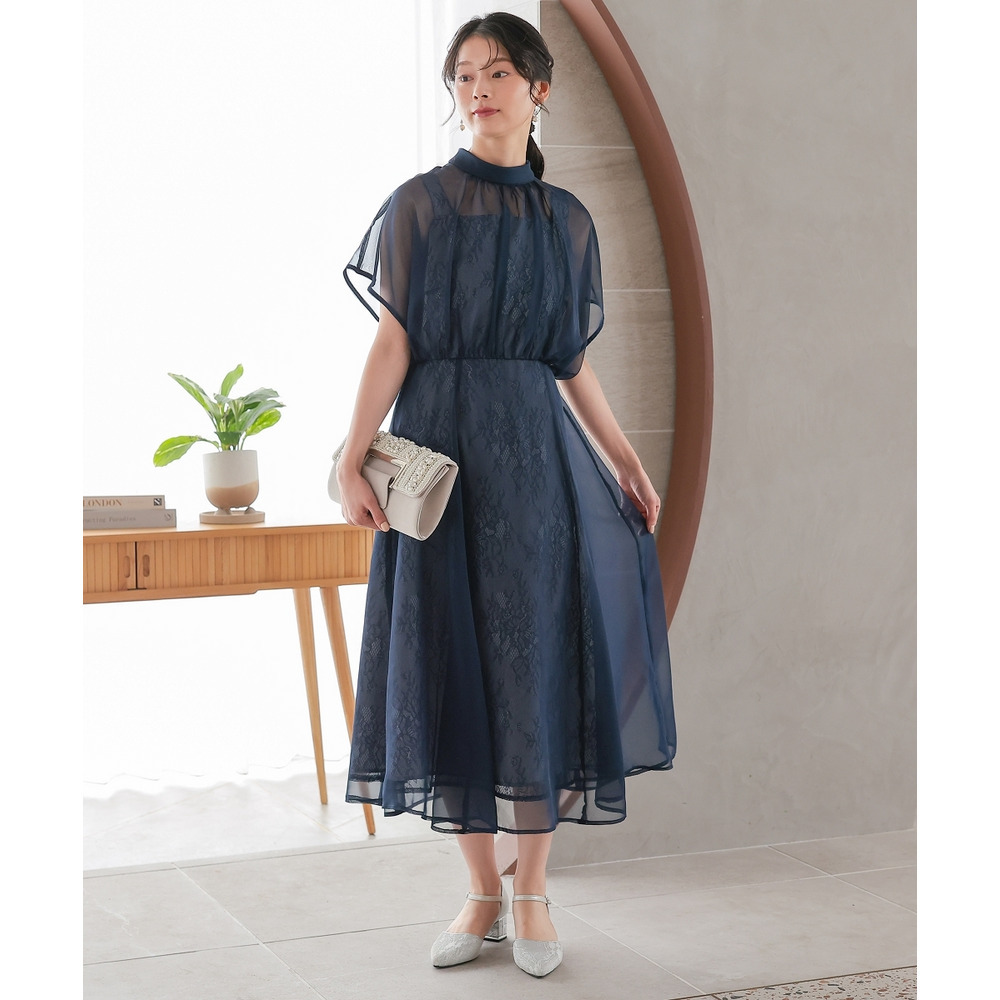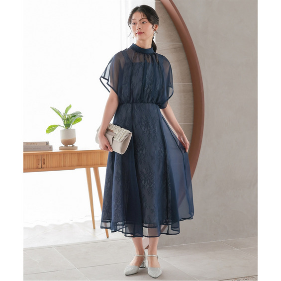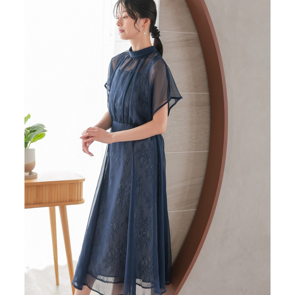 | 素材 | 品質=〔表側〕本体ポリエステル100%(織物)レース部分ナイロン100%(編物) [裏地]有(身頃部) ワンピース:後ボタン付ファスナー開 ウエスト後ゴム入 ※レース柄の出方が多少異なる場合があります。 ※繊細なレースを使用しているため、引っかかりなどにご注意ください。 |