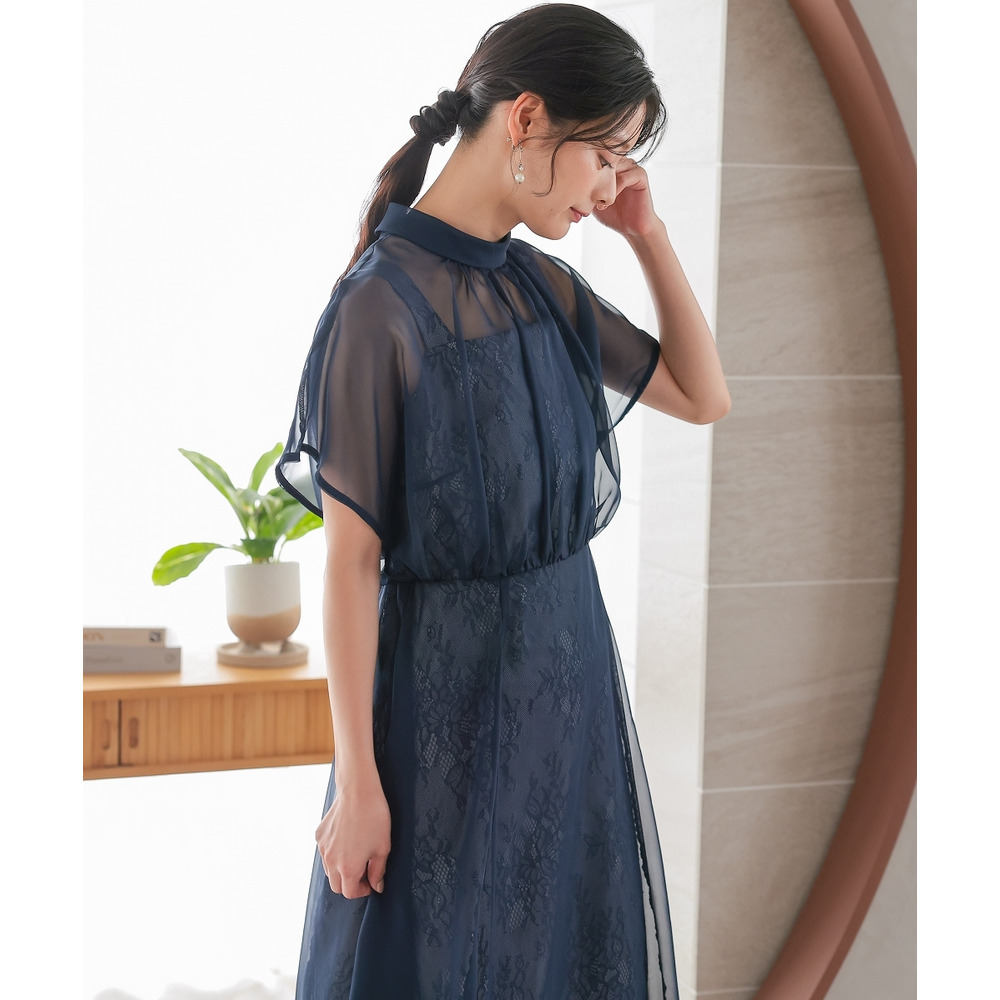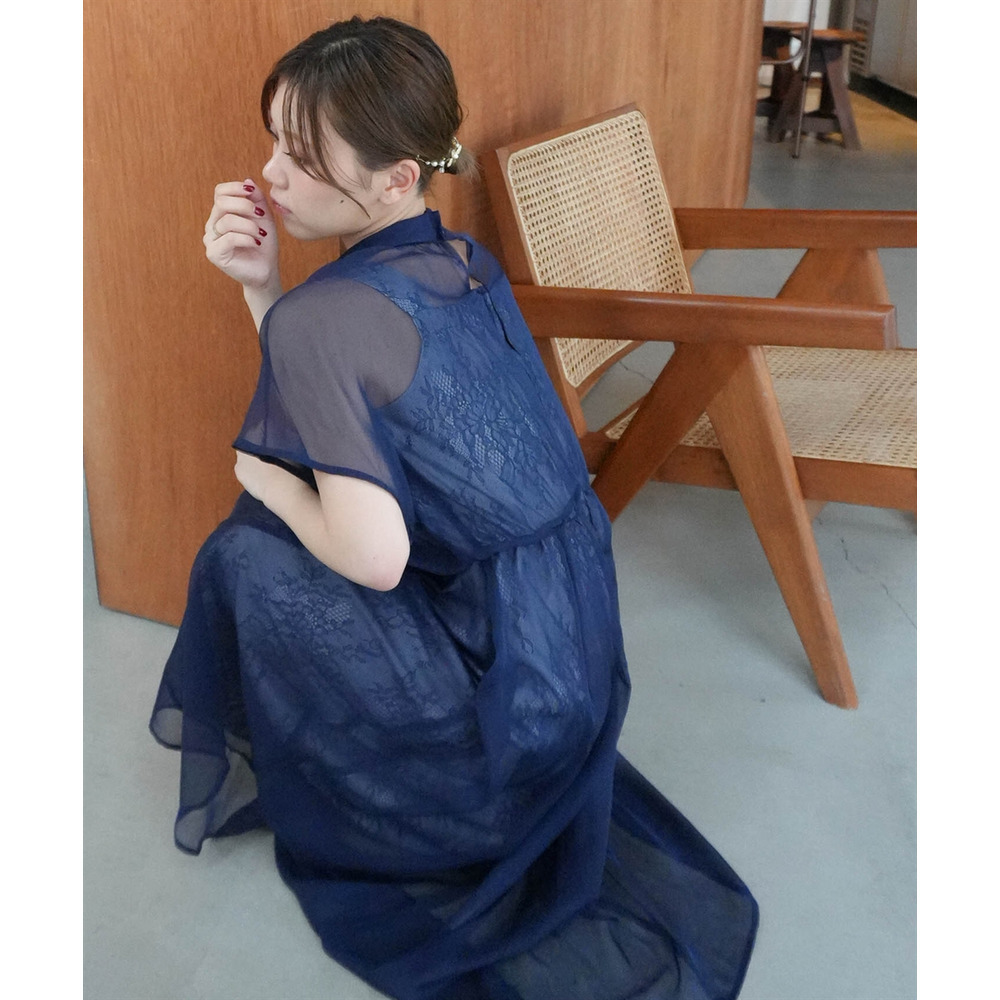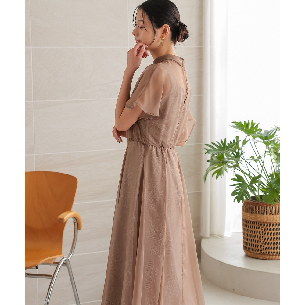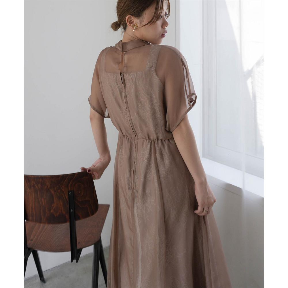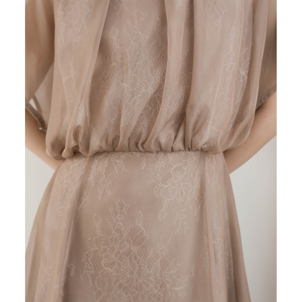繊細なレース生地にシフォンオーガンジーのシアー素材を重ねた上品なデザイン