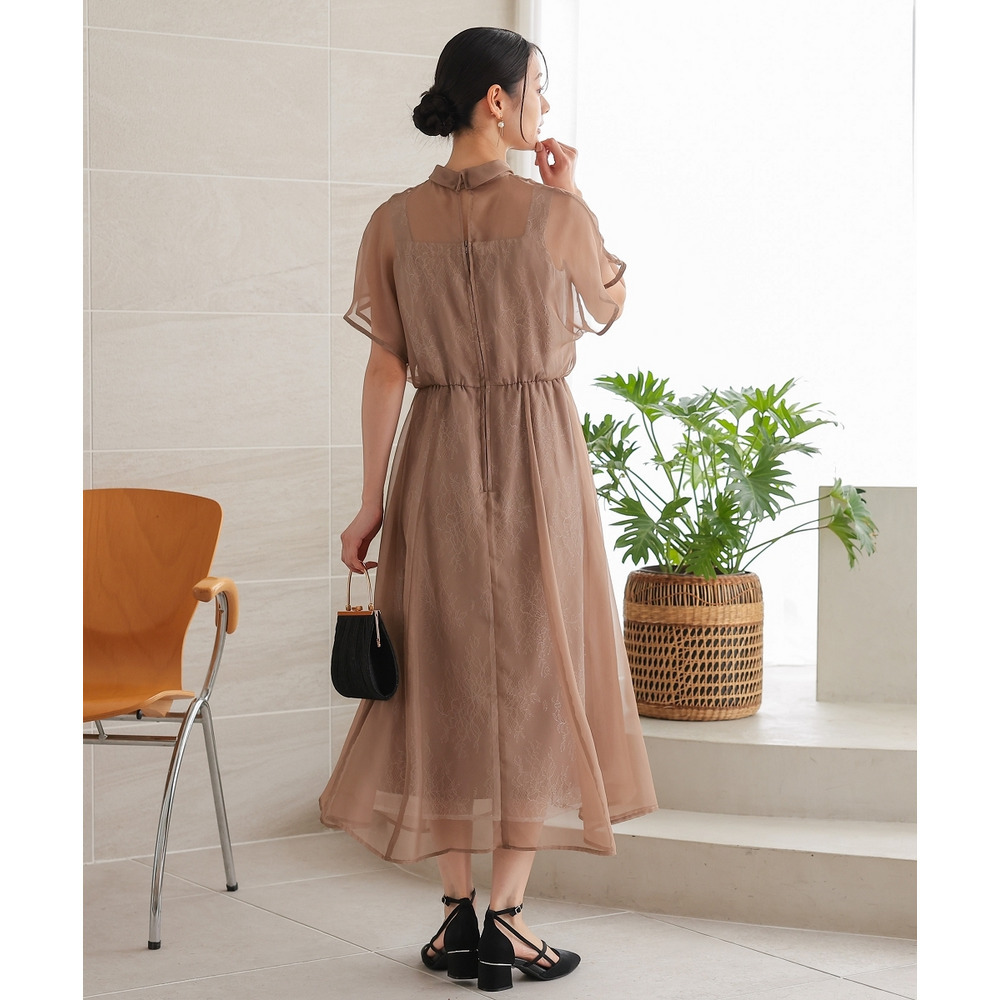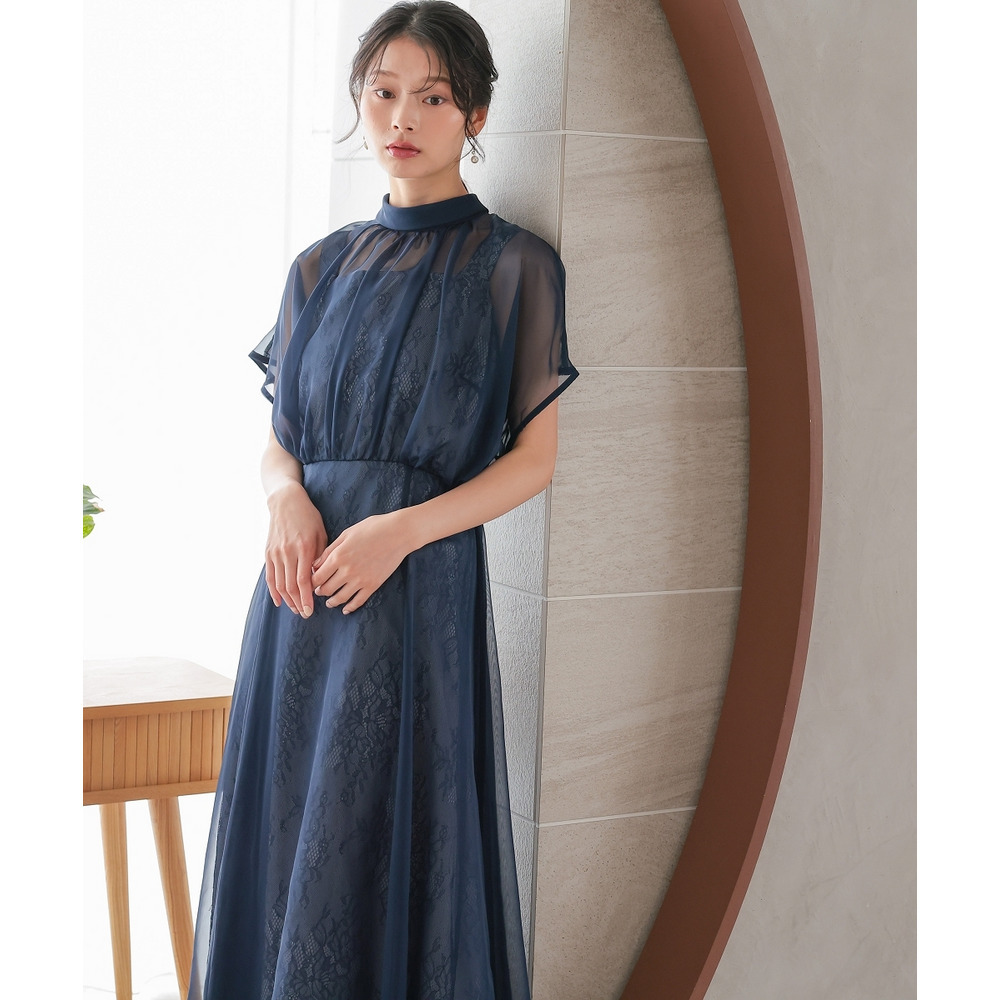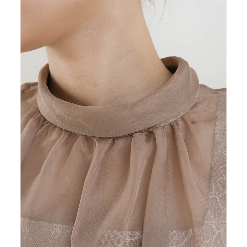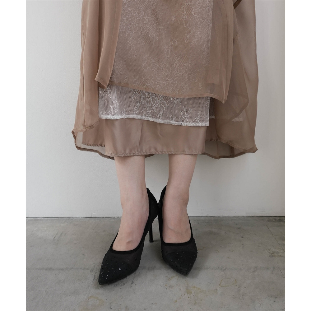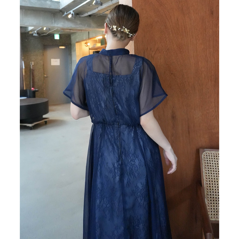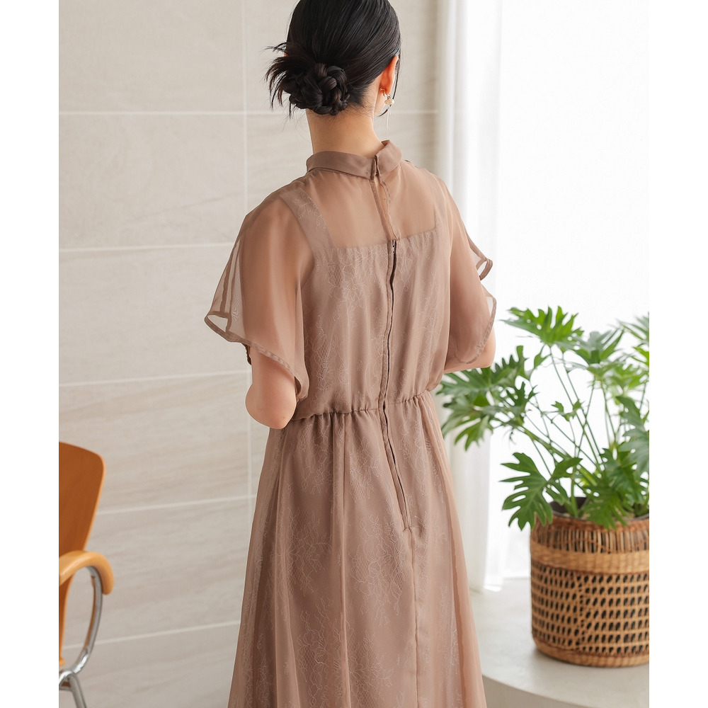 繊細なレース生地にシフォンオーガンジーのシアー素材を重ねた上品なデザイン