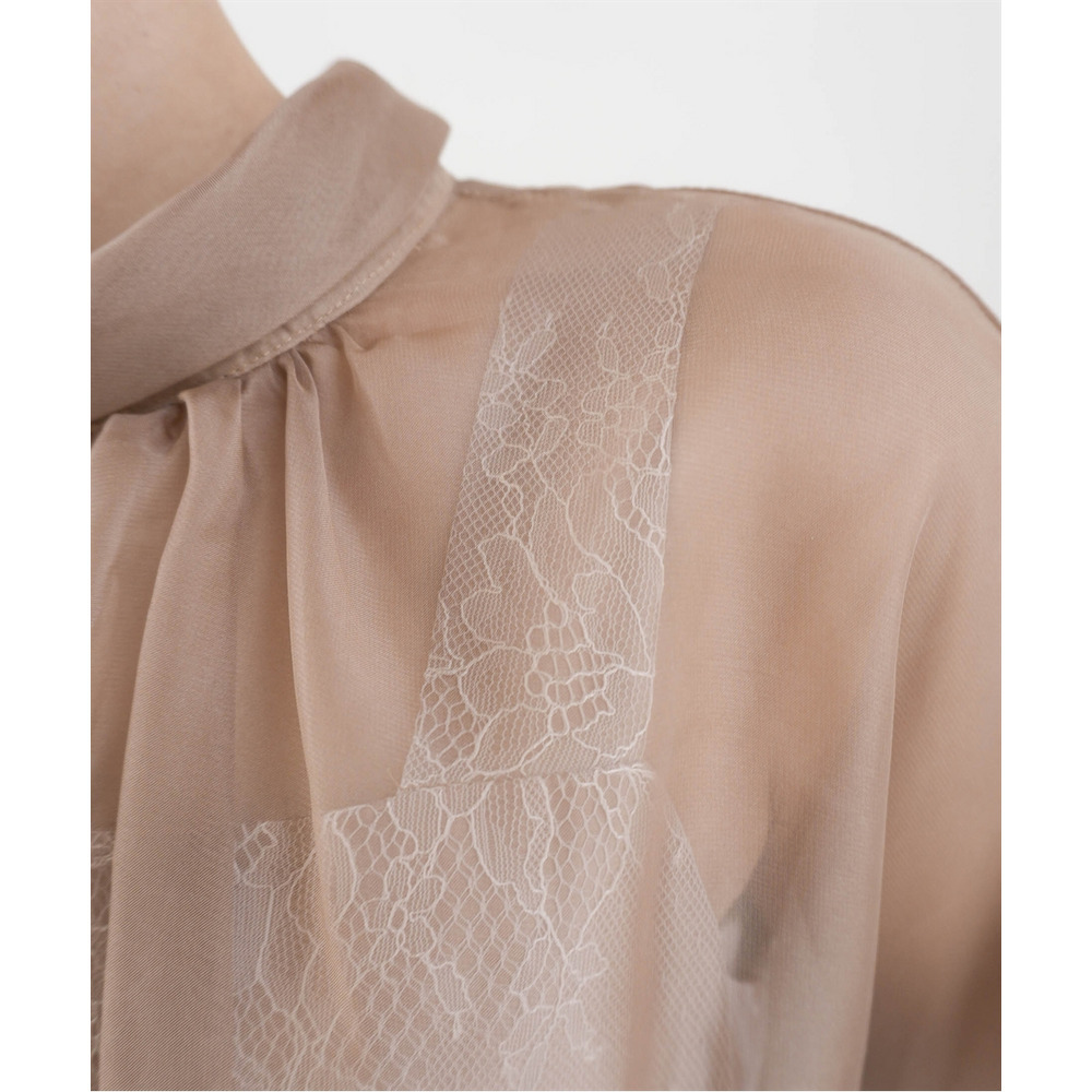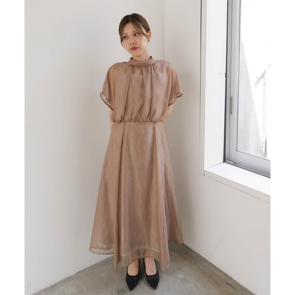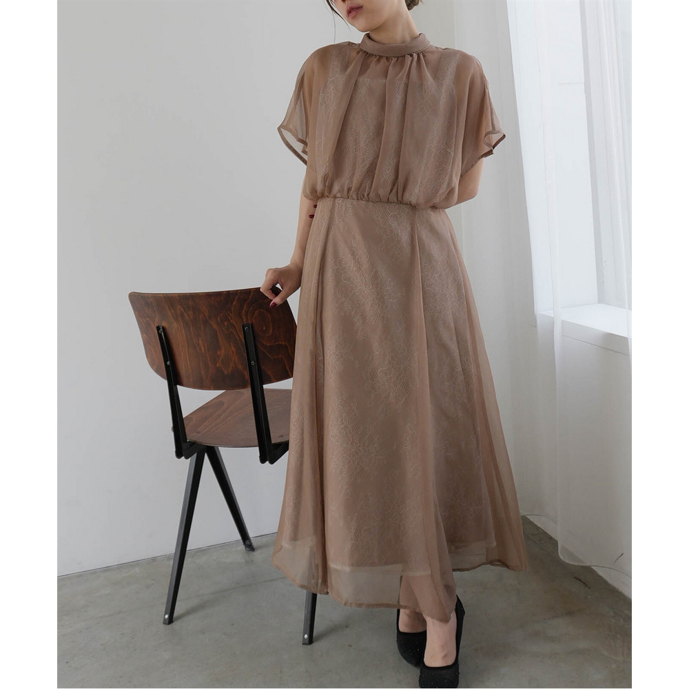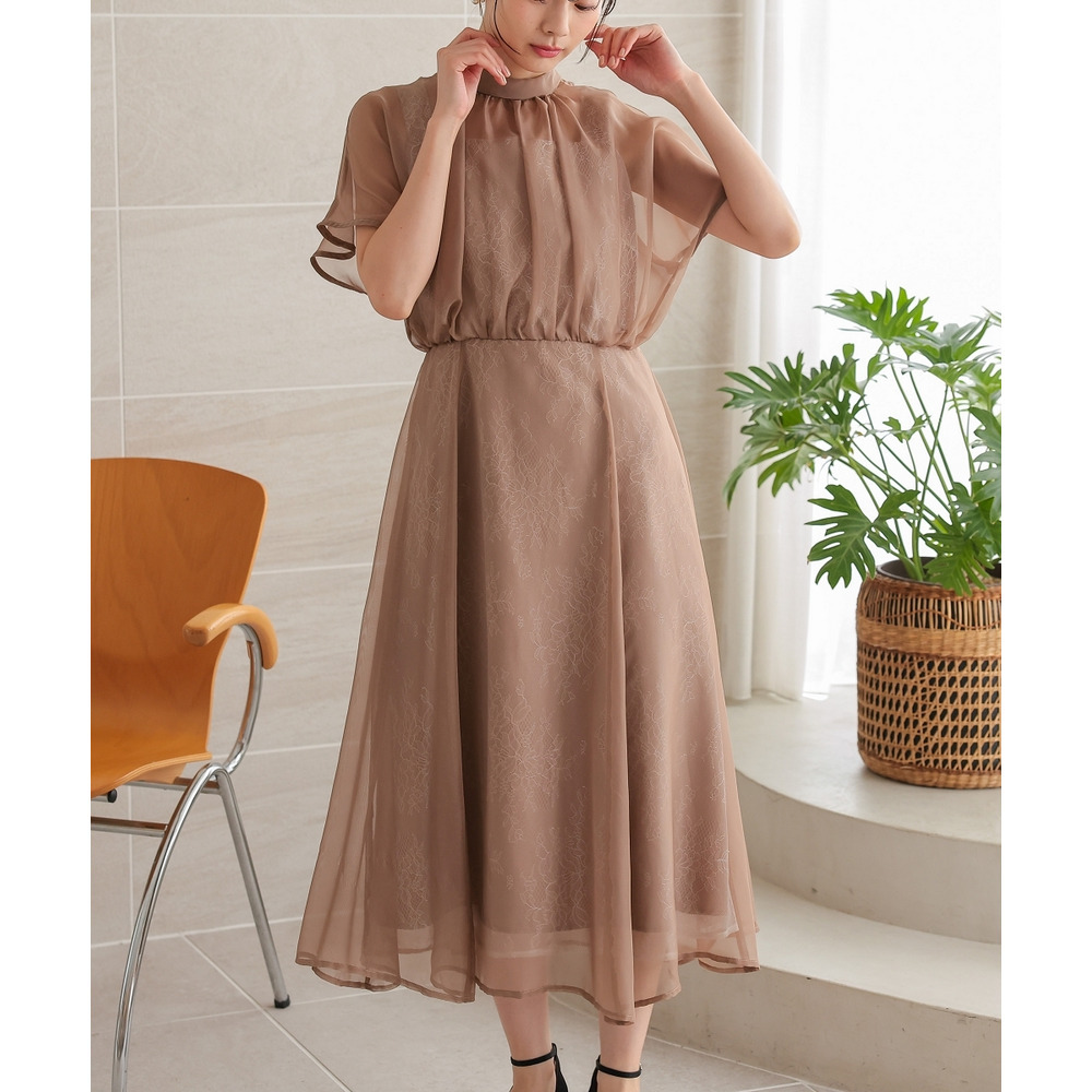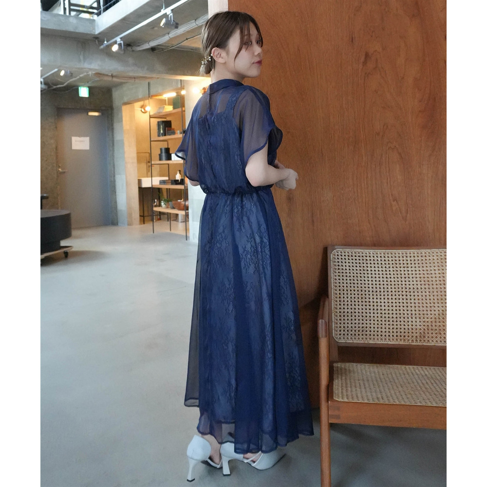 繊細なレース生地にシフォンオーガンジーのシアー素材を重ねた上品なデザイン