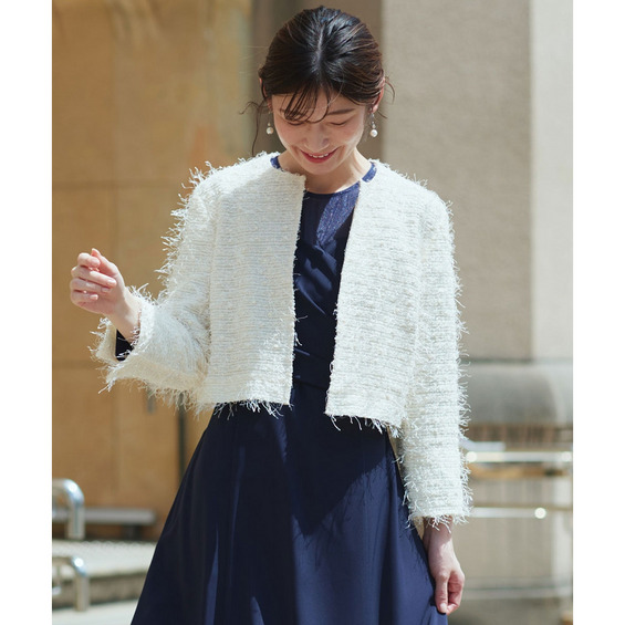【結婚式・パーティードレス】フリンジニットジャケット 大きいサイズ