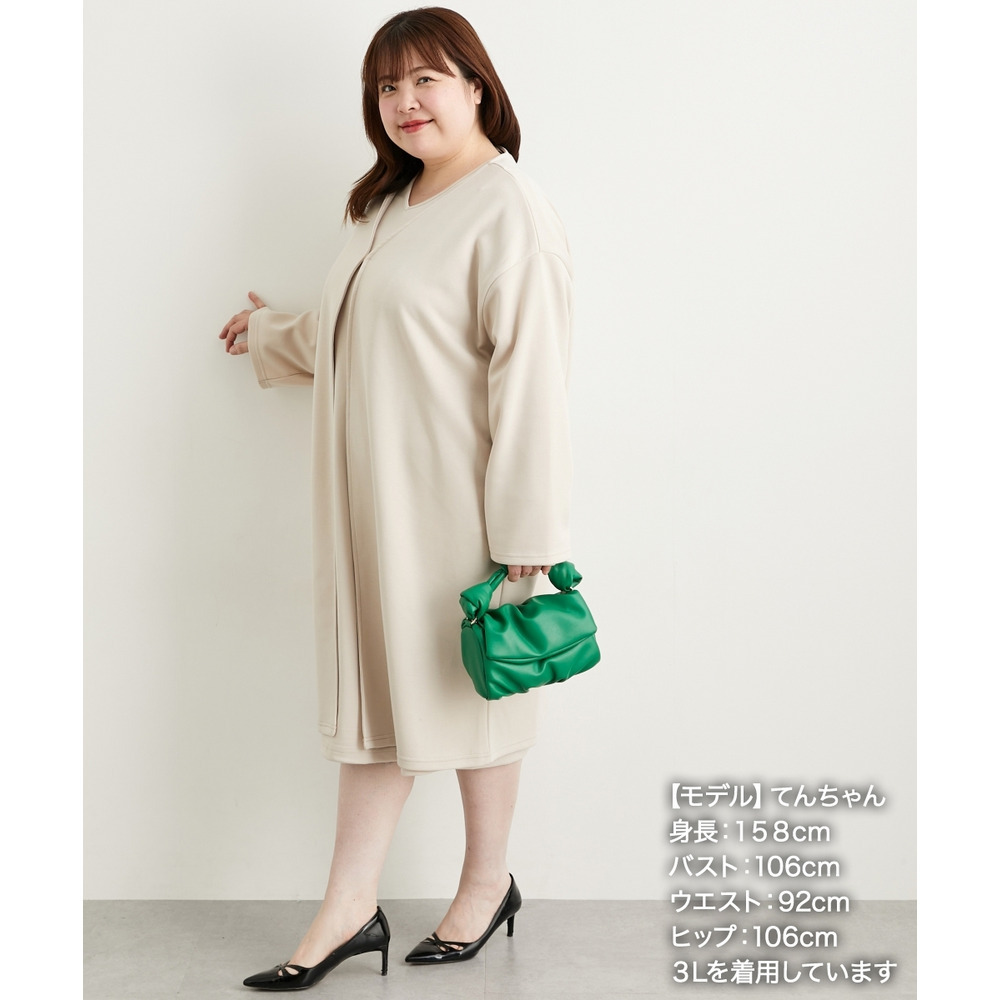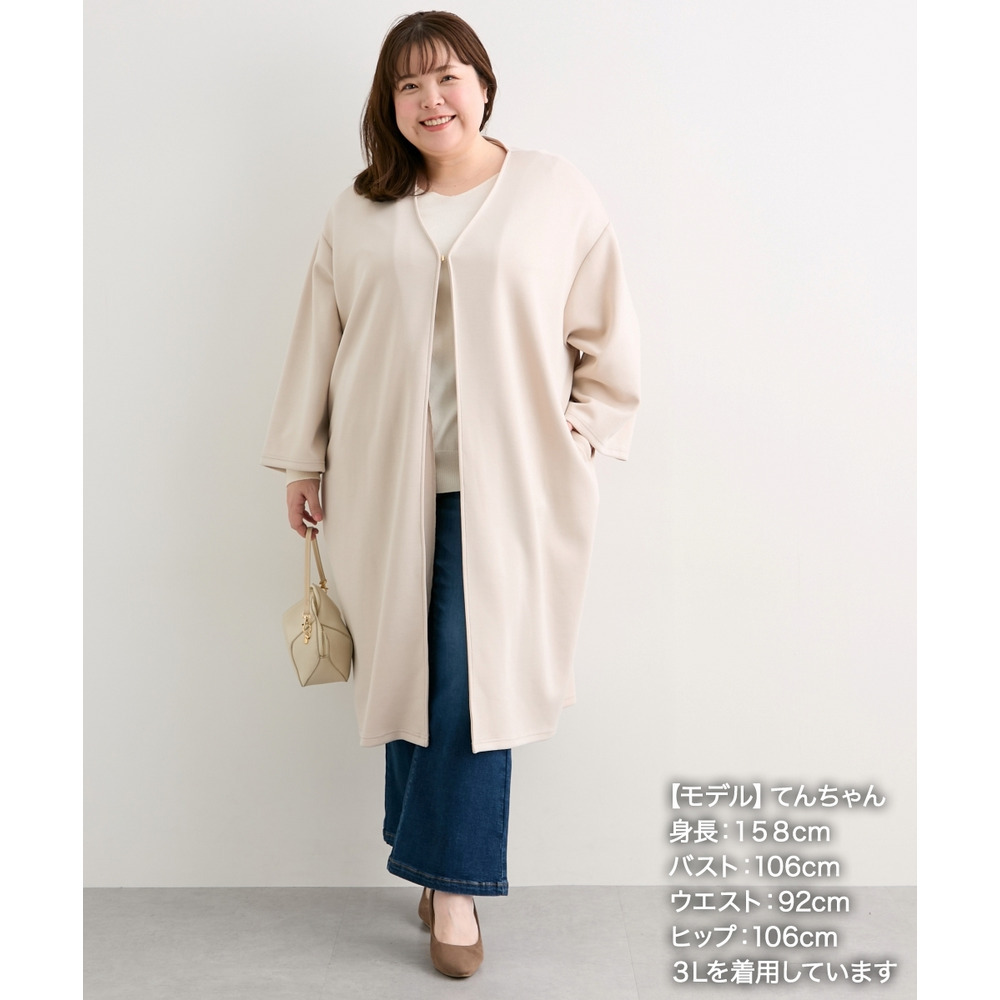 なめらかポンチ素材 トッパーゆるシルエットロング丈コーディガン 大きいサイズ