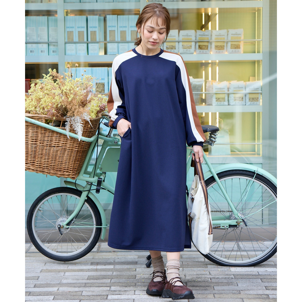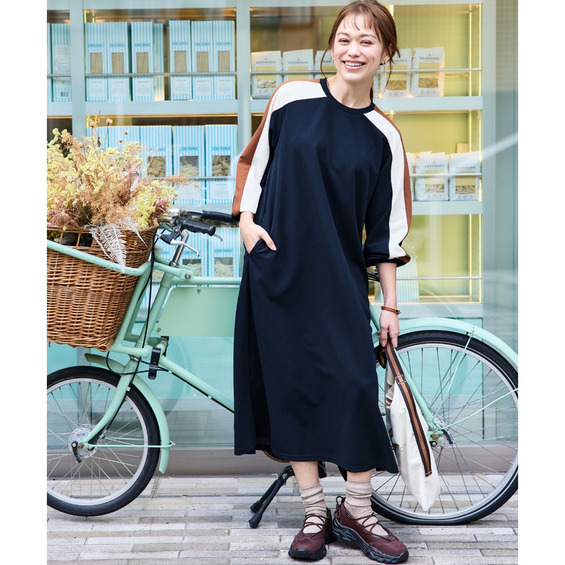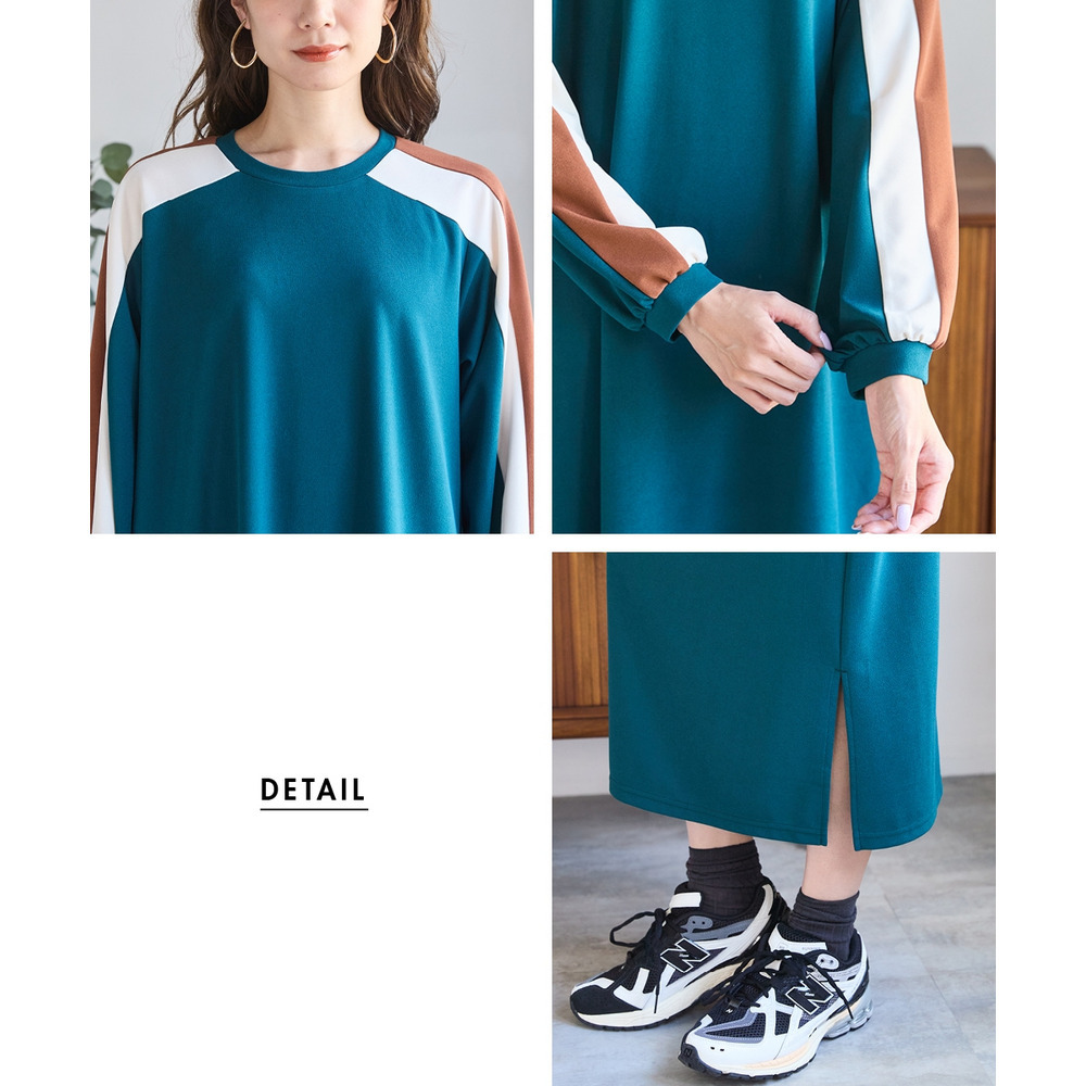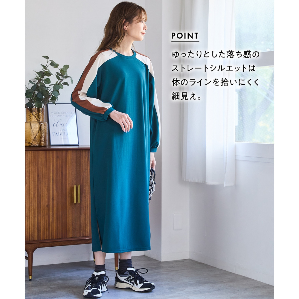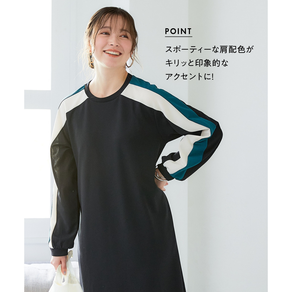 ゆるシルエットカラーラインカットソーワンピース 大きいサイズ