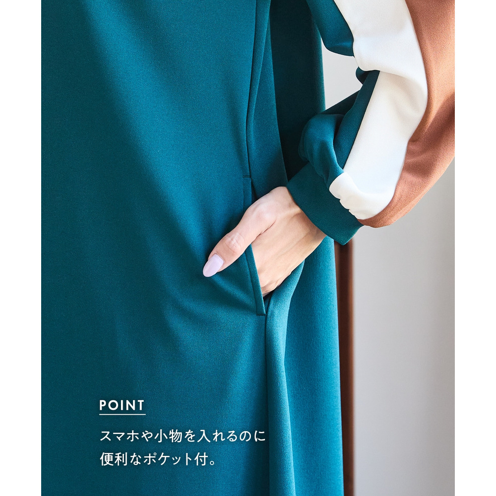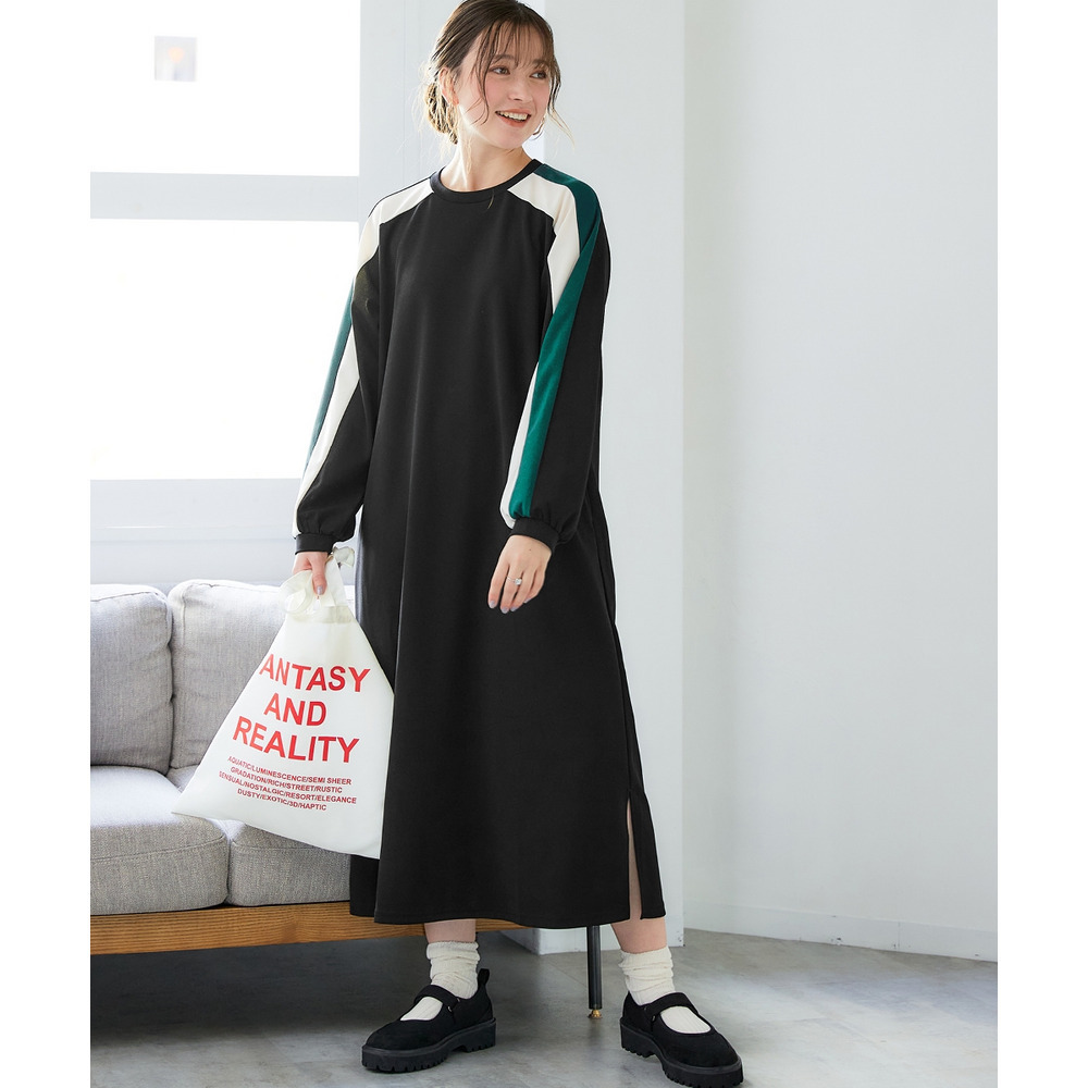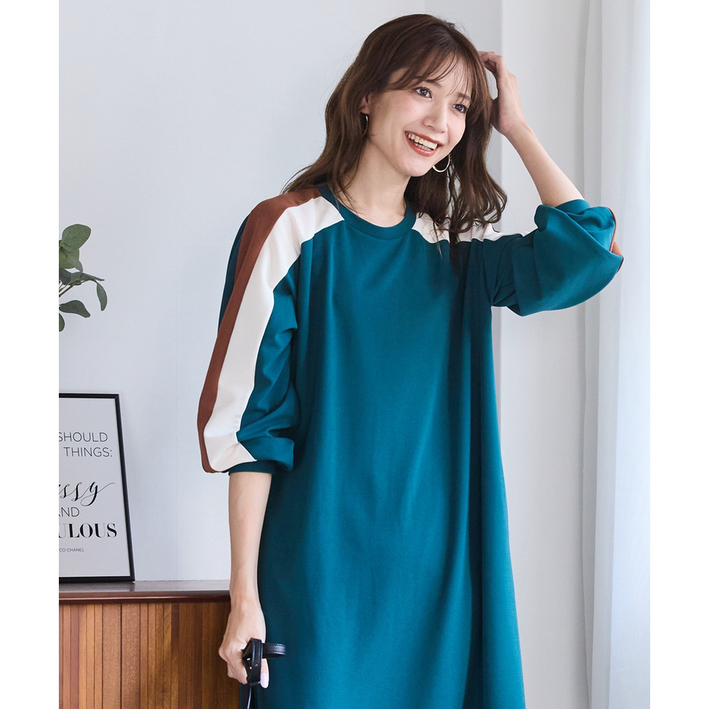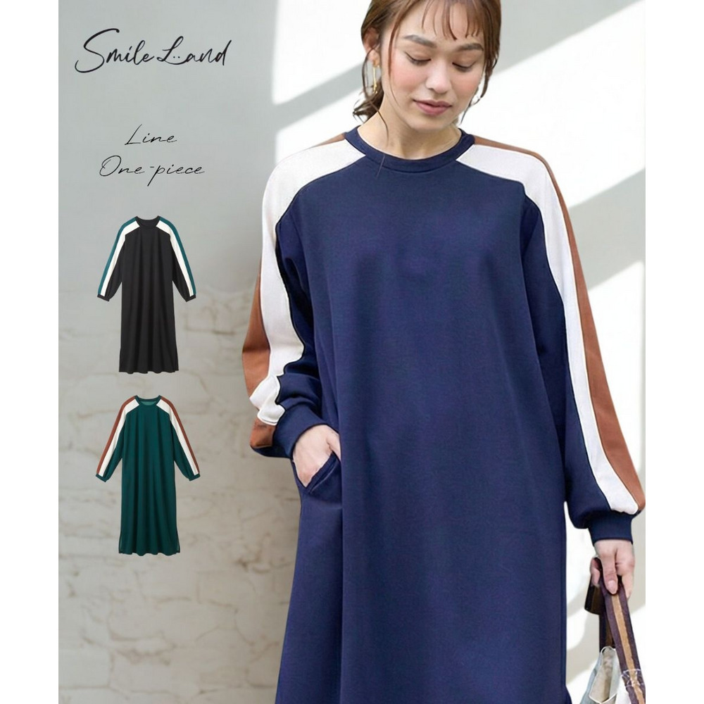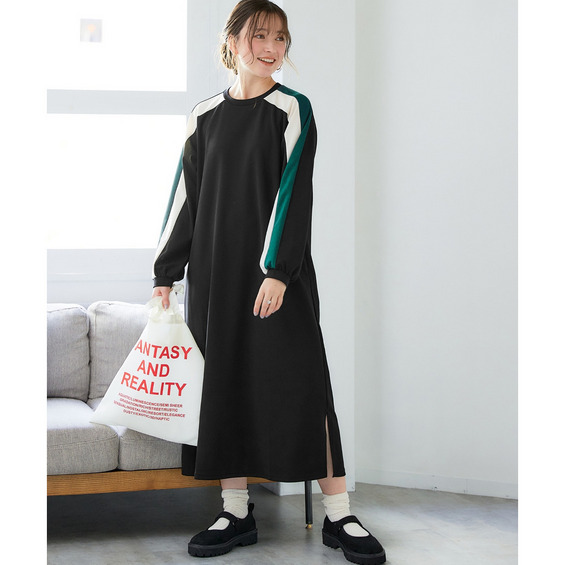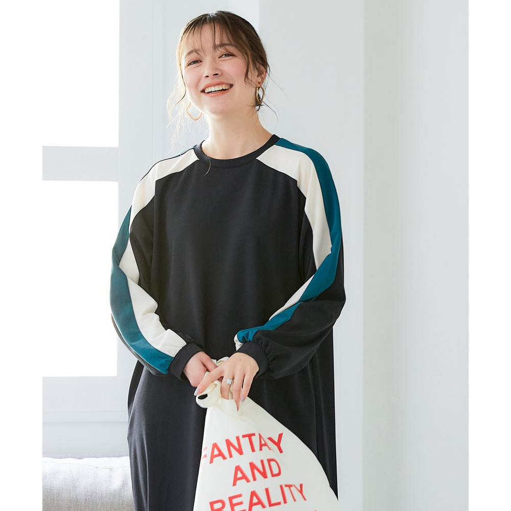 ゆるシルエットカラーラインカットソーワンピース 大きいサイズ