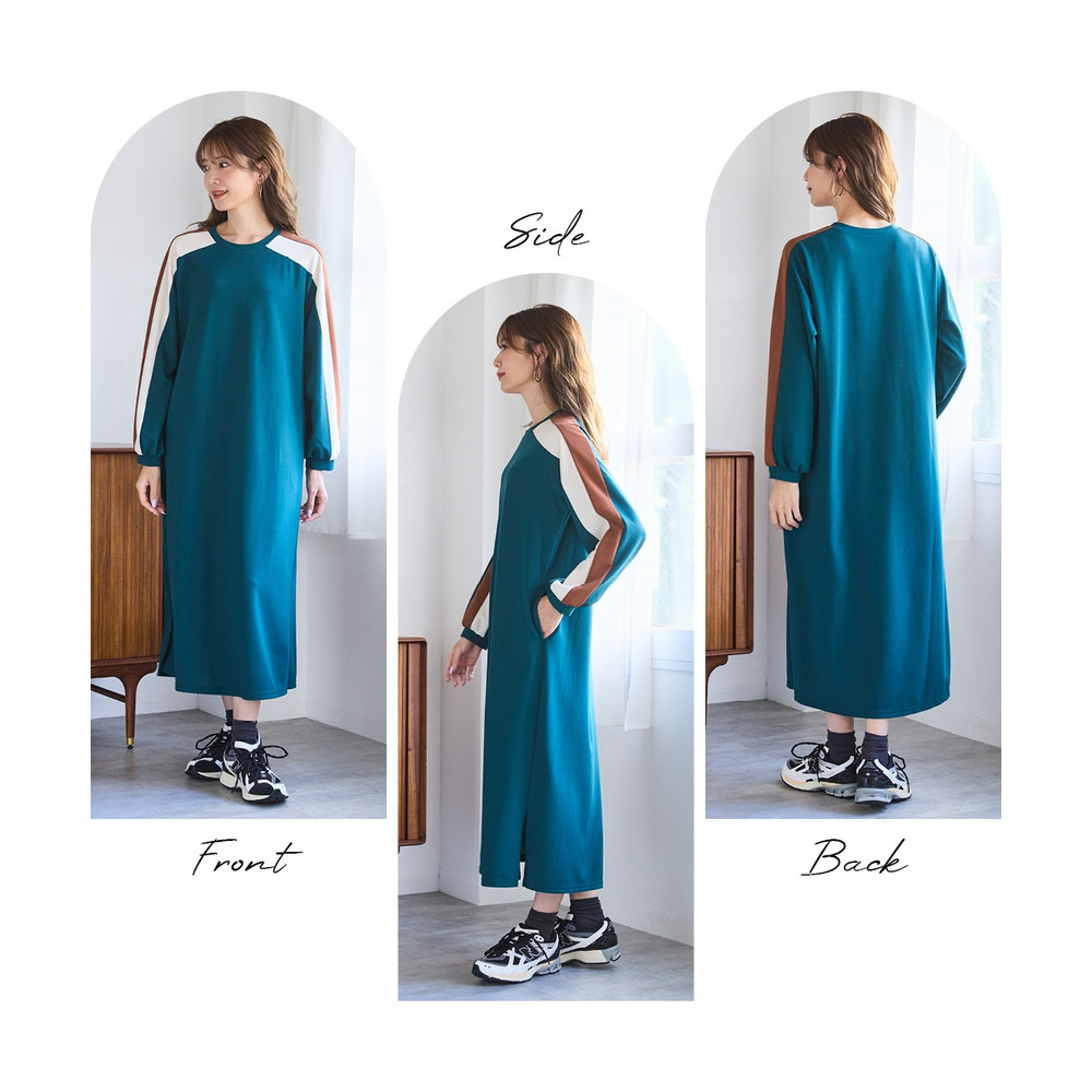 体のラインを拾いにくい、ゆったりとしたロング丈のゆるいシルエットです。