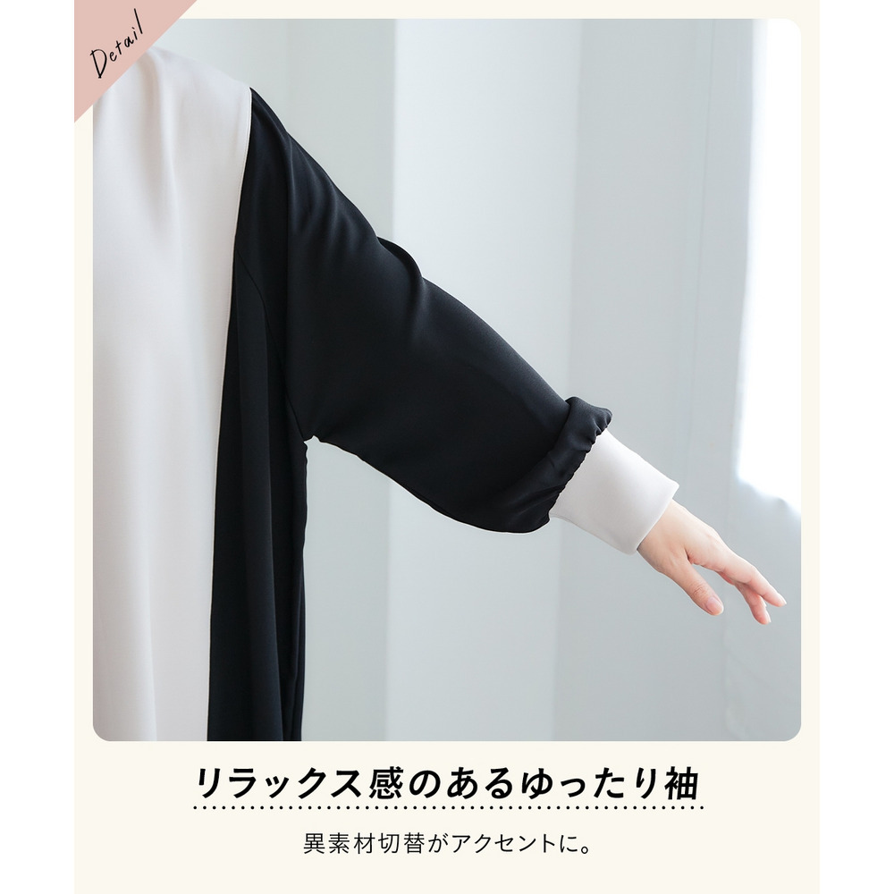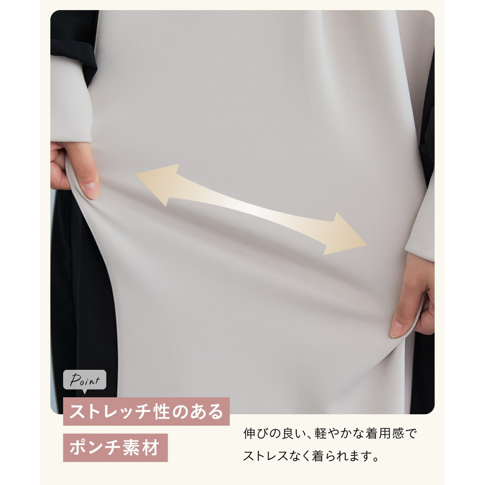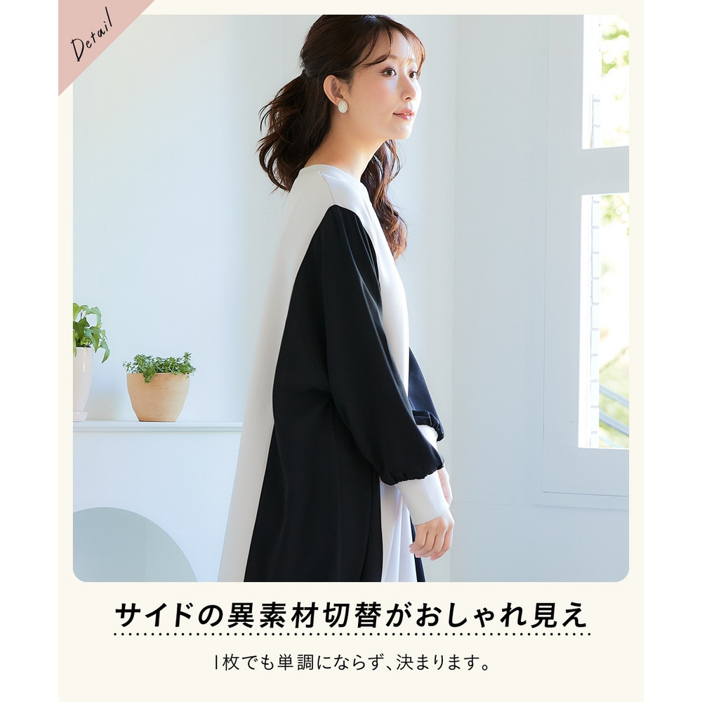| 素材 | 品質=[本体]ポリエステル80%・レーヨン15%・ポリウレタン5% [別布部]ポリエステル95%・ポリウレタン5% 後スリット透け感:透けにくい 伸縮性:あり 生地の厚み:普通 光沢感:ややあり 裏地:なし ポケット:あり 季節:春・秋 シルエット:ゆったり |