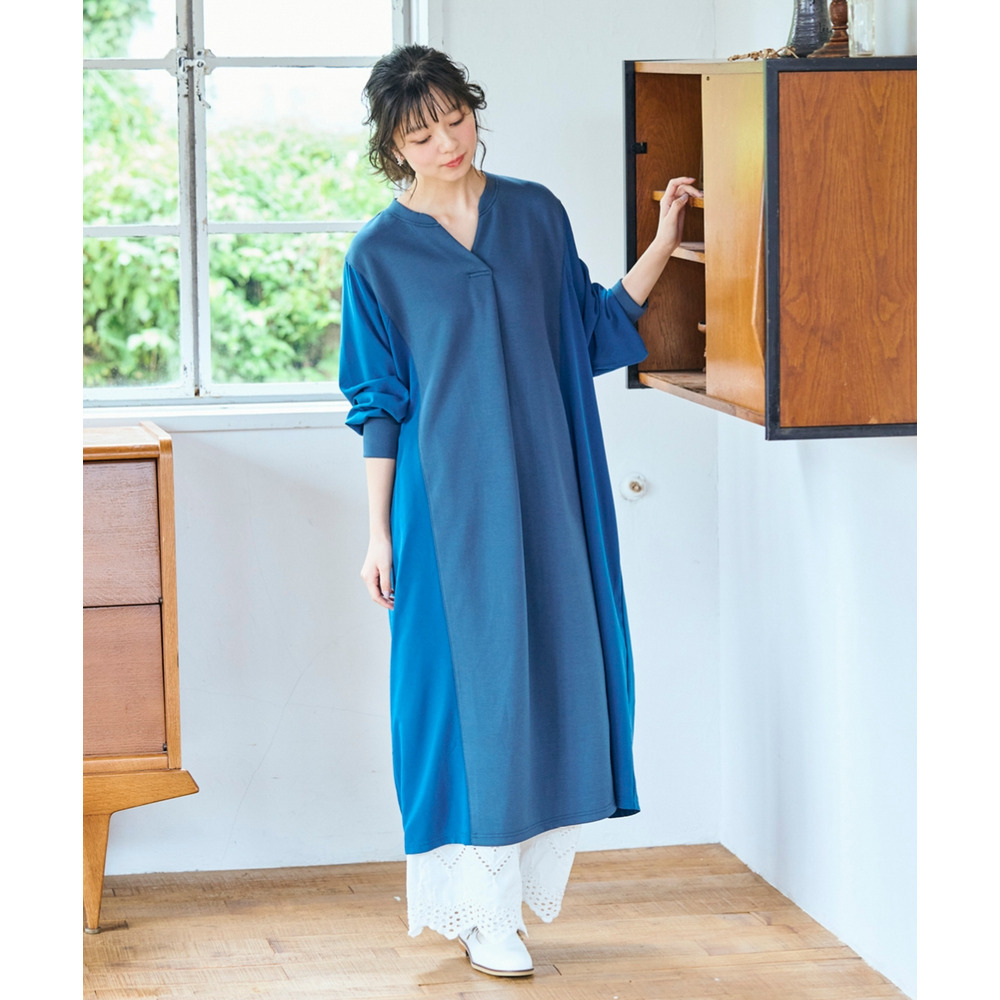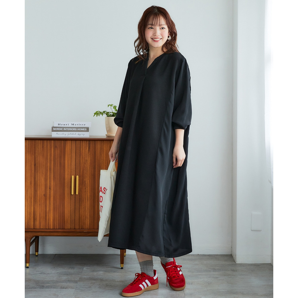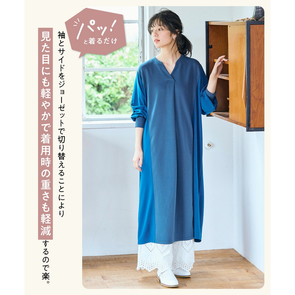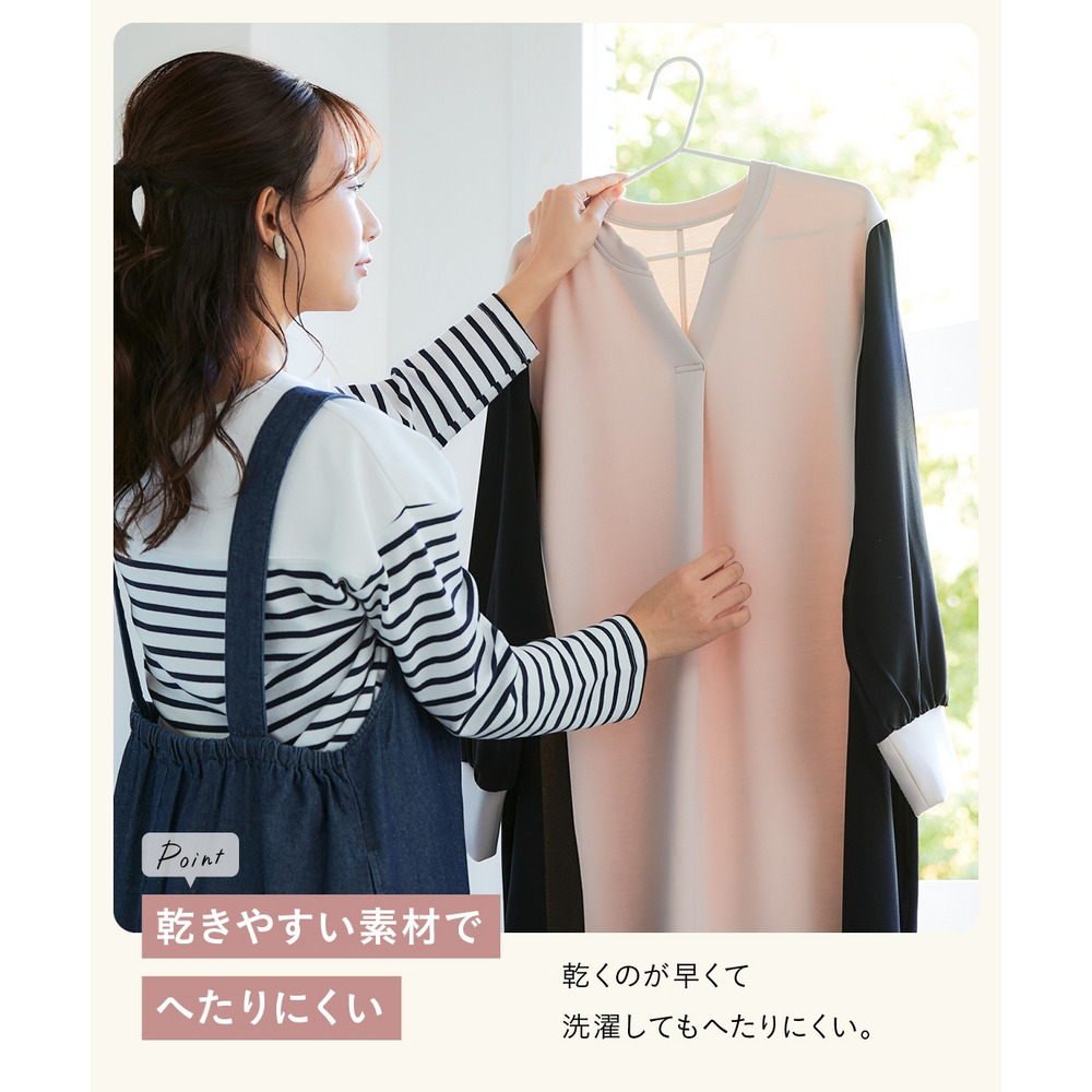 なめらかポンチスキッパー異素材切替ワンピース 大きいサイズ