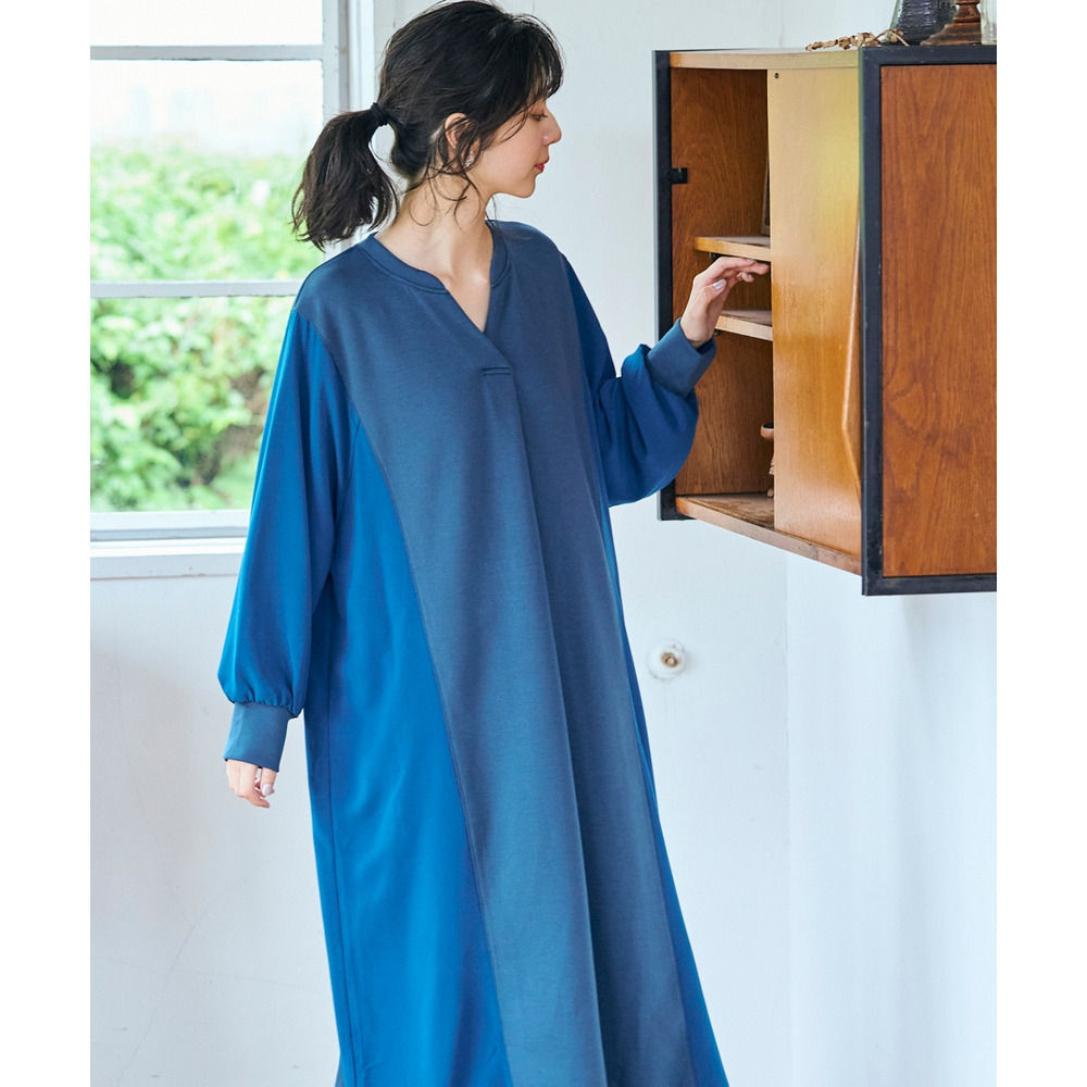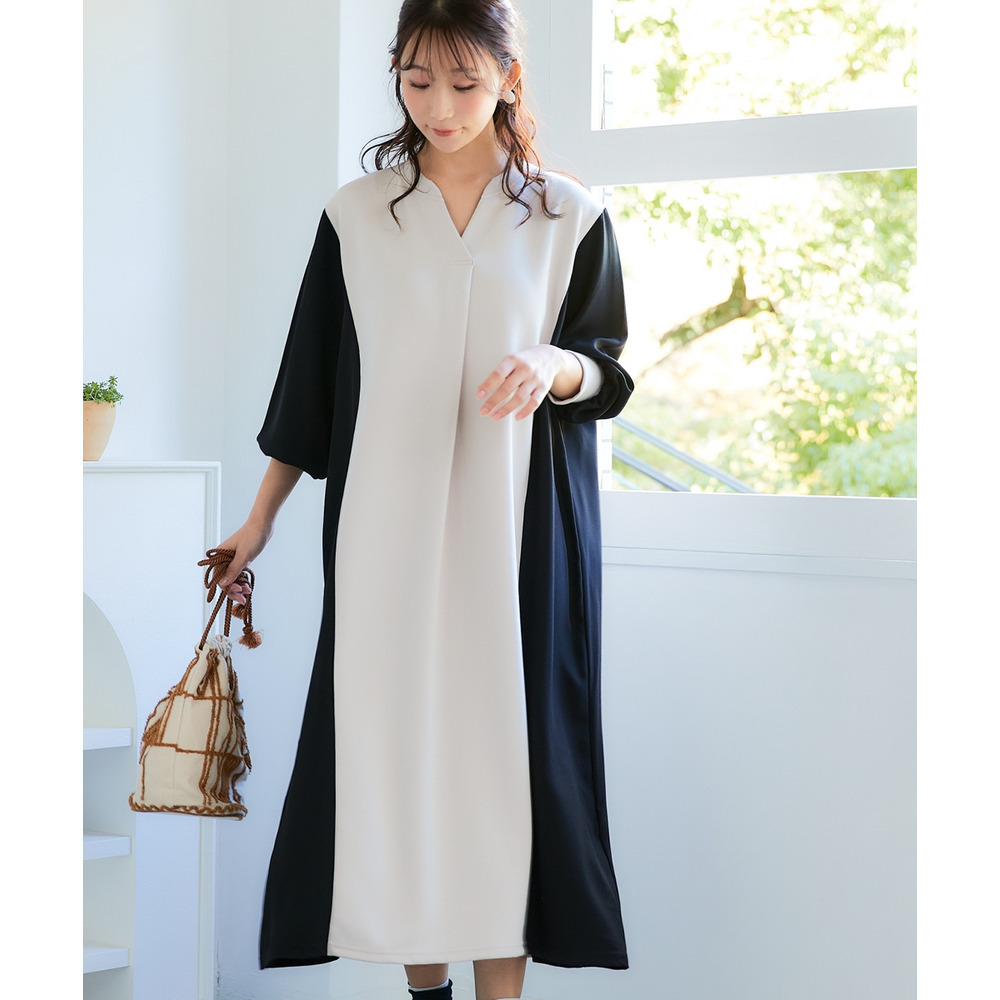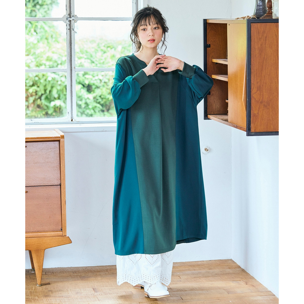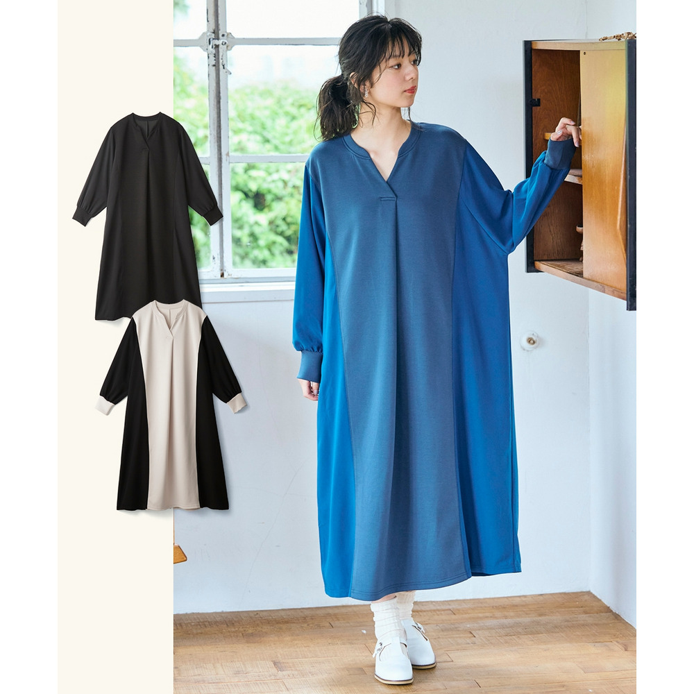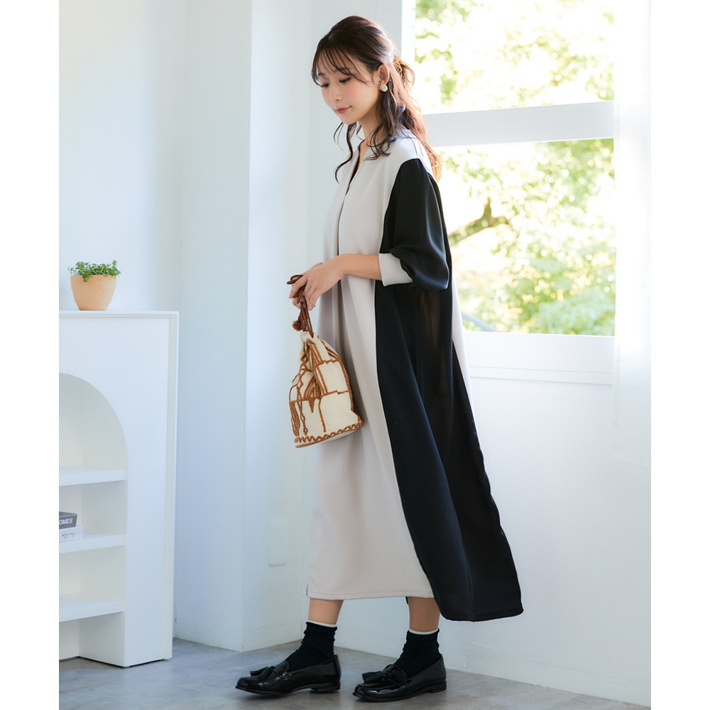 なめらかポンチスキッパー異素材切替ワンピース 大きいサイズ