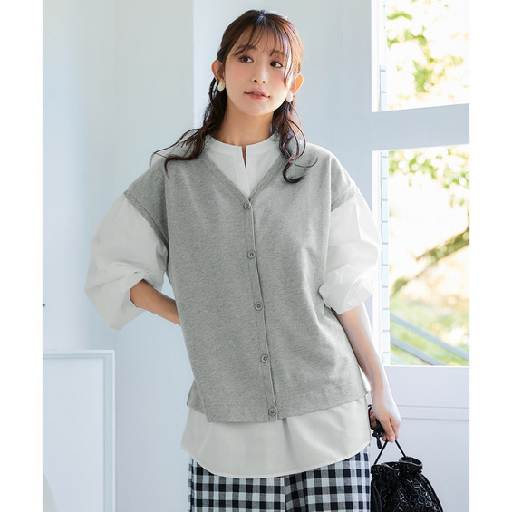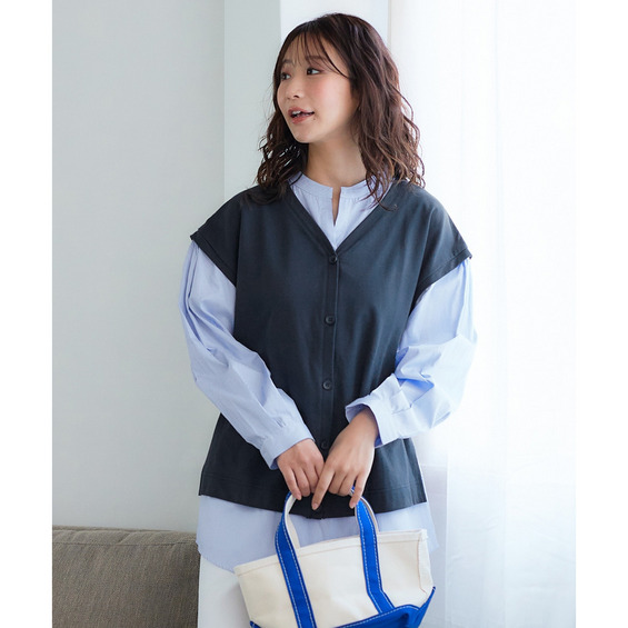 お洒落をしたいけれど組み合わせに悩む時間を減らしたいというニーズに応え、ベストとシャツを重ね着したようなフェイクレイヤードデザインを採用しました。