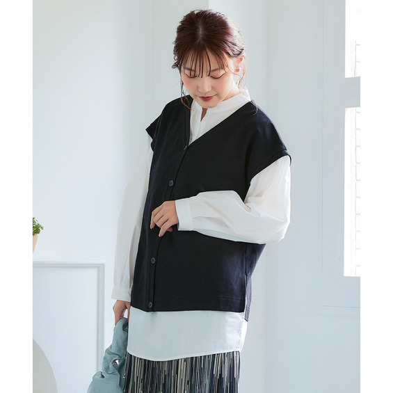 スキッパーシャツベスト重ね着風トップス 大きいサイズ