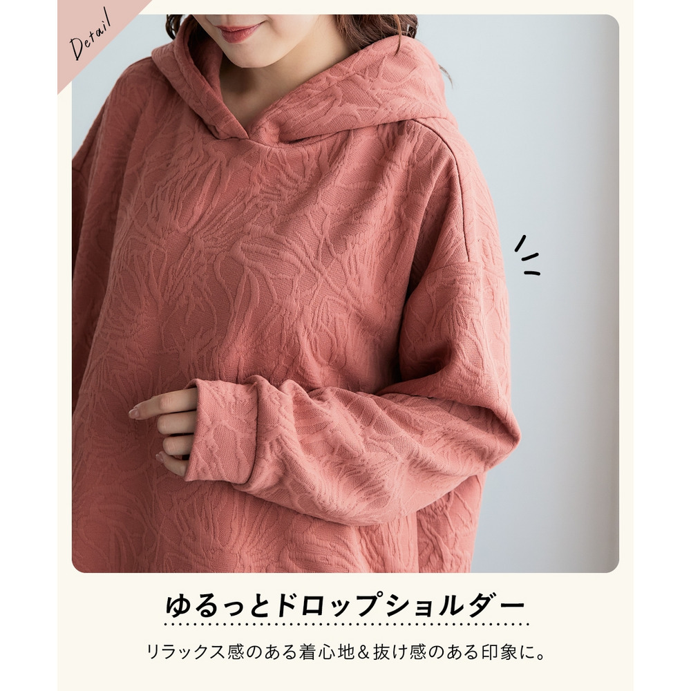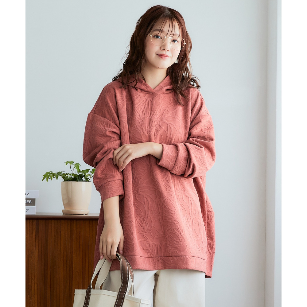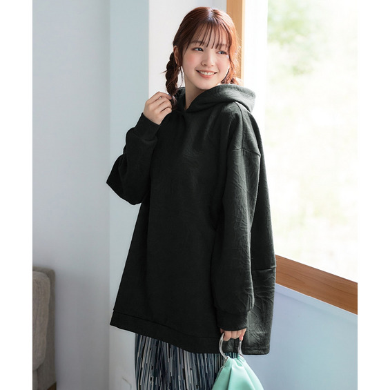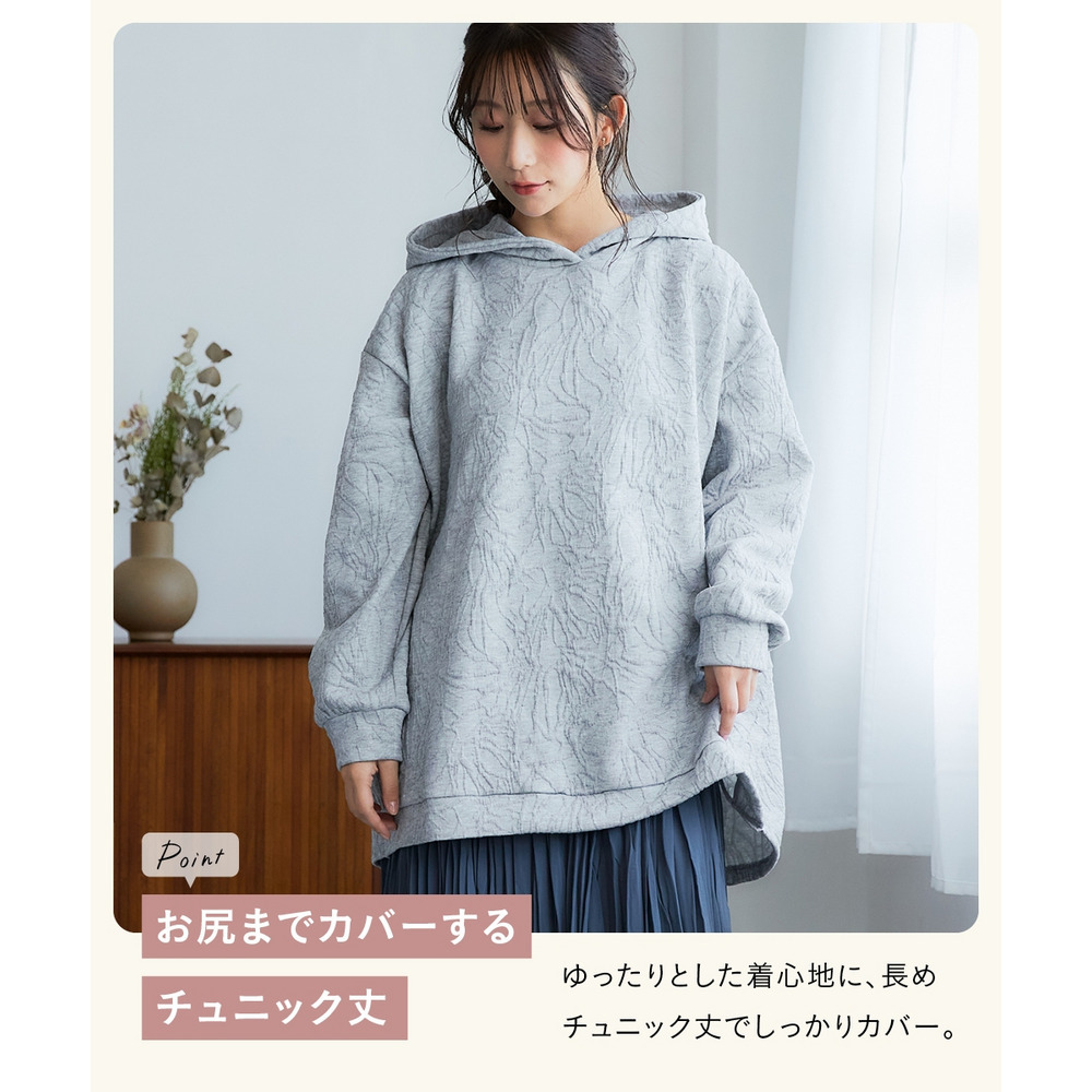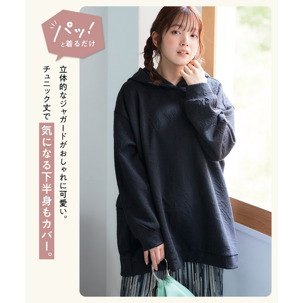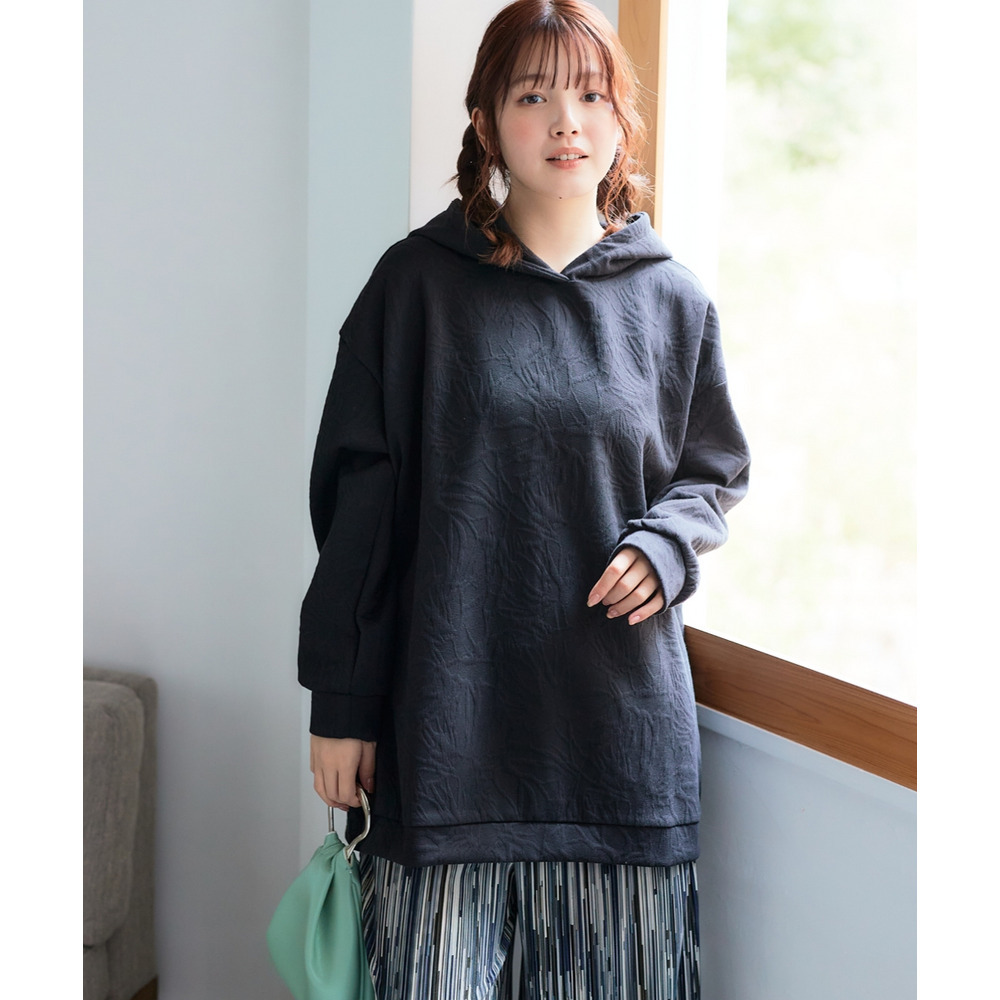 ふくれフラワージャガードチュニックパーカー 大きいサイズ