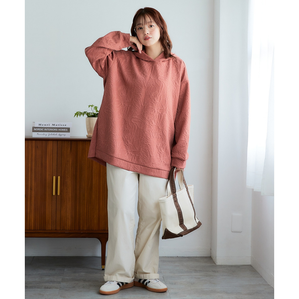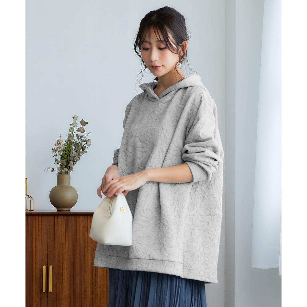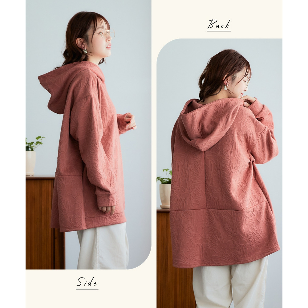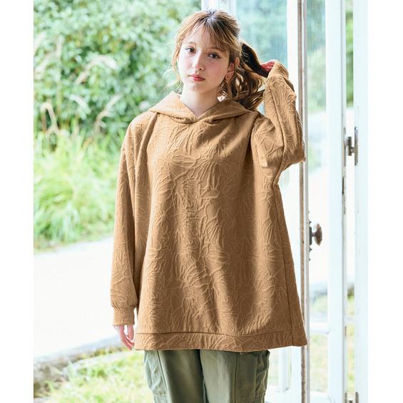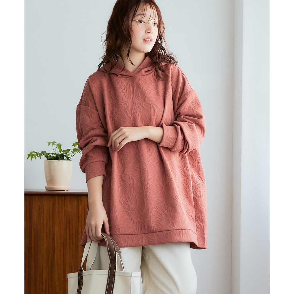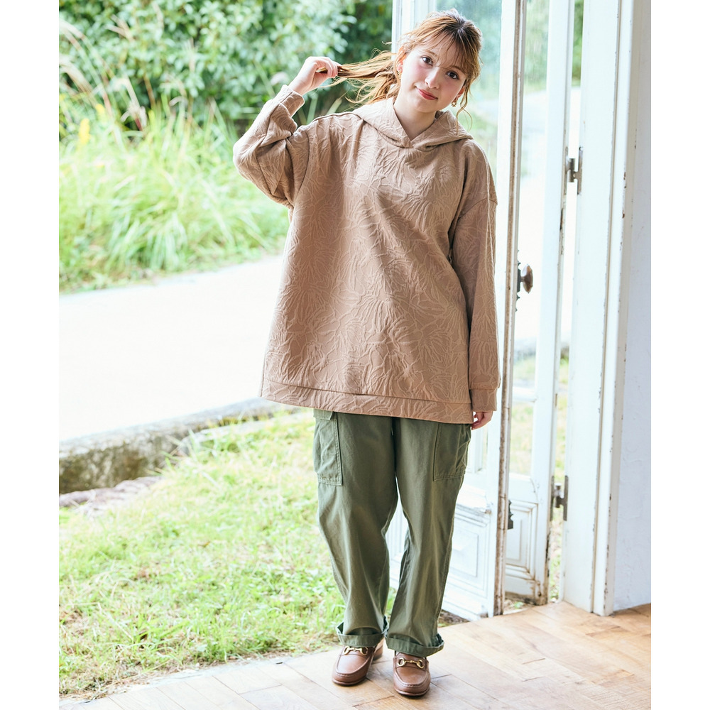 ふくれフラワージャガードチュニックパーカー 大きいサイズ