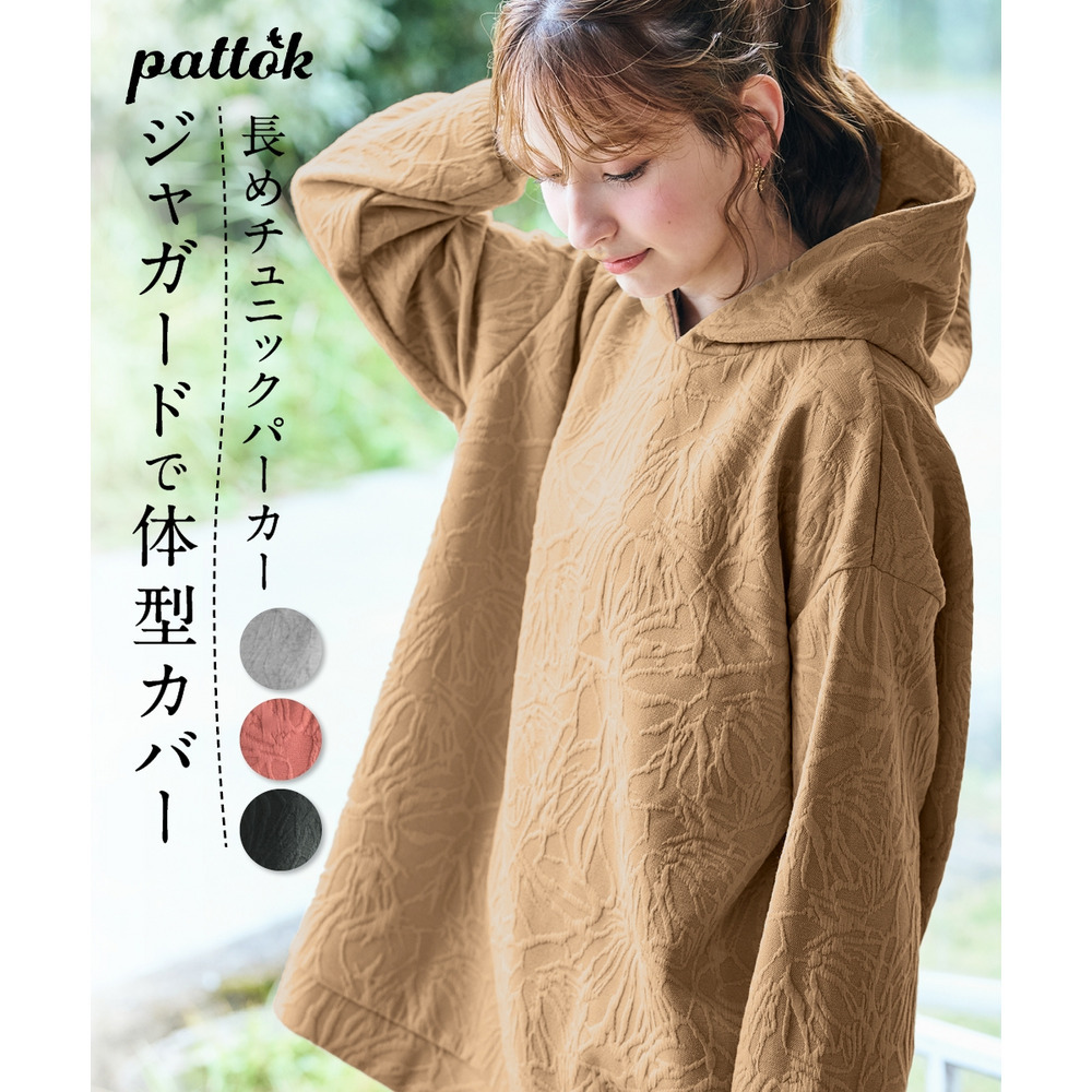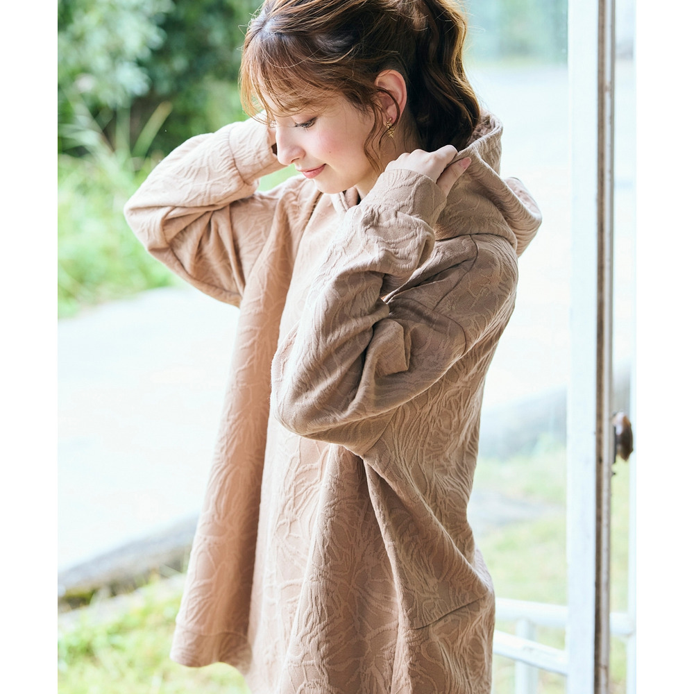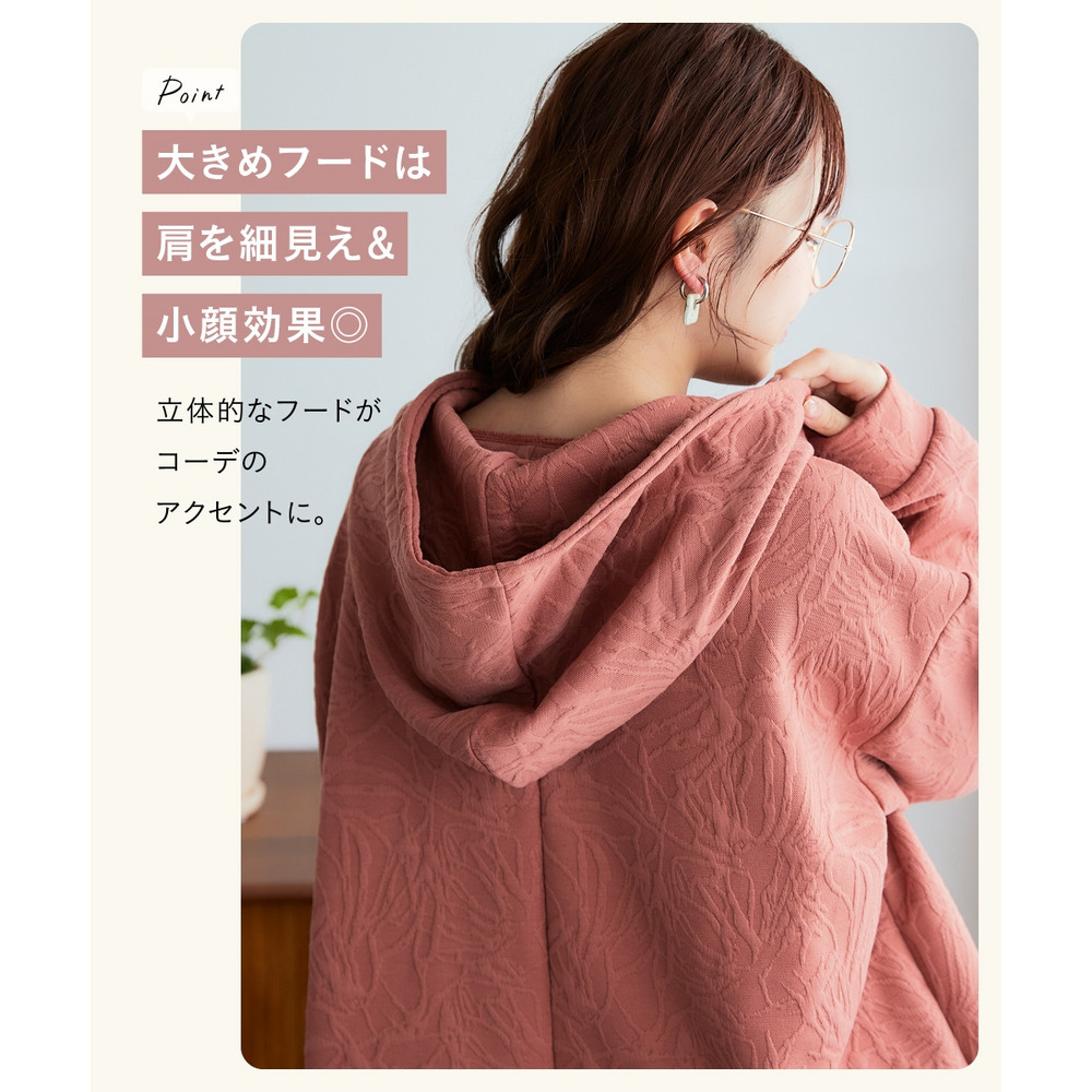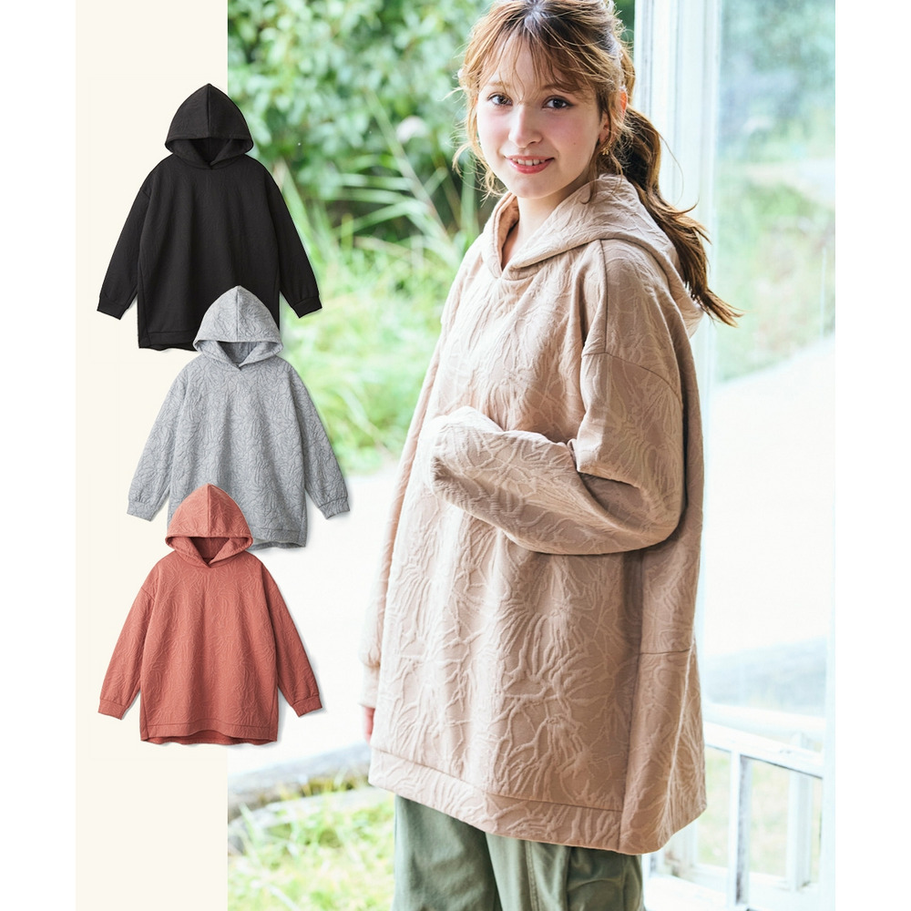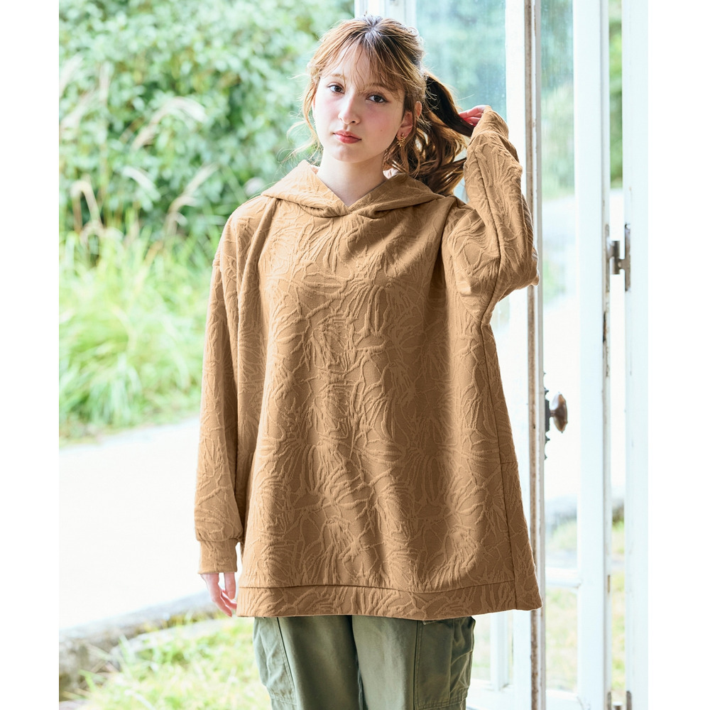 ふくれフラワージャガードチュニックパーカー 大きいサイズ