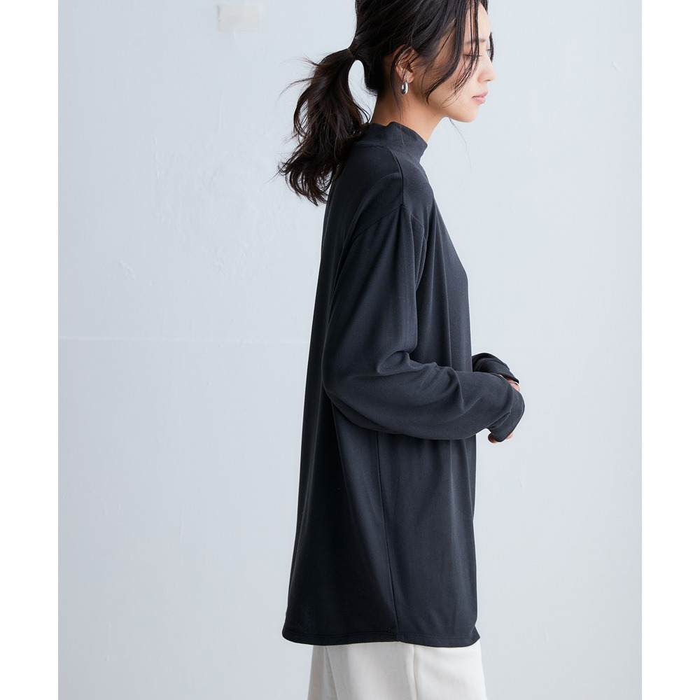 重ね着してもゴワつかず、カットソー素材だからチクチクしにくく、洗濯機で洗えるのも嬉しいポイント。
