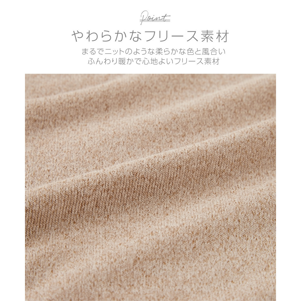 肌に触れるとふわっと柔らかく、もちっとした質感が心地よい、フリース素材のカットソーです。