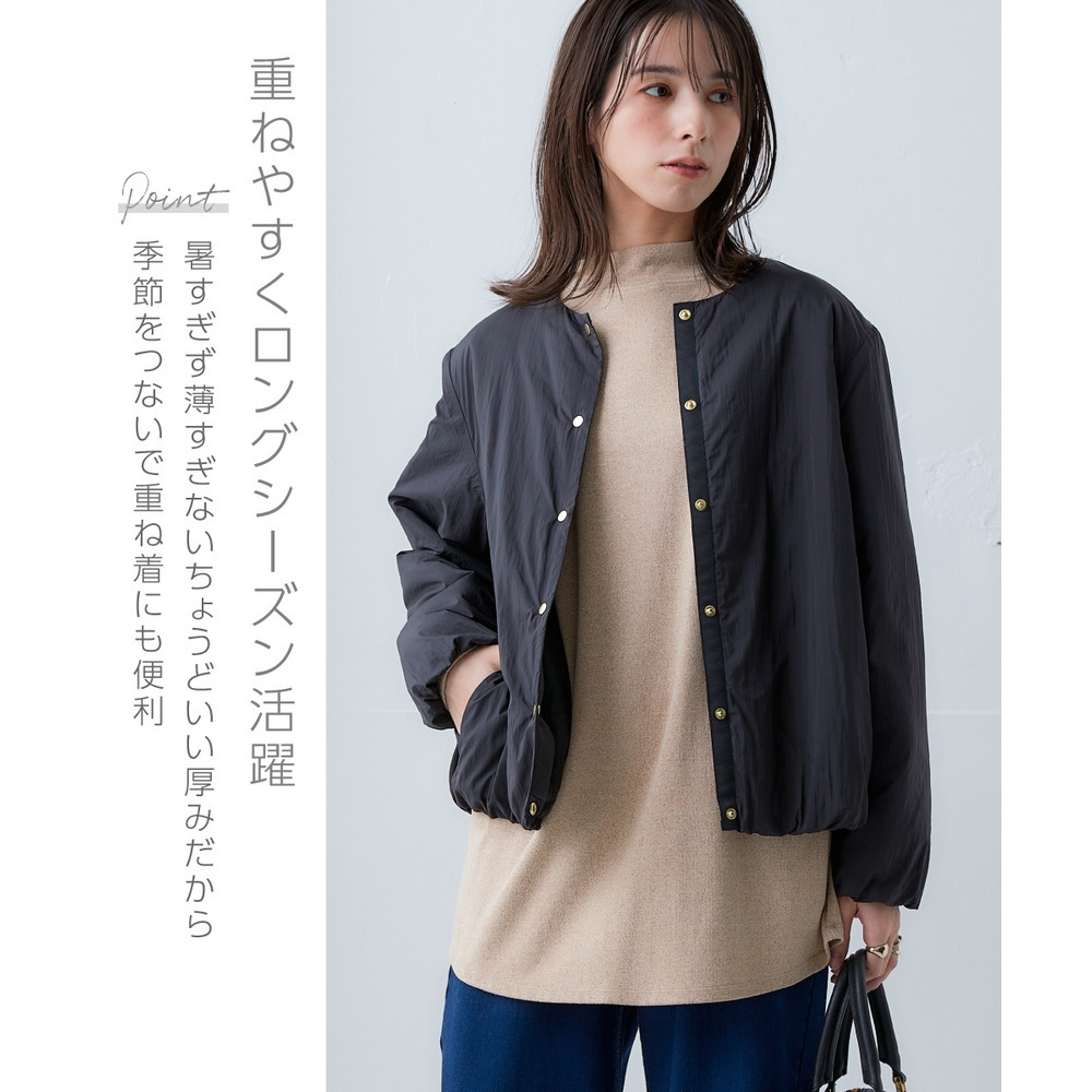長すぎないのでロングスカートやワイドパンツとも相性◎ほどよい厚みなので重ね着にも最適。