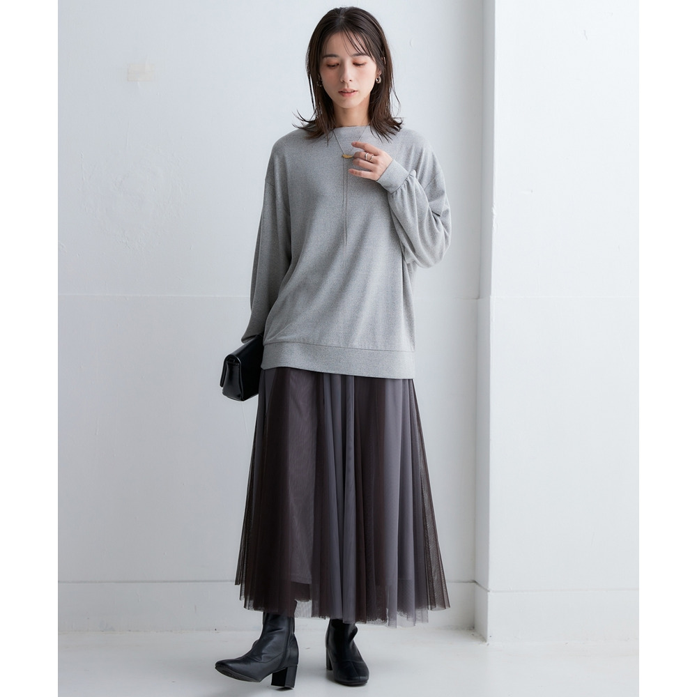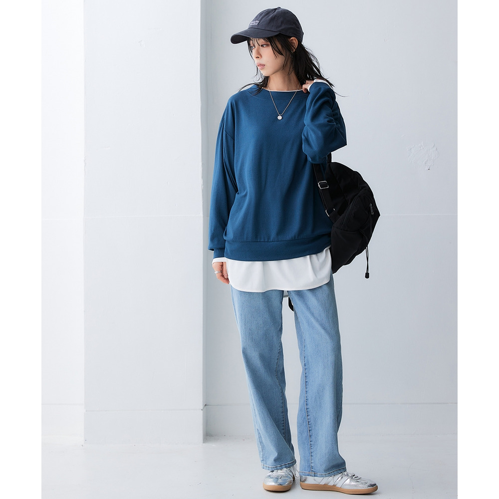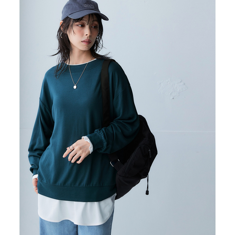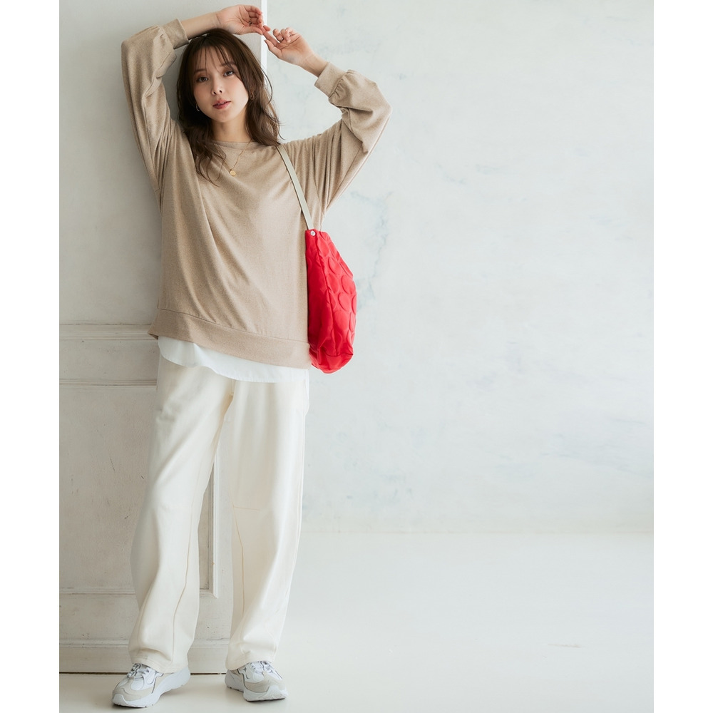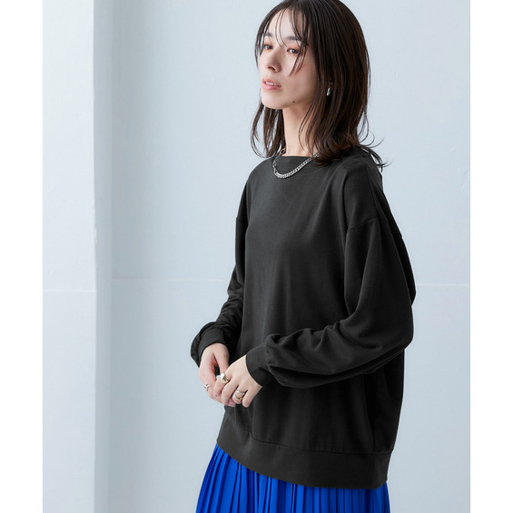 スウェット感覚でカジュアルに着られながら、どこかきれいめな雰囲気も演出してくれる万能トップスです。