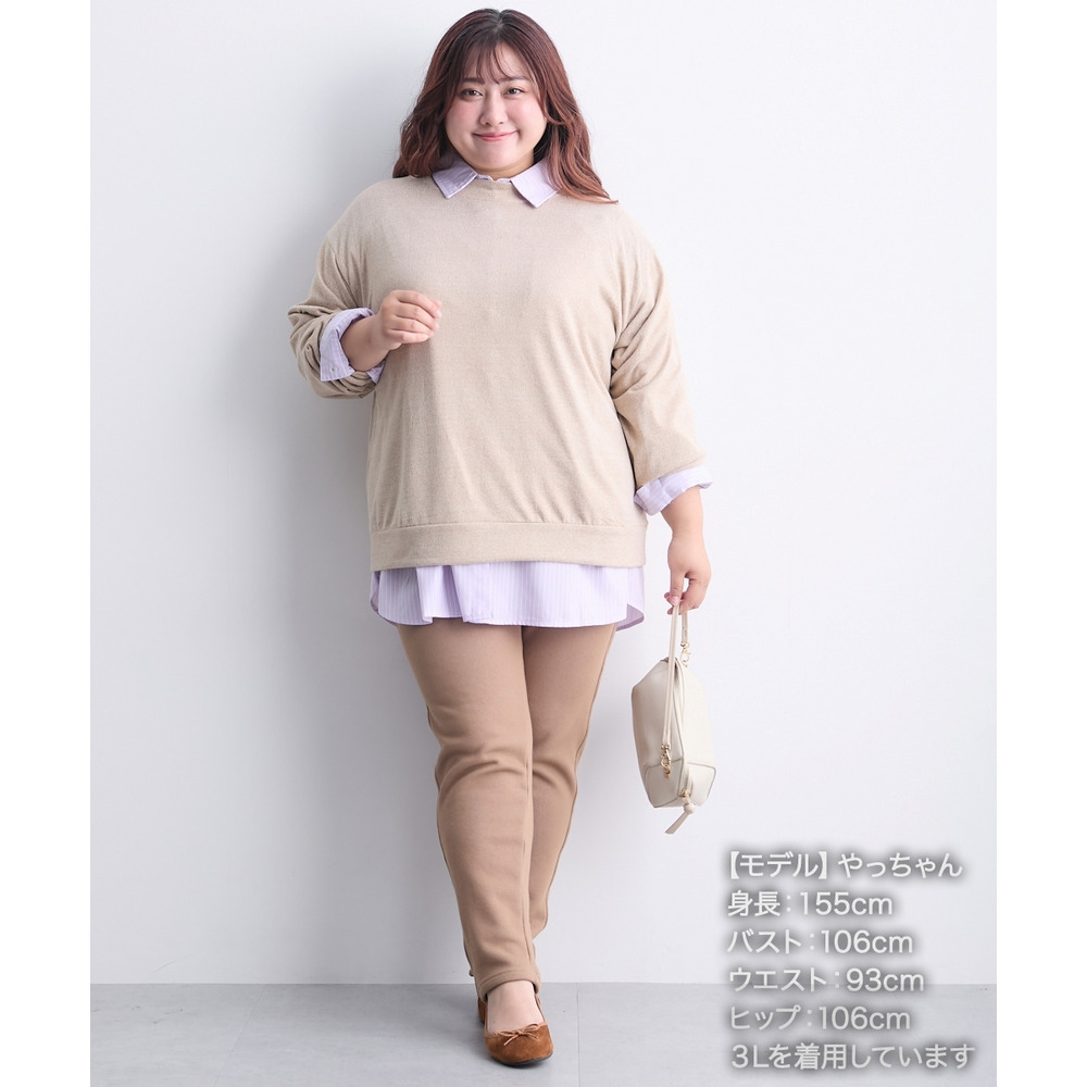 新色登場!ソフトニットフリースクルーネックゆるシルエットプルオーバー 大きいサイズ