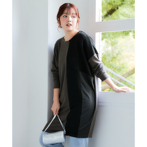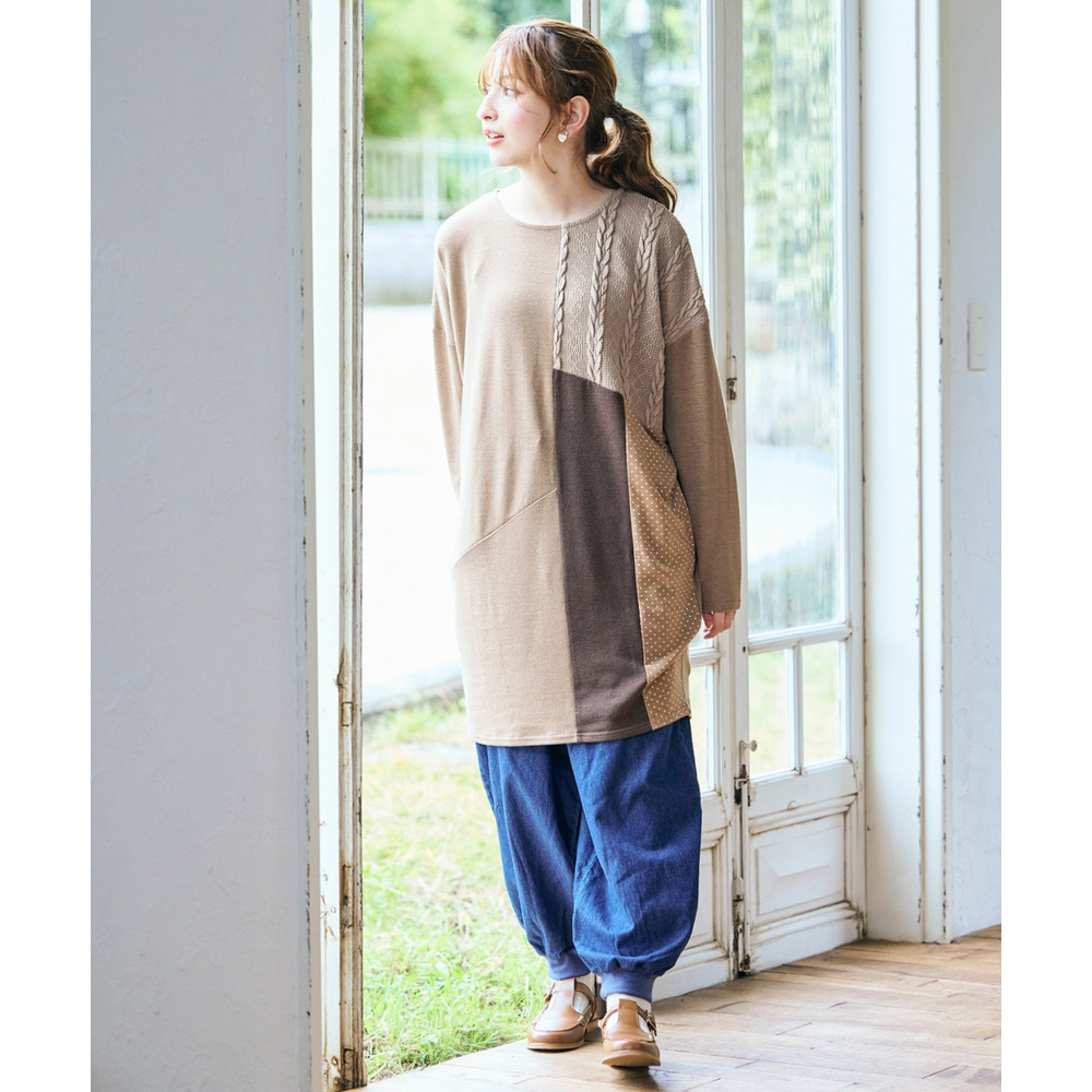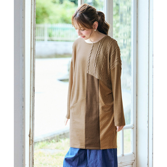 ケーブルジャガード切替ニットソーチュニック