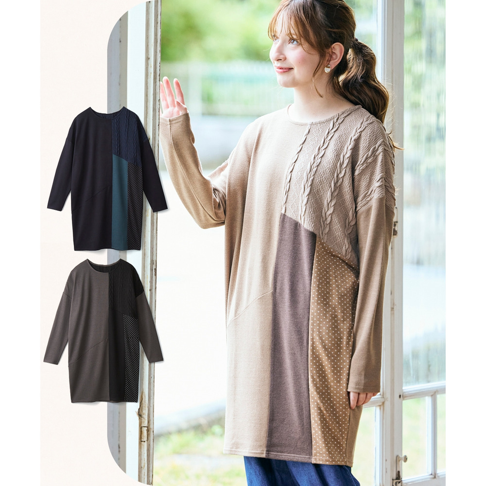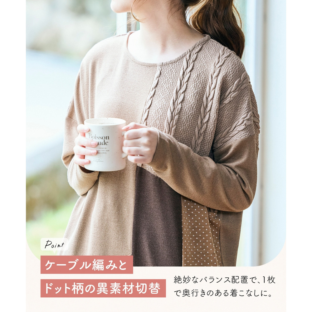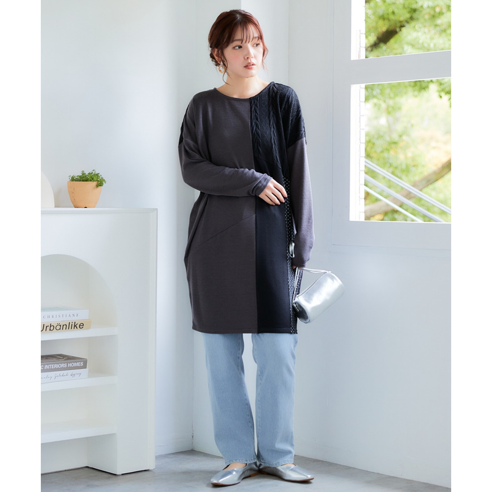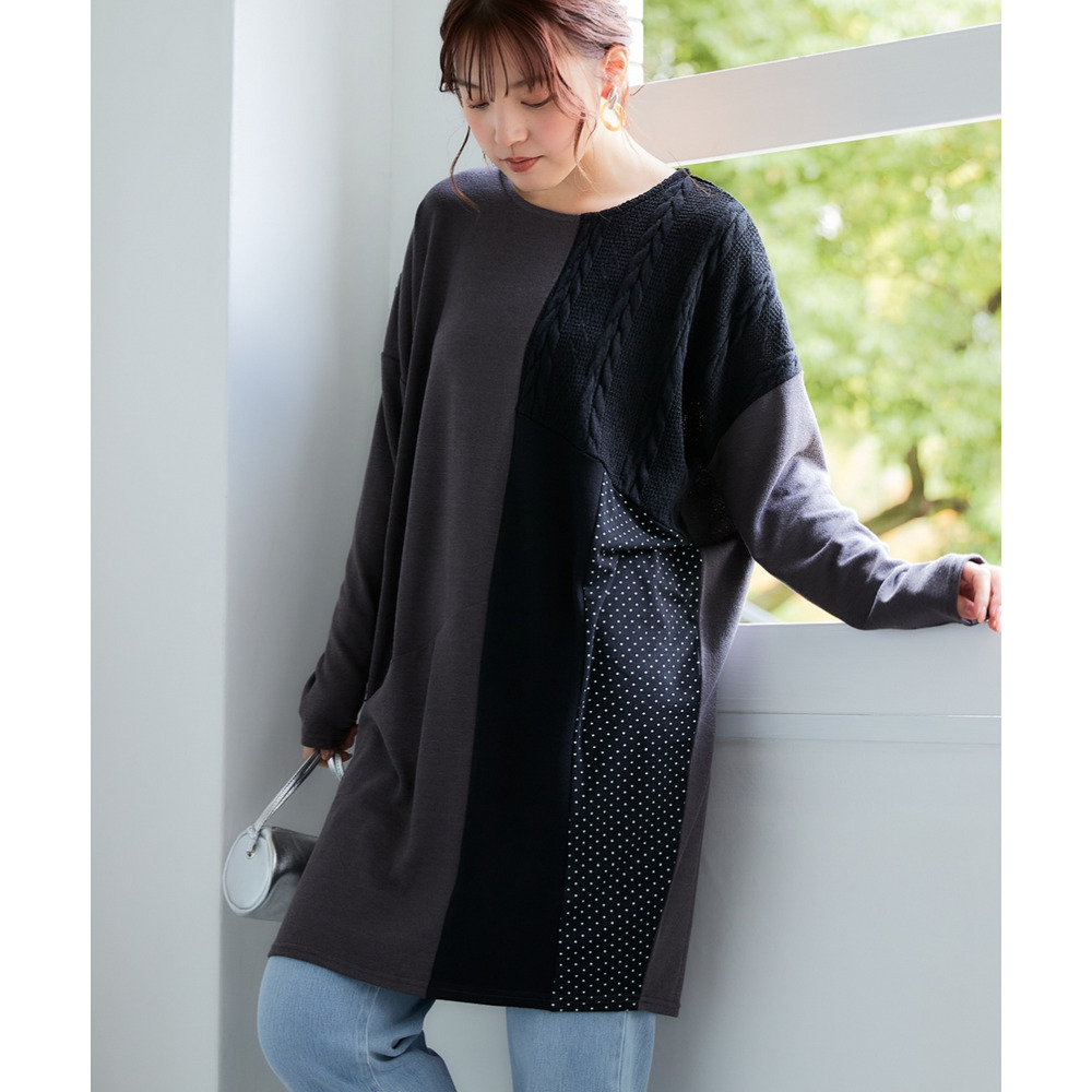 • ケーブルジャガード切替ニットソーチュニック 大きいサイズ12