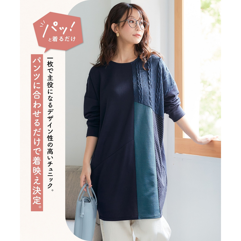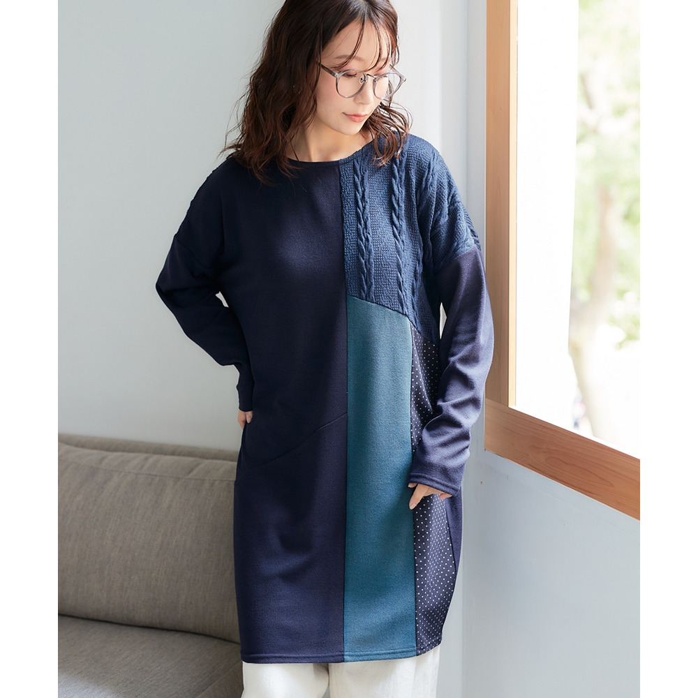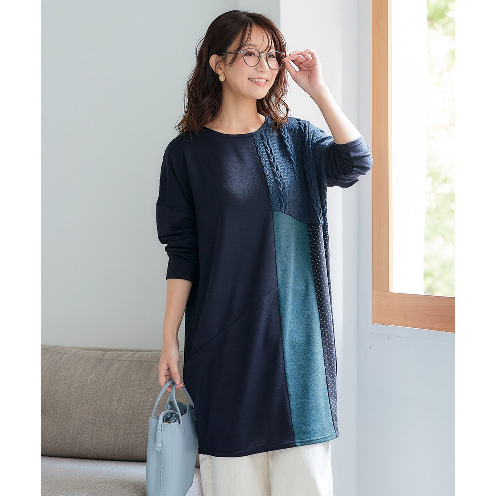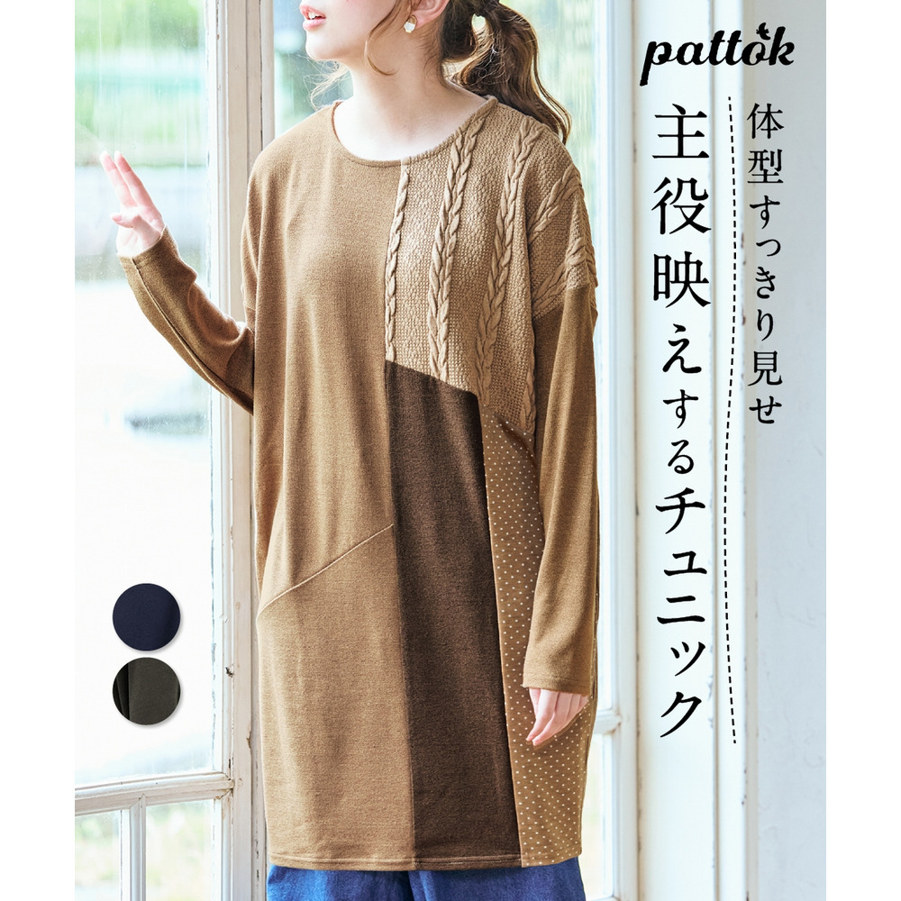 • ケーブルジャガード切替ニットソーチュニック 大きいサイズ12