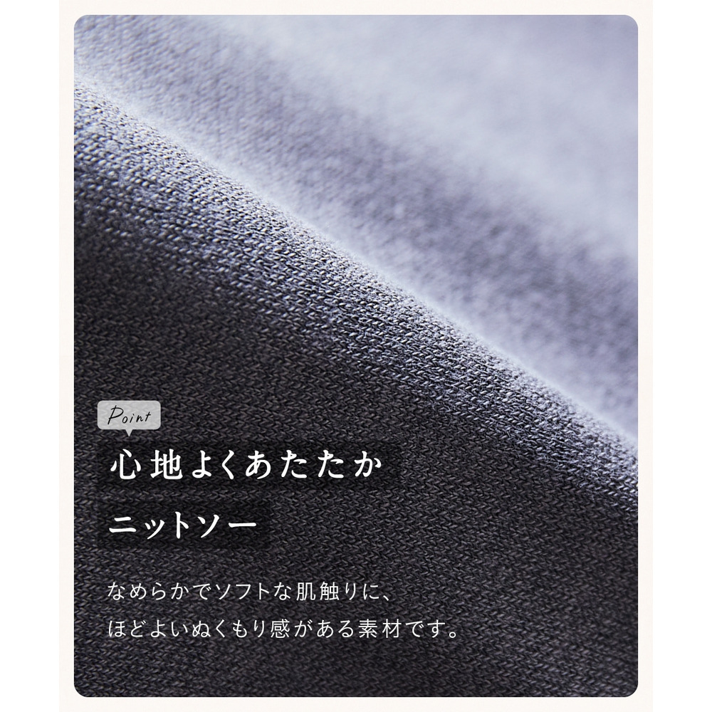 肌当たりの良さと暖かさを兼ね備えた、柔らかなニットソー素材をベースに使用しています。