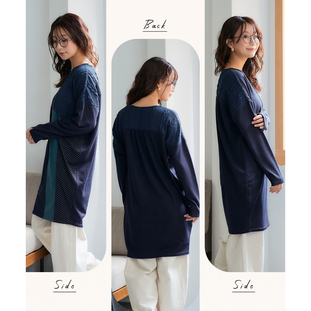 • ケーブルジャガード切替ニットソーチュニック 大きいサイズ13