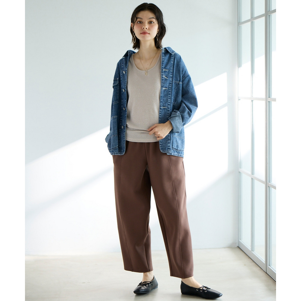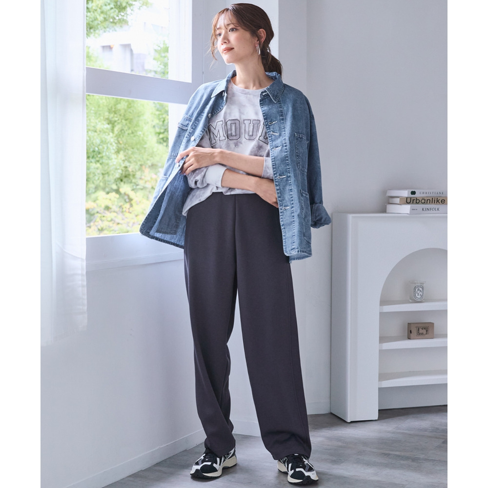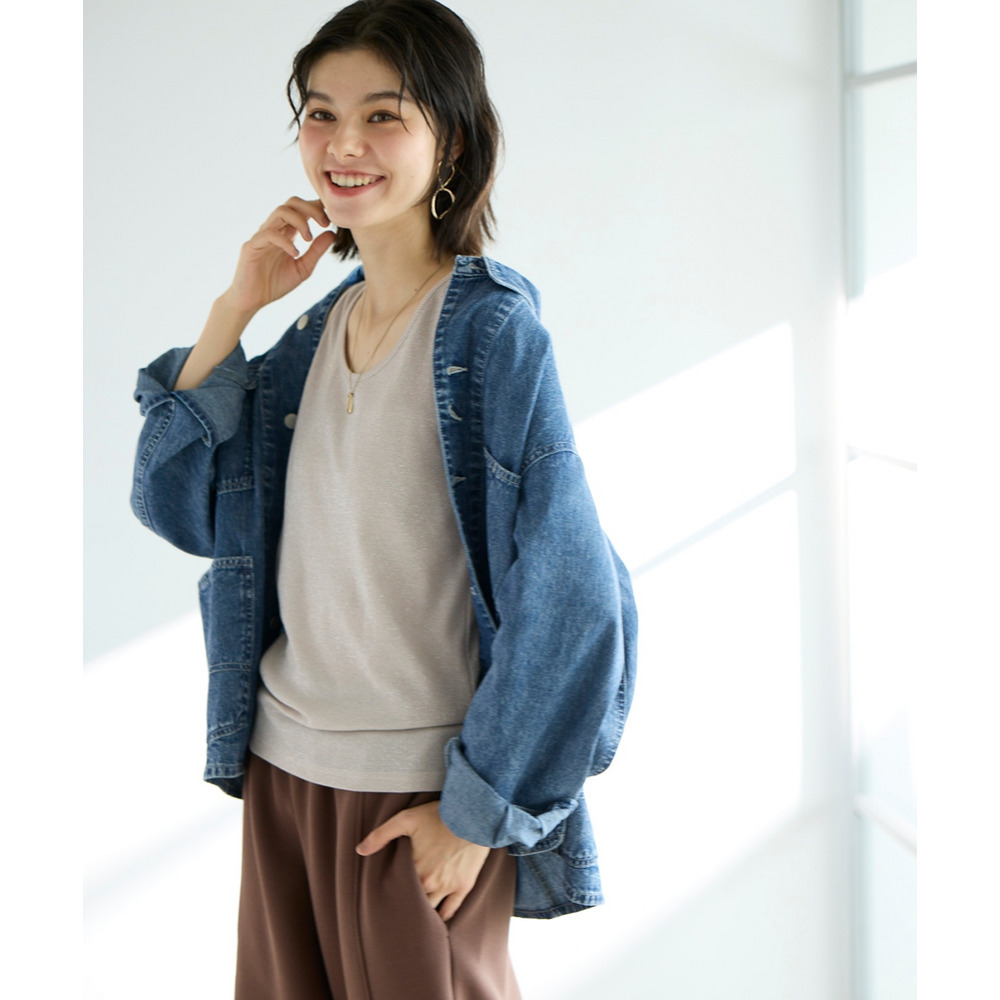 肩を落としたドロップショルダーと、袖口をロールアップしやすいデザインで、こなれた印象を与えます。