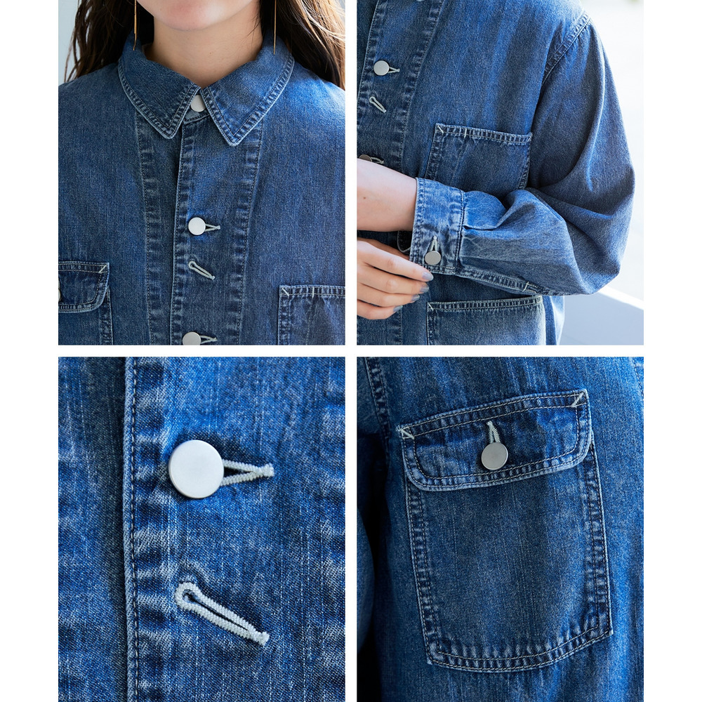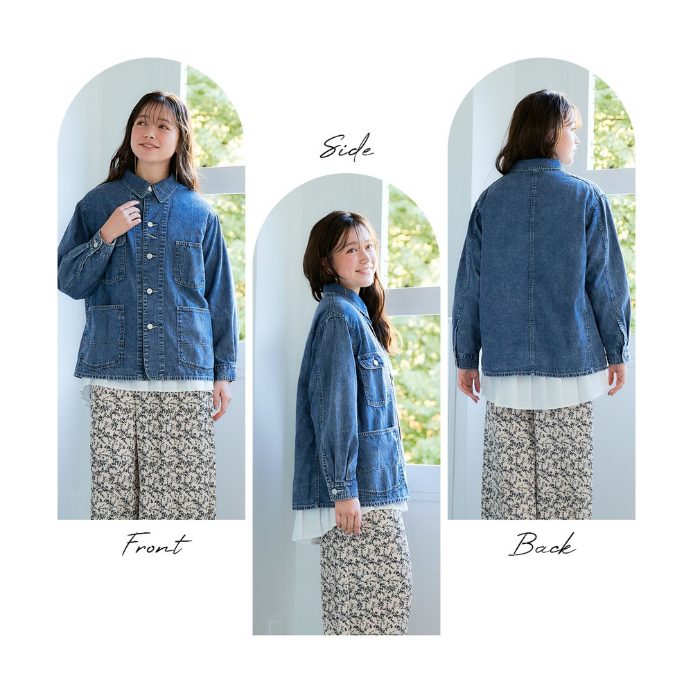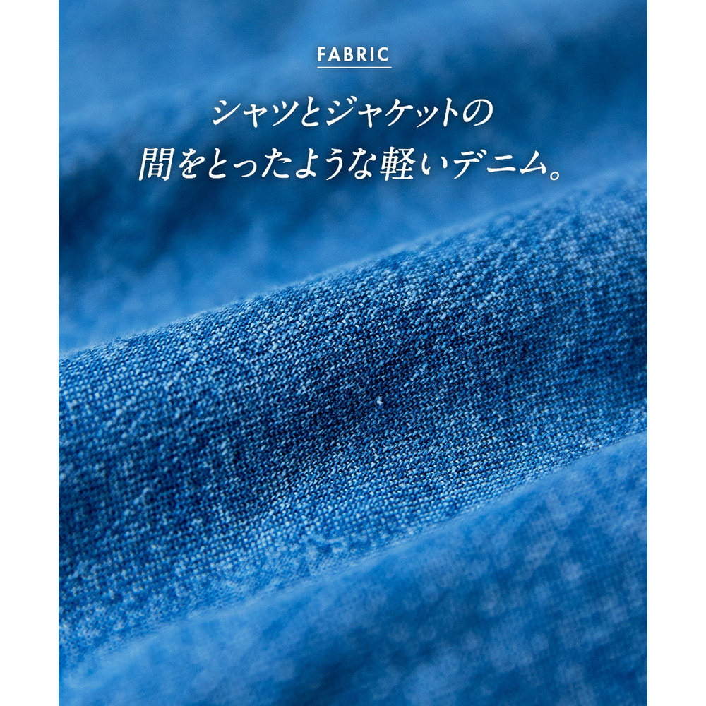 ライトオンスのデニム生地を使用しており、軽やかで柔らかい肌触りです。