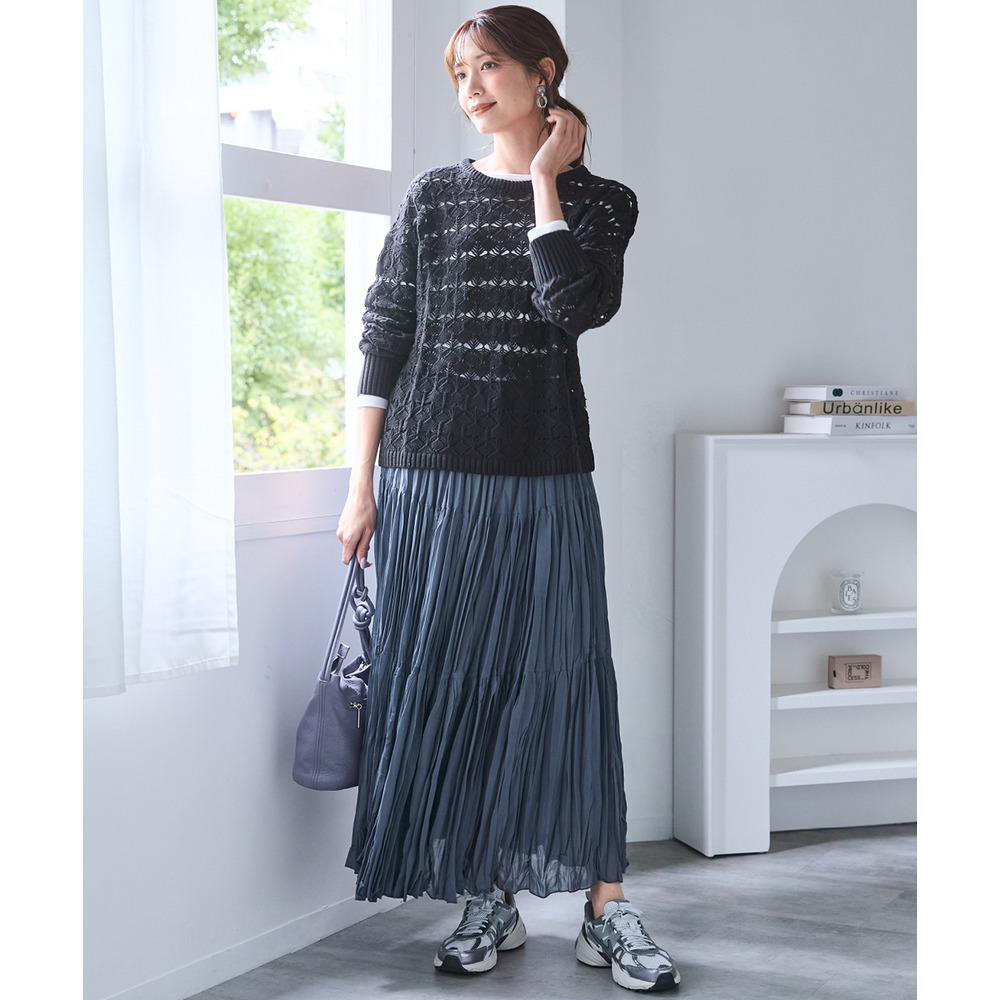 シアー素材を使用しており、程よい透け感が涼しげで軽やかな印象を与えます。