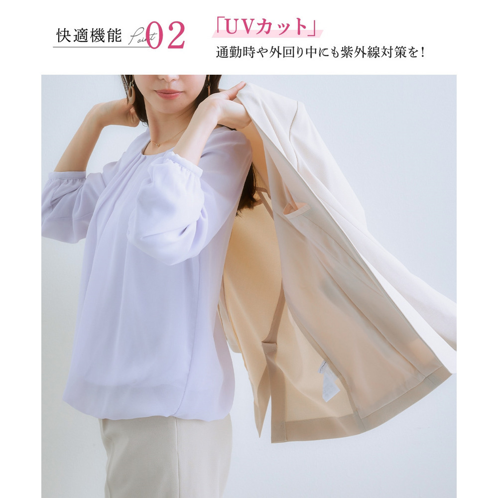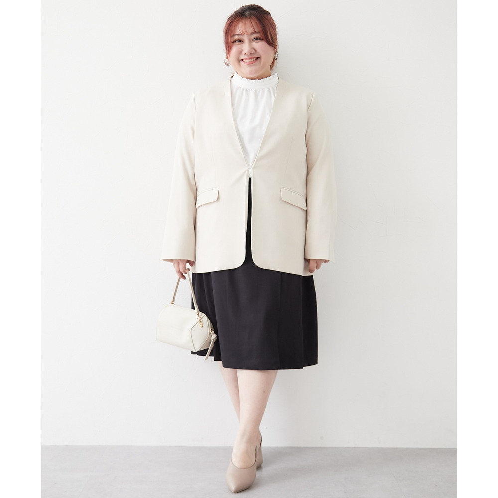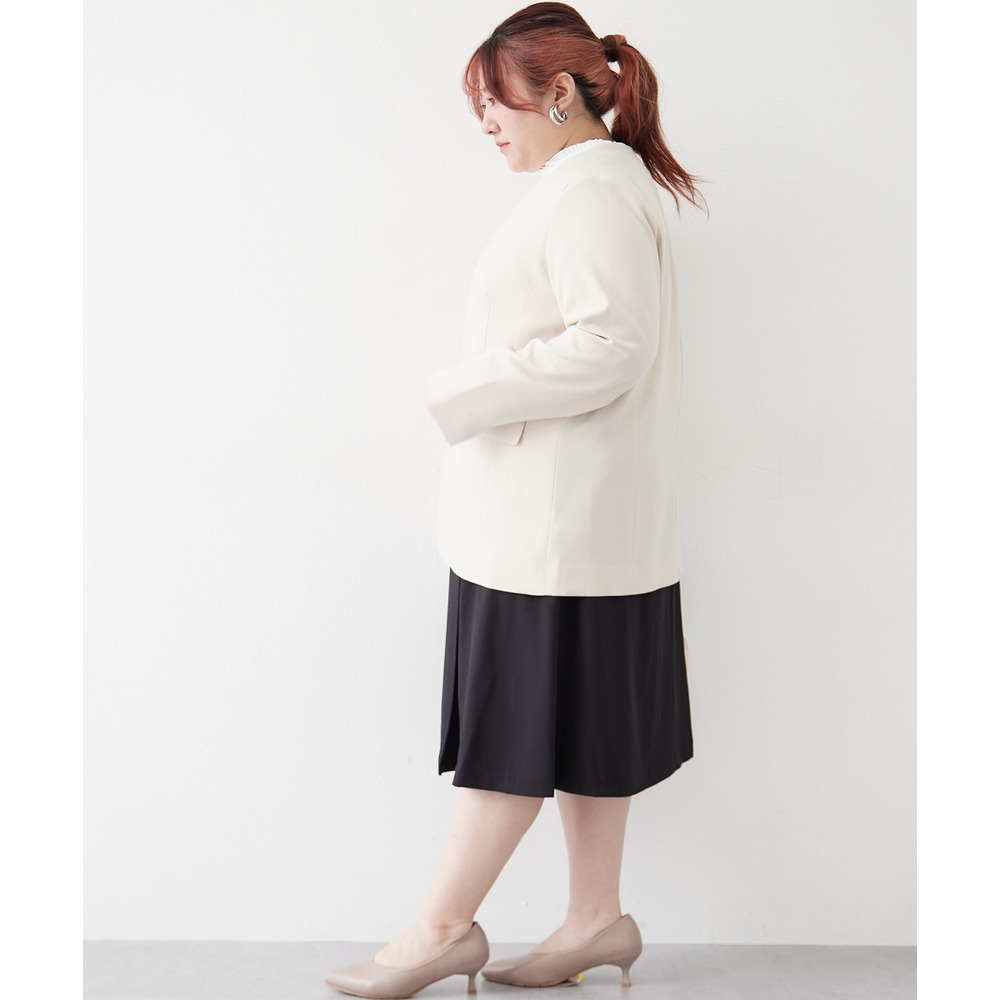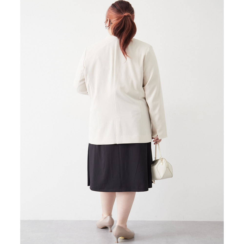 【レディーススーツ】セットアップ対応ロング丈ノーカラージャケット(上下別売・すごく伸びる多機能変り織リスピィシリーズ) 大きいサイズ