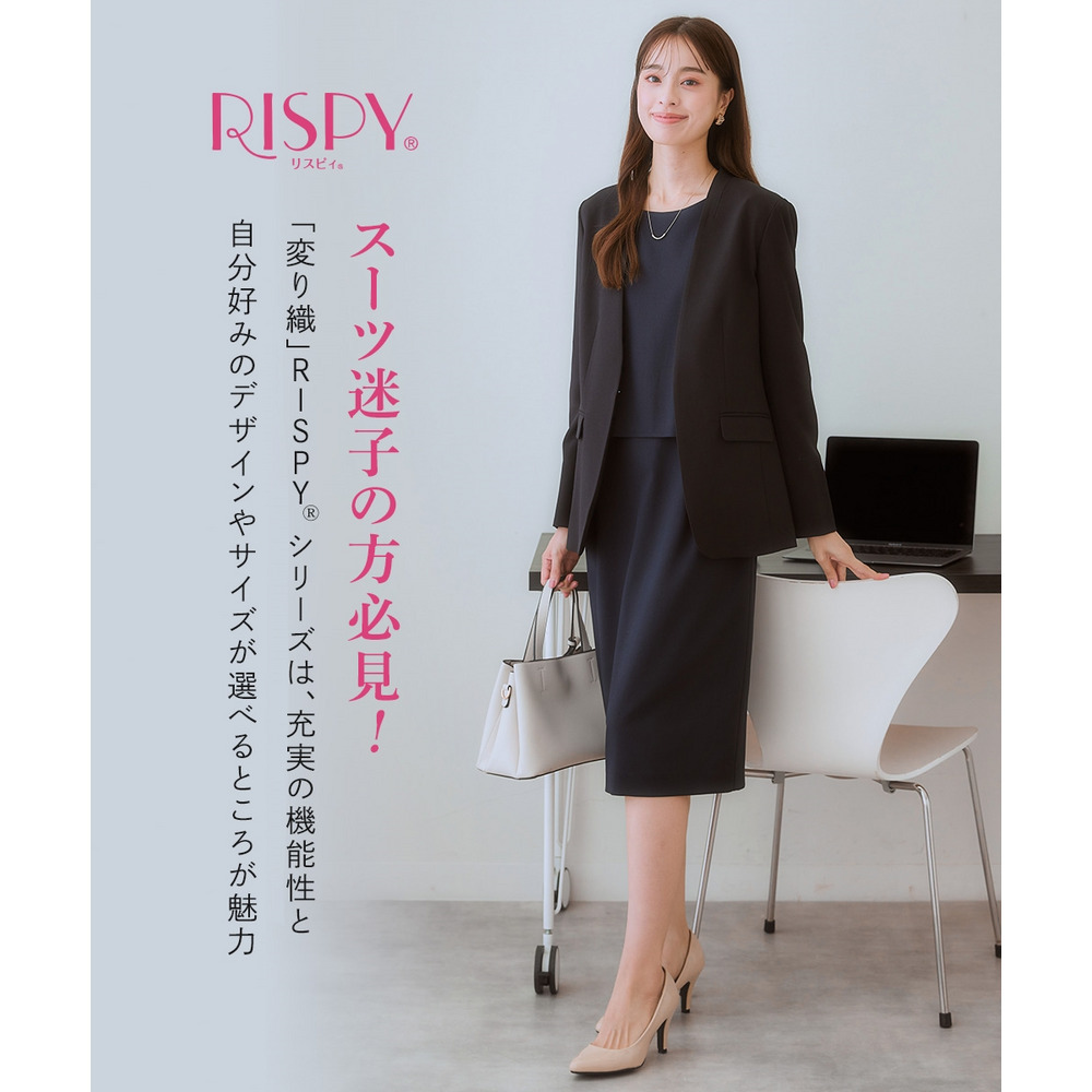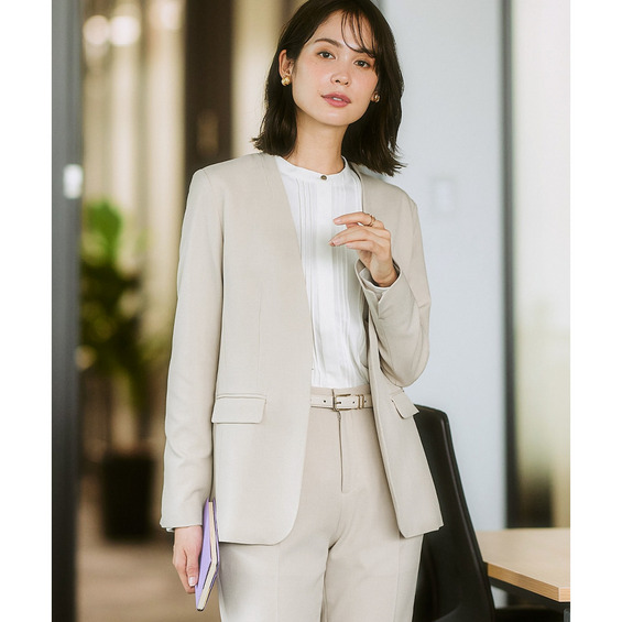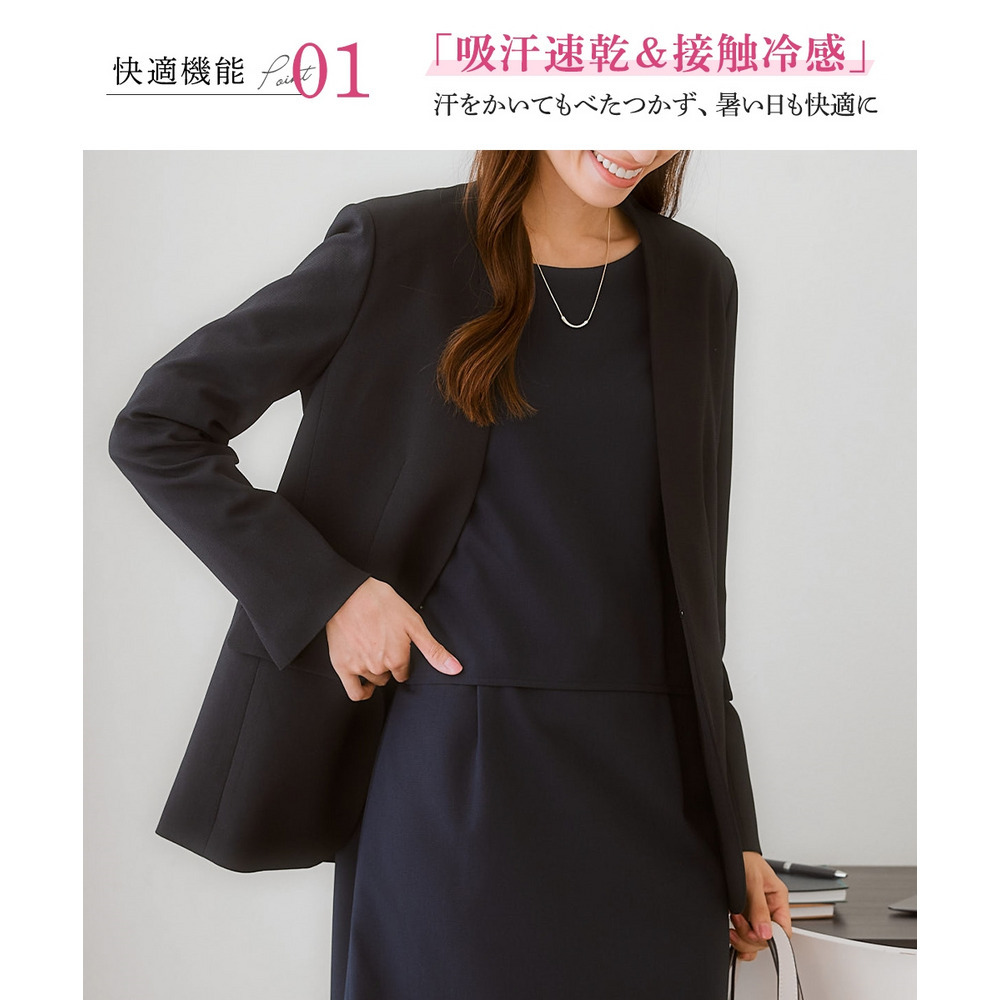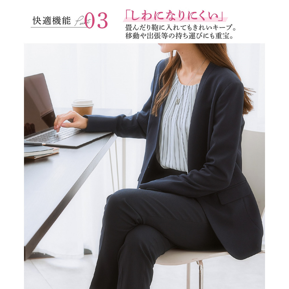 【レディーススーツ】セットアップ対応ロング丈ノーカラージャケット(上下別売・すごく伸びる多機能変り織リスピィシリーズ) 大きいサイズ