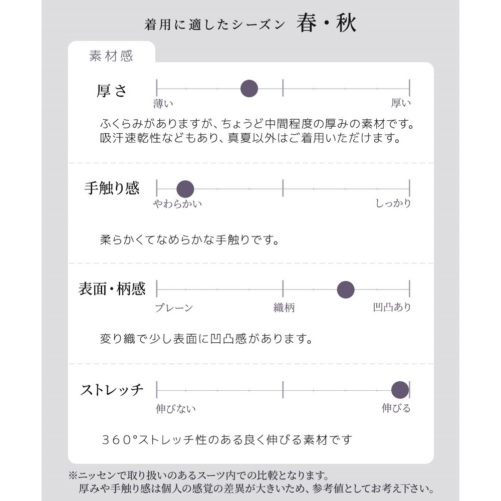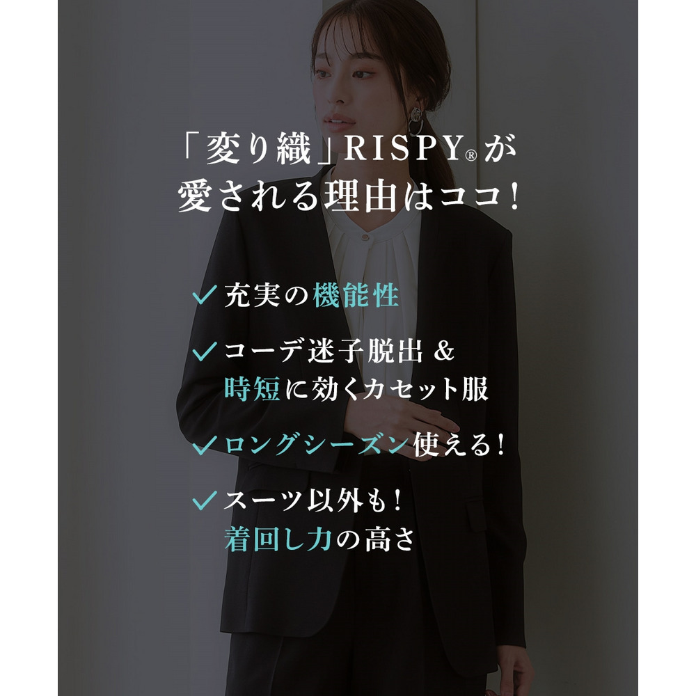 ・快適機能が満載で大人気の多機能素材”RISPY(R)”に、大人上品な変り織タイプ!・上品で主張しすぎない変り織なので、スーツとしては勿論単品使いもしやすい無地ライクで、こなれた今どきのおしゃれセットアップをお楽しみいただけます。