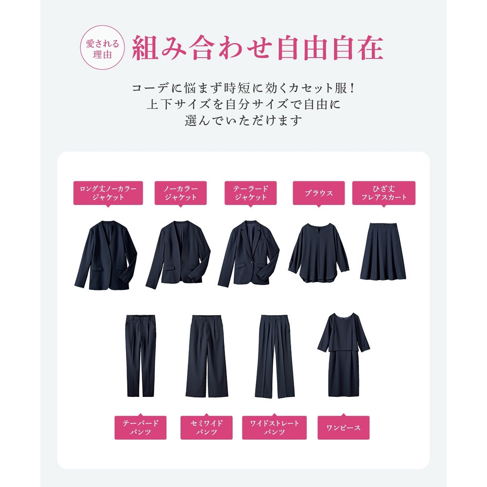 同素材シリーズ】ダブルブレストジャケットはこちらセミフレアスカートはこちらテーラードジャケットはこちらノーカラージャケットはこちらテーパードパンツはこちらロング丈ノーカラージャケットはこちらワイドストレートパンツはこちら
